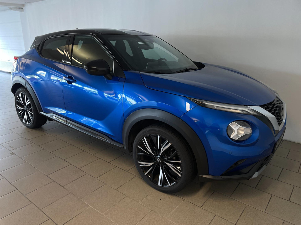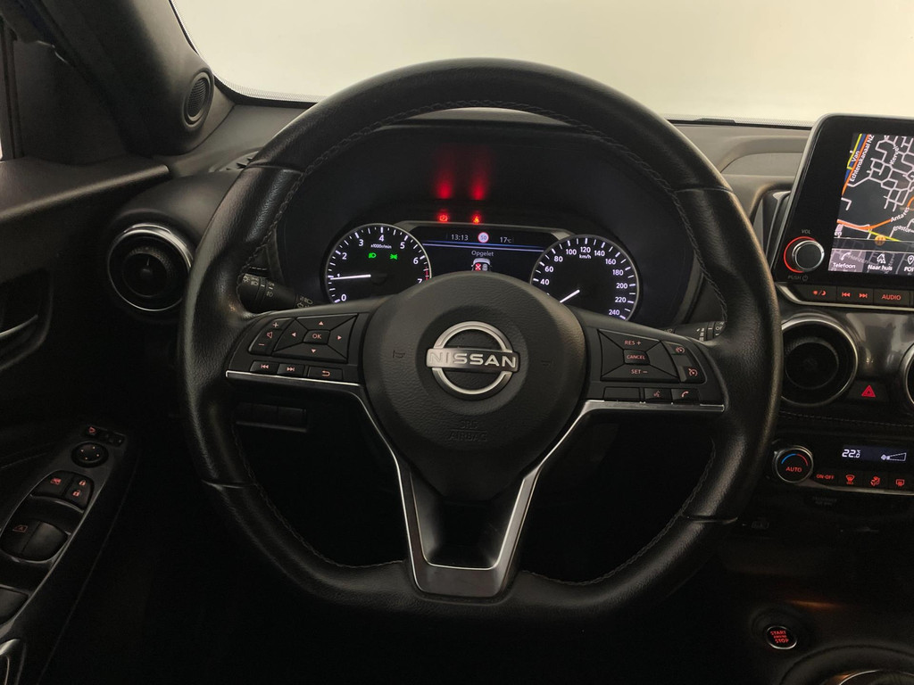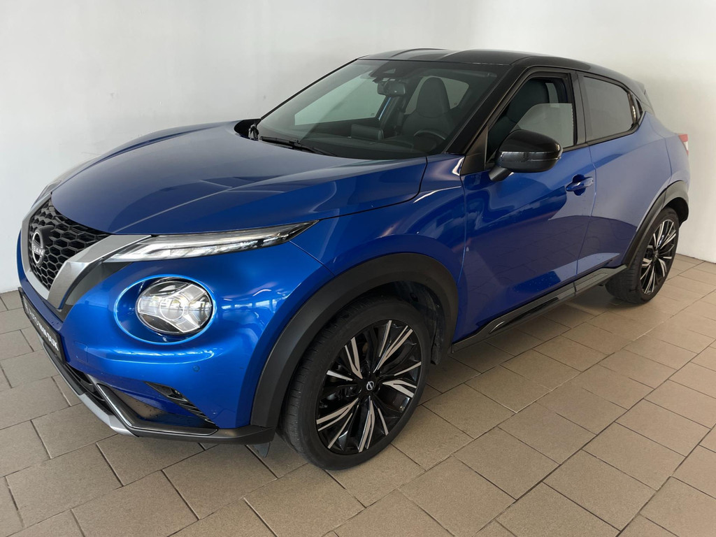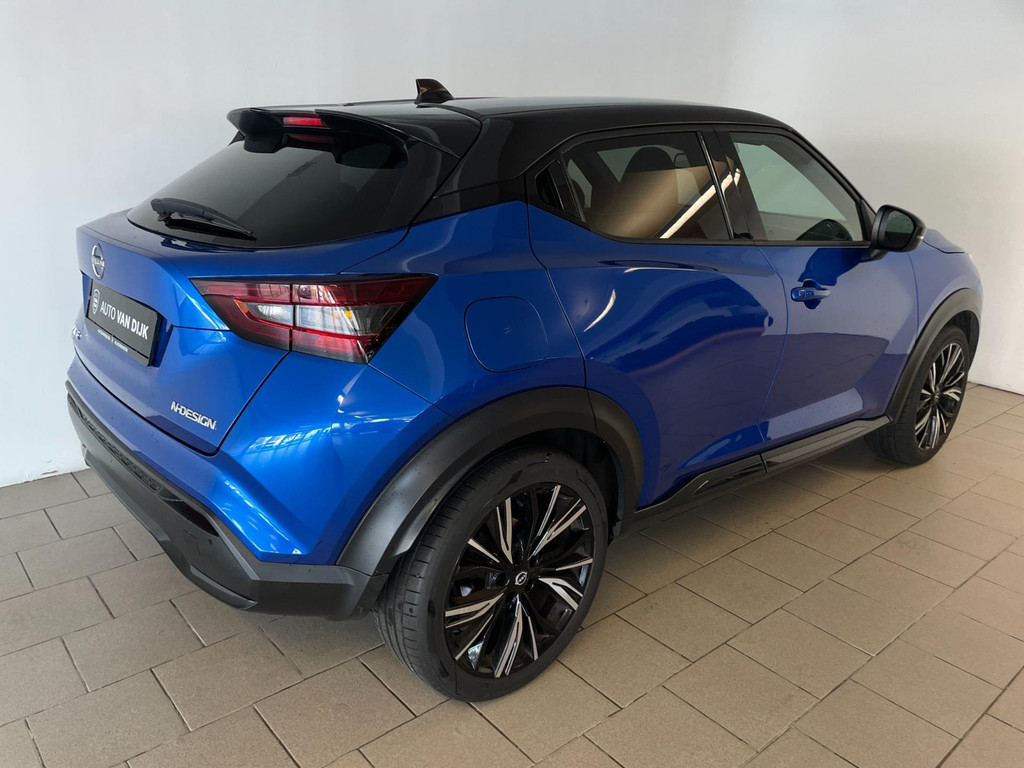 Nissan Juke 1.0 DIG-T N-Design 115pk. Ben je opzoek naar een ruime, hoog zittende auto met een sportief en eigenzinnig uiterlijk? Wil je graag één met een zuinige benzine motor? Wil je graag comfortabel in- en uitstappen? Zoek dan niet verder! Je hebt hem nu gevonden! Deze Nissan Juke heeft het allemaal! De blauwe metallic lak, de zwarte 19inch lichtmetalen velgen, het privacy glas en het chroom-accent in de grill zorgen voor zijn sportieve en tegelijkertijd luxe uitstraling. Deze auto heeft een eigenzinnig design! Zowel het exterieur als het interieur zijn erg mooi vormgegeven. Kijk ook maar eens naar de prachtige stoelen, ze zien er niet alleen prachtig uit maar zitten ook heerlijk! Het is een speciale uitvoering en hij zit vol met opties! Airco met climatecontrol, cruisecontrol, navigatie, DAB-radio, sportinterieur, achteruitrijcamera, multifunctioneel stuur en een Bluetooth carkit zijn een aantal van de vele opties. Van binnen en van buiten ziet deze Nissan er nog als nieuw uit! De vorige eigenaar is er altijd erg zuinig op geweest. Hij komt uit 2023 en er staat nog maar 76.000 kilometer op de teller. Nieuwsgierig geworden? Maak dan snel een afspraak en kom langs in onze showroom voor deze Nissan Juke!