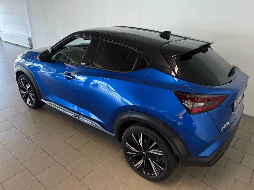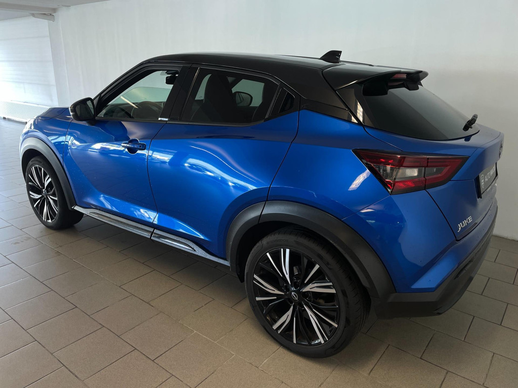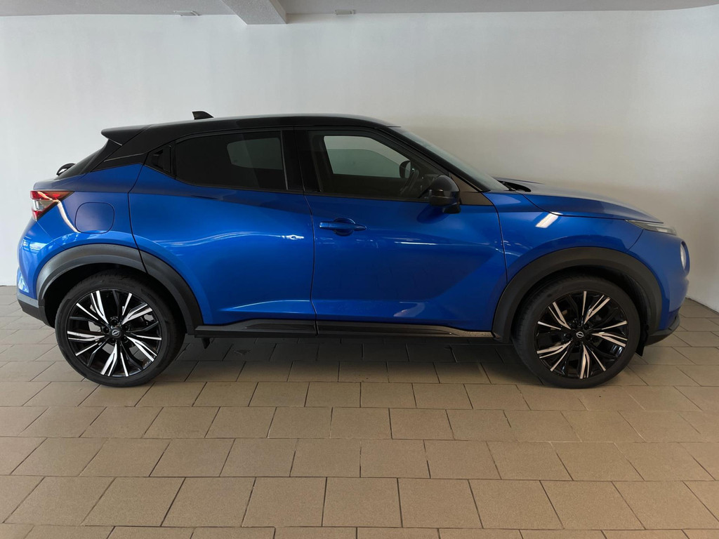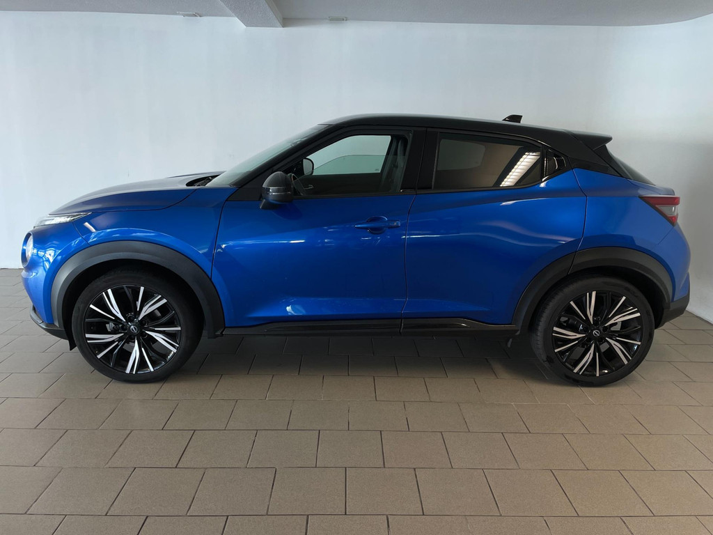 Nissan Juke 1.0 DIG-T N-Design 115pk. Ben je opzoek naar een ruime, hoog zittende auto met een sportief en eigenzinnig uiterlijk? Wil je graag één met een zuinige benzine motor? Wil je graag comfortabel in- en uitstappen? Zoek dan niet verder! Je hebt hem nu gevonden! Deze Nissan Juke heeft het allemaal! De blauwe metallic lak, de zwarte 19inch lichtmetalen velgen, het privacy glas en het chroom-accent in de grill zorgen voor zijn sportieve en tegelijkertijd luxe uitstraling. Deze auto heeft een eigenzinnig design! Zowel het exterieur als het interieur zijn erg mooi vormgegeven. Kijk ook maar eens naar de prachtige stoelen, ze zien er niet alleen prachtig uit maar zitten ook heerlijk! Het is een speciale uitvoering en hij zit vol met opties! Airco met climatecontrol, cruisecontrol, navigatie, DAB-radio, sportinterieur, achteruitrijcamera, multifunctioneel stuur en een Bluetooth carkit zijn een aantal van de vele opties. Van binnen en van buiten ziet deze Nissan er nog als nieuw uit! De vorige eigenaar is er altijd erg zuinig op geweest. Hij komt uit 2023 en er staat nog maar 76.000 kilometer op de teller. Nieuwsgierig geworden? Maak dan snel een afspraak en kom langs in onze showroom voor deze Nissan Juke!