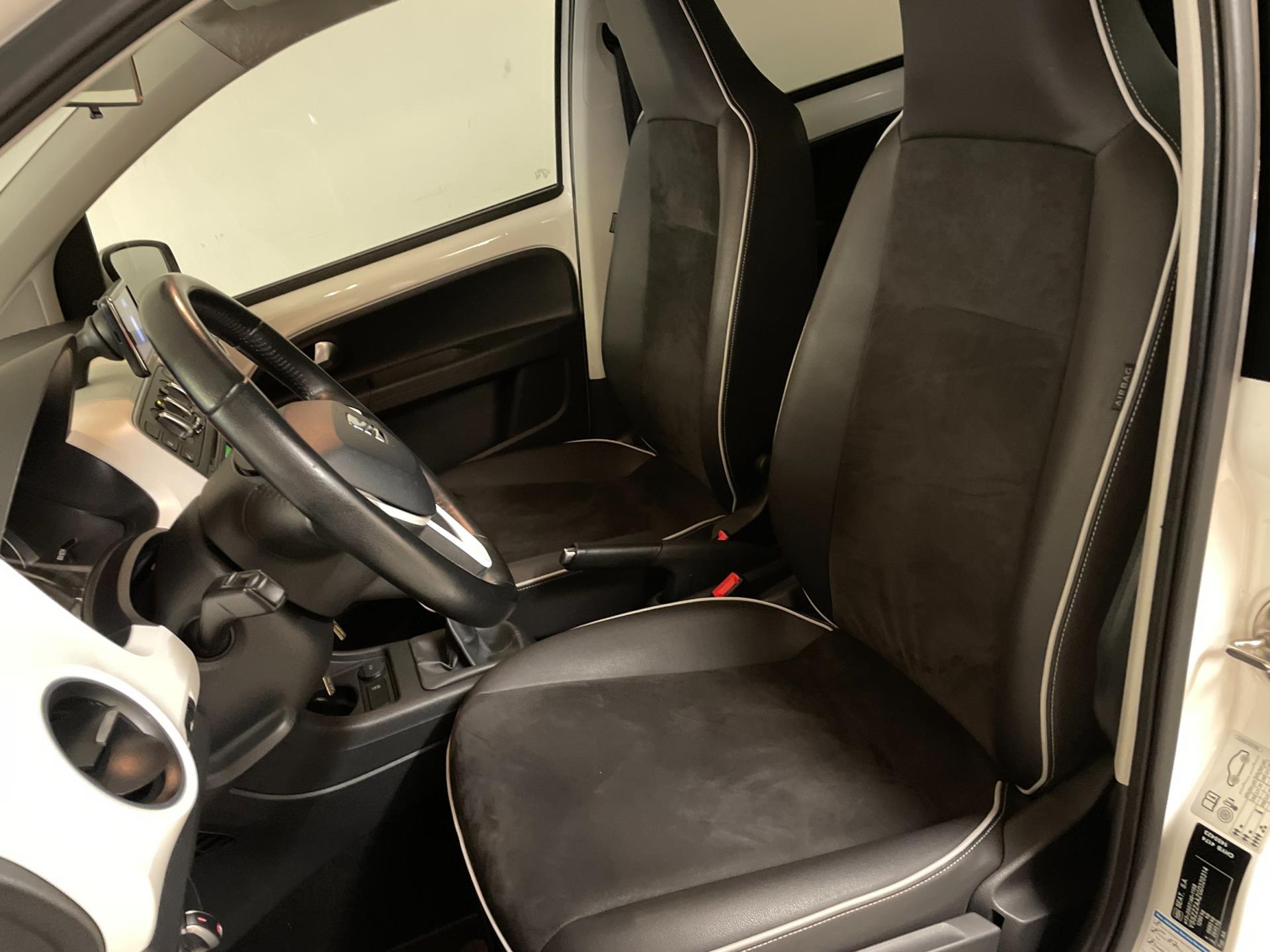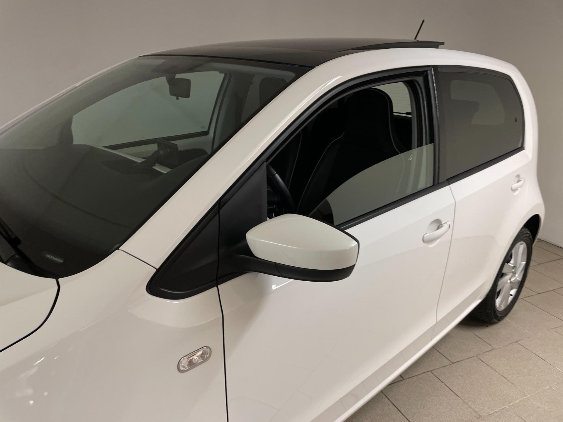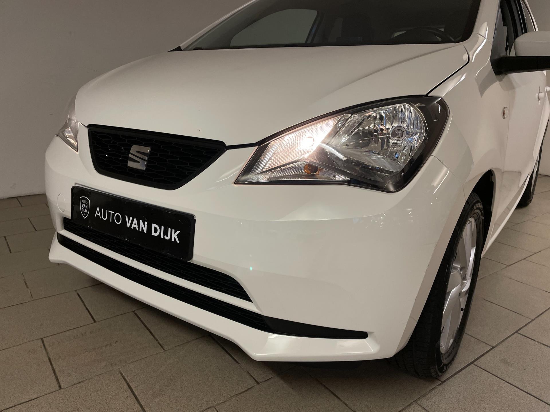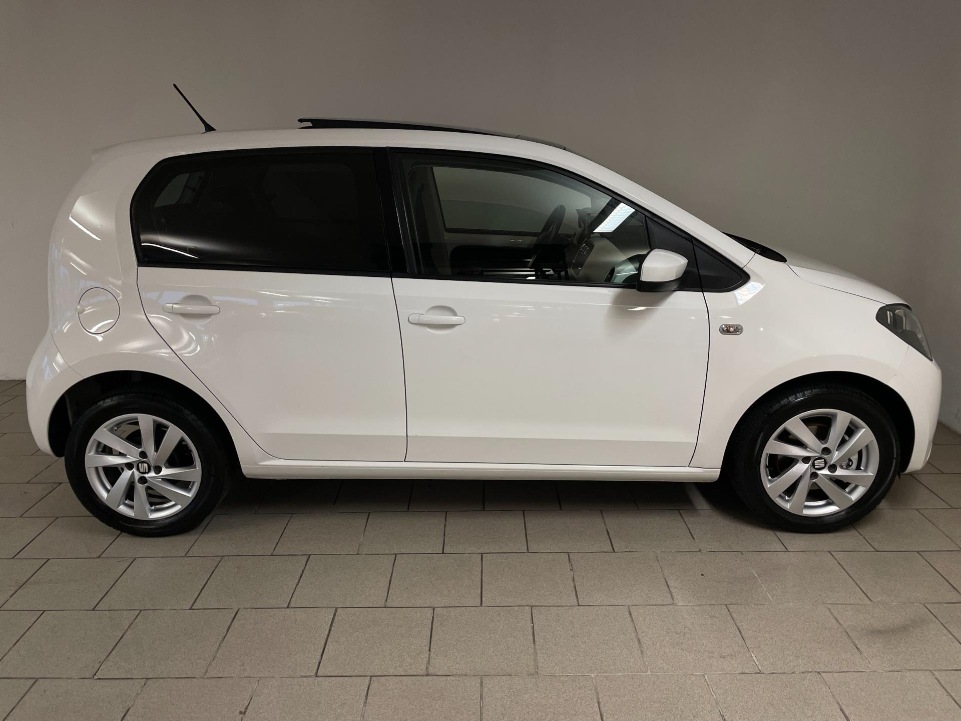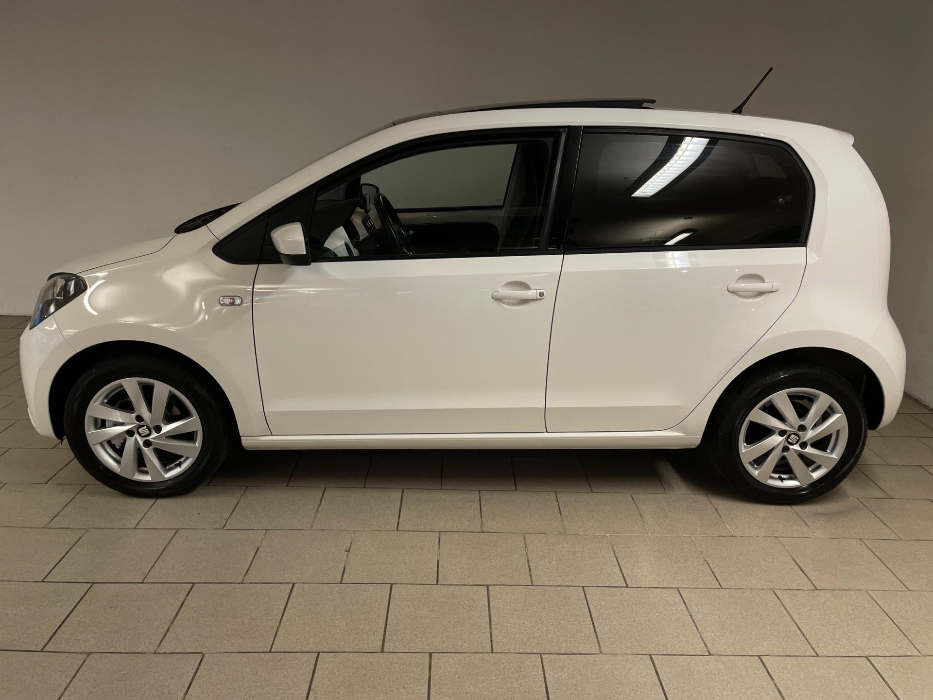 Seat Mii Sport Connect 1.0 75PK Panorama dak. Wil je graag een compacte auto met 5 deuren? Met leuke opties? En zoek je iets speciaals? Dan heb je hem nu gevonden! Kom langs in onze showroom voor deze Mii Sport Connect! Deze speciale editie van de Seat Mii kom je niet zo vaak tegen, hij is wit, heeft sport velgen, leer met alcantara bekleding en een lederen stuur. Airco, navigatie, Bluetooth, cruise-control, elektrische ramen, sportonderstel, privacy glas en parkeersensoren zijn een aantal van de verdere opties die je kan vinden op deze Mii. Er staat nog maar 125.000 kilometer op de teller, van binnen en buiten ziet de Mii er nog heel goed uit! Je kan erg voordelig rijden met zo'n Mii, de wegenbelasting is 20 euro per maand, hij is heel zuinig (1:20) en de onderhoudskosten zijn zeer laag. Nieuwsgierig geworden? Kom dan snel langs in de showroom en maak een proefrit! Een Seat Mii is gelijk aan een Volkswagen Up.