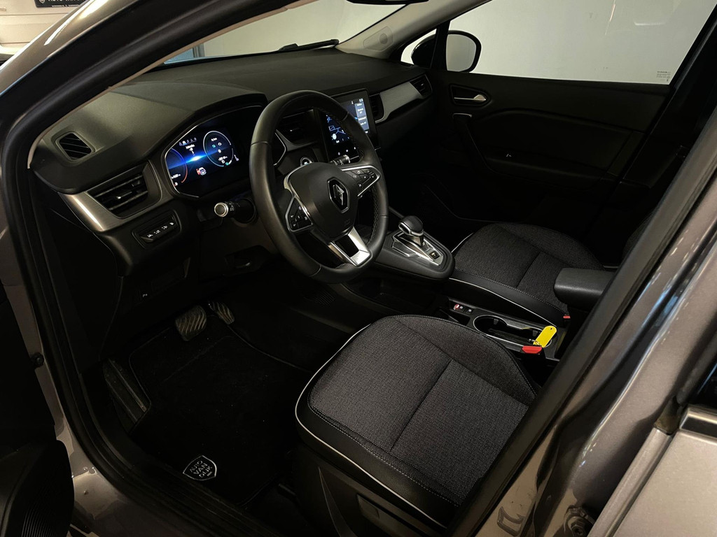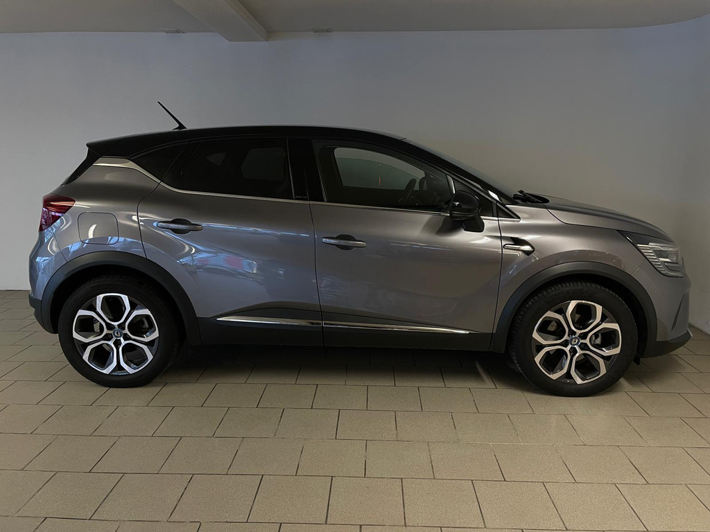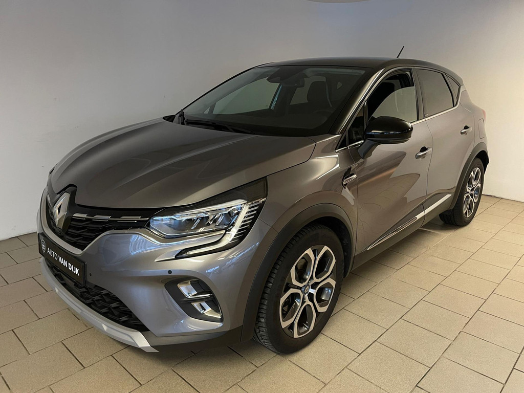 Renault Captur 1.6 E-Tech Plug-in Hybrid 160 Intens automaat Antraciet metallic. Airco met climate control, Bluetooth, speciaal interieur, navigatie, parkeersensoren, cruise control, achteruitrijcamera, multifunctioneel stuur, metallic lak, zwart dak, sportvelgen en chroom accenten zijn een aantal van de vele opties die je kan vinden op deze Fransoos. Onder de motorkap vind je de 1.6 E-Tech Plug-in Hybrid 93pk hybride motor, die is zeer zuinig en heeft ook genoeg pit! Het rijden in zo'n Captur is daarom lekker soepel en erg comfortabel. De hoge zit en eenvoudige in- en uitstap maakt het comfortabele rijden helemaal af! Hij is van 2021 en er staat nog maar 46.000 kilometer op de teller. De vorige eigenaresse is er altijd erg zuinig op geweest, van binnen en buiten ziet de Captur er als nieuw uit! Zoek je een auto met een comfortabele in- en uitstap? Met een sportieve uitstraling? Wil je graag één met een automaat en hybride motor? Ben je gek op opties? Zoek dan niet verder! Je hebt hem nu gevonden! Maak snel een afspraak en kom langs in de showroom voor deze Renault Captur!