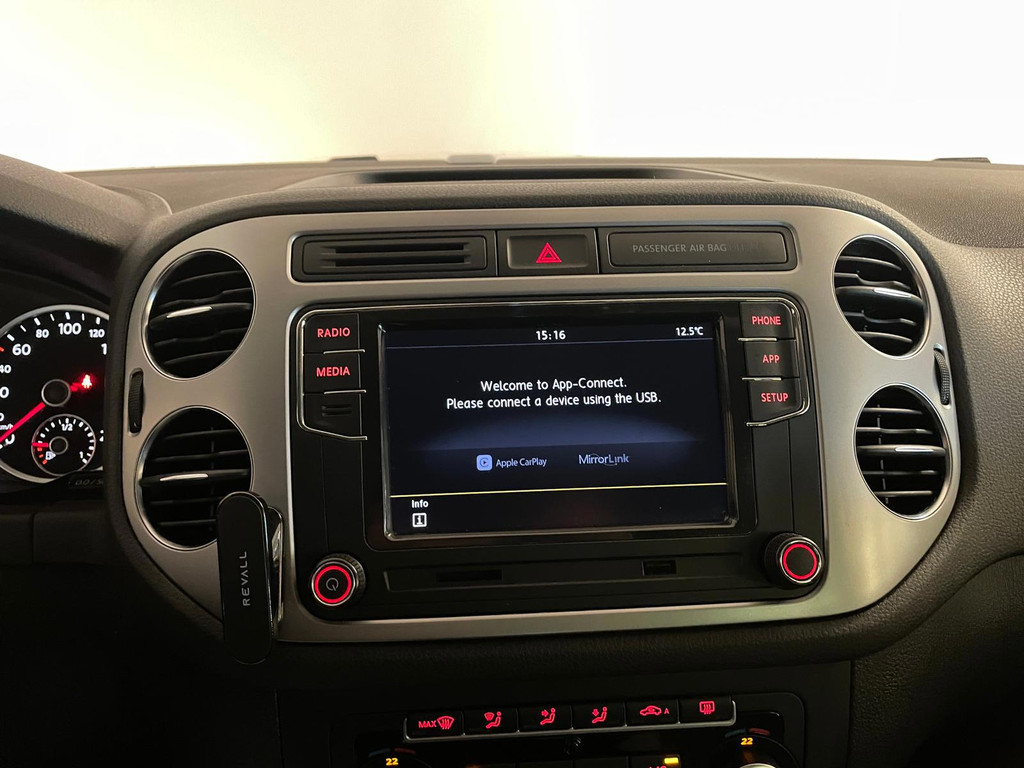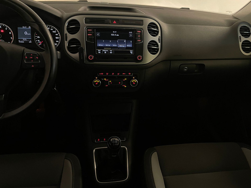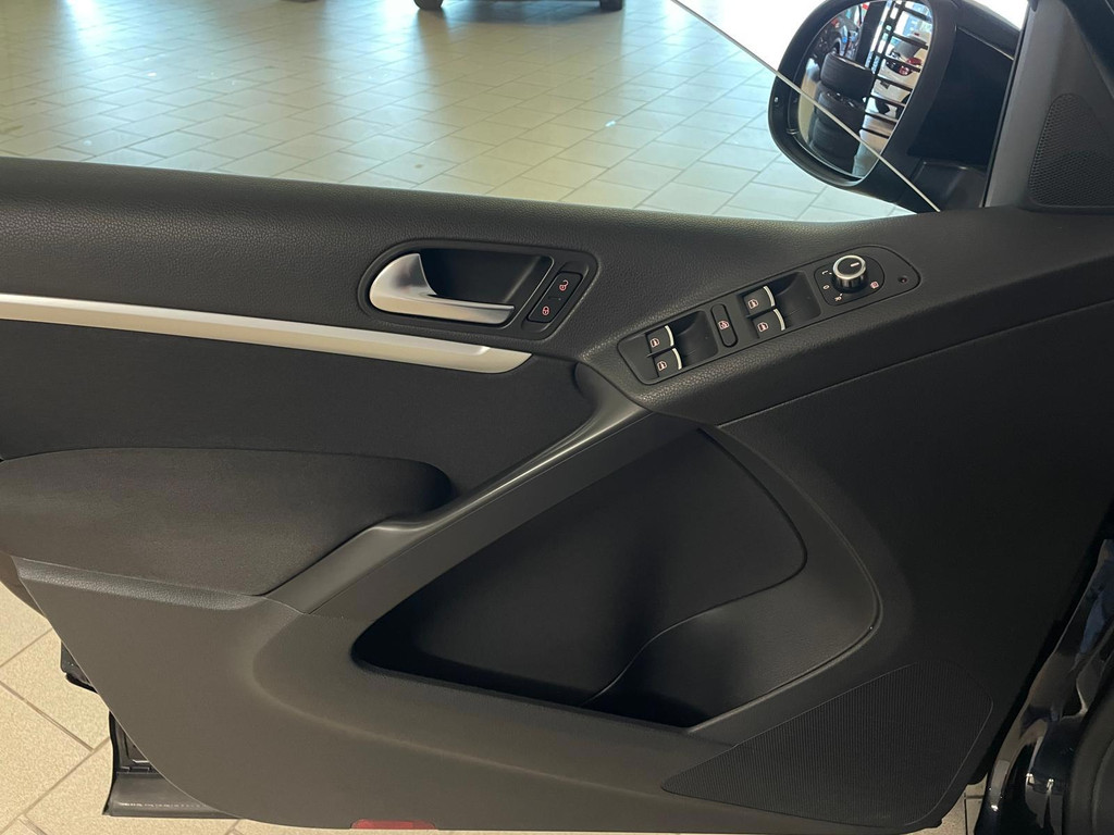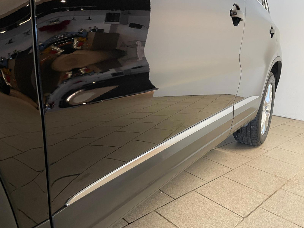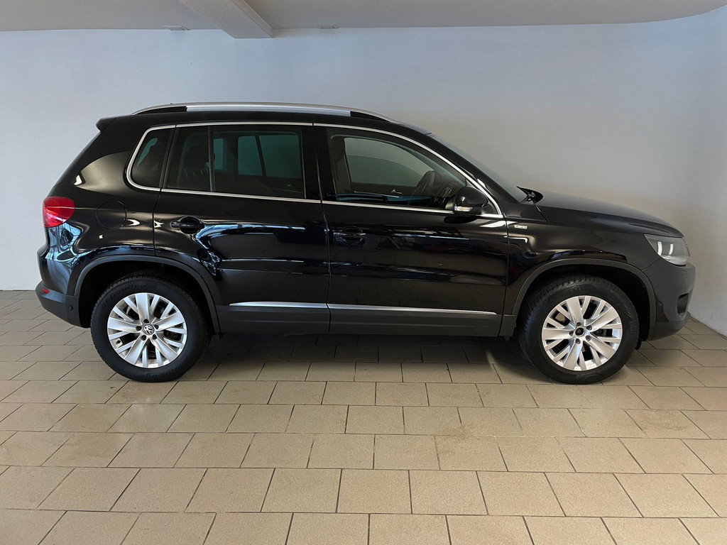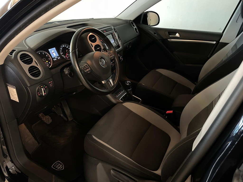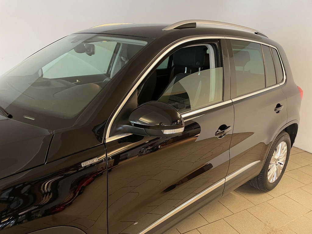 Volkswagen Tiguan 1.4TSI 122pk Life. Deze Tiguan is uitgerust met het Life pakket en is daarom nét even mooier en luxer als een standaard Tiguan. Speciaal interieur, chroom accenten, dakrails, airco, cruise control, navigatie, stoelverwarming, lichtmetalen velgen, mistlampen, privacy glas, parkeersensoren, regensensor, zijn een aantal van de vele opties die je kan vind op deze Tiguan. De 1.4 TSI benzine motor met 122pk geeft de Tiguan meer dan voldoende kracht en in combinatie met de 6 versnellingsbak zorgt dit ervoor dat het rijden met de Tiguan genieten is. Door de antraciete lak, de sportvelgen, de chroom-accenten en het privacyglas heeft de Tiguan een aantrekkelijk en sportief uiterlijk. De vorige eigenaar is altijd erg zuinig geweest op de auto en dat is te zien, van binnen en buiten ziet hij er nog heel goed uit! Zoek jij een Tiguan met een sportief uiterlijk? Met een benzine motor? Maak dan snel een afspraak en kom langs in onze showroom voor deze Tiguan 1.4 TSI Life!