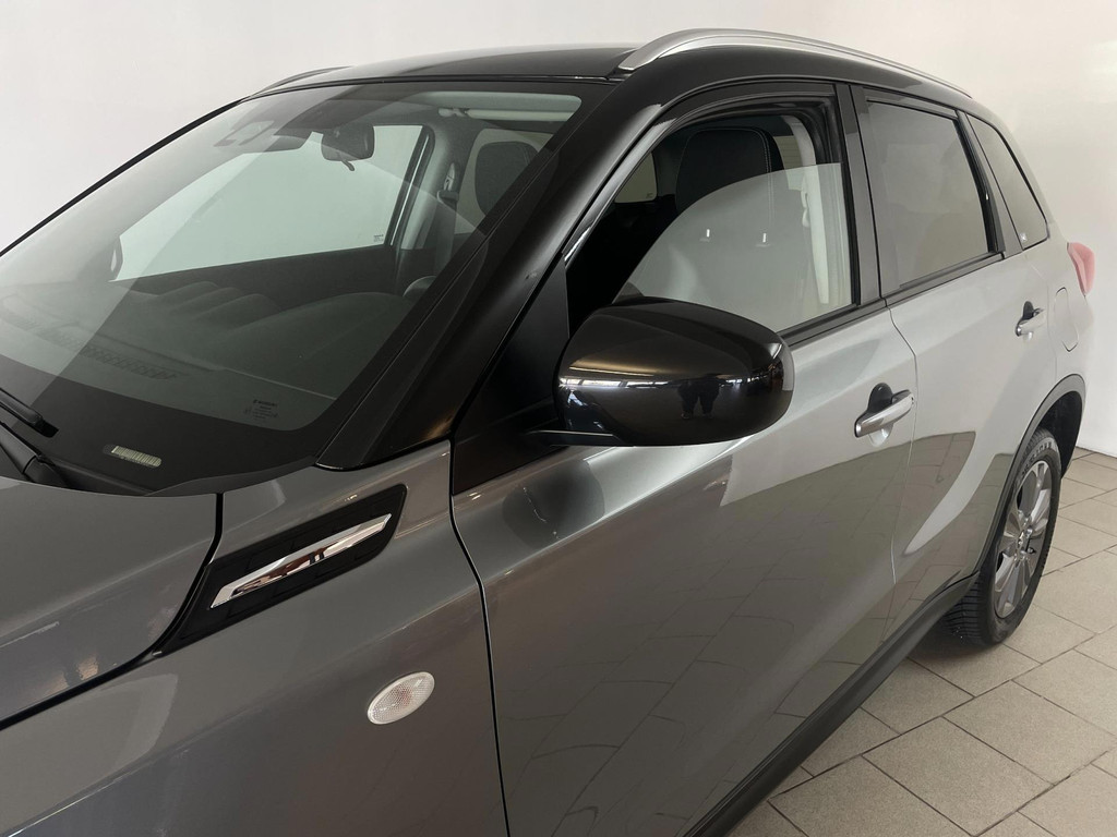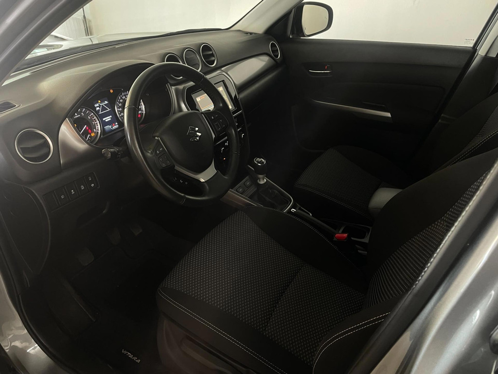 Suzuki Vitara 1.4 Boosterjet Select. We hebben weer zo'n fijne hoogzitter binnen gekregen. Ben jij opzoek naar een hoogzitter maar wil jij niet de hoge vast lasten van een hoogzitter? Zoek jij een auto met veel leuke opties? Zoek dan niet verder! Je hebt hem nu gevonden! Airco, Bluetooth, multifunctioneel stuur, stoelverwarming, cruise control, limiter, lichtmetalen velgen en zo gaat het nog wel even door met het aantal opties die je zult vinden op deze Vitara. De grijze lak in combinatie met de chroom accenten, antraciete velgen en privacyglas geven hem een luxe uitstraling. De dakreling en de moderne belijning van de carrosserie maken het helemaal af! Onder de motorkap vind je de turbo benzine motor, deze maakt het rijden in deze Suzuki Vitara tot een waar genot! Ruim voldoende pit en je kan er ook nog eens erg zuinig mee rijden! De vorige eigenaren zijn er altijd erg zuinig op geweest. En dat is te zien. Van binnen en buiten ziet hij er nog als nieuw uit! Nieuwsgierig geworden naar deze Suzuki Vitara? Wacht dan niet te lang en kom langs in onze showroom voor deze Suzuki Vitara!