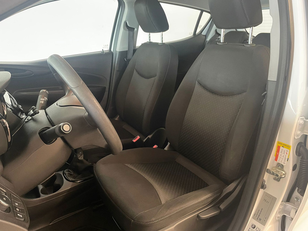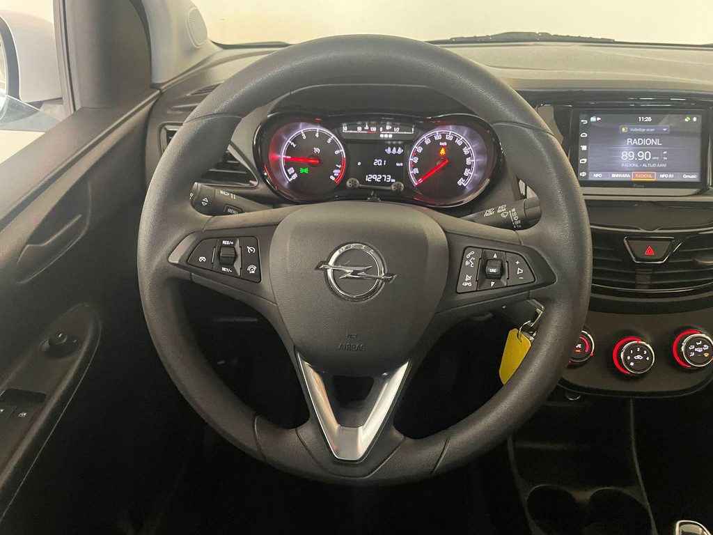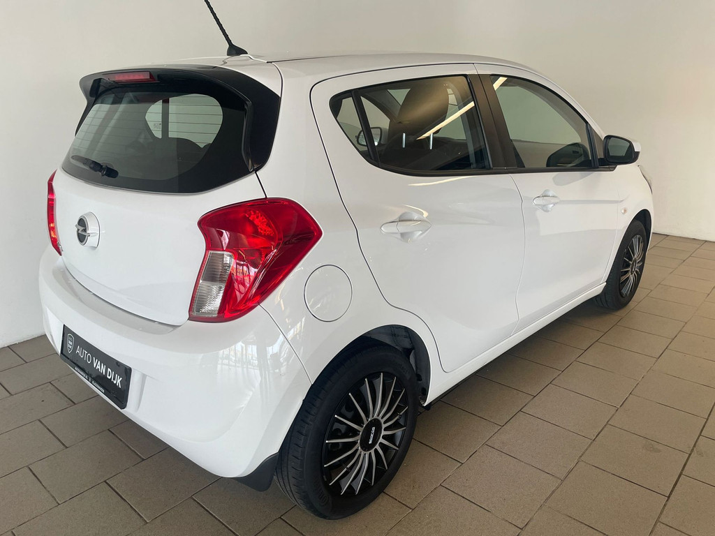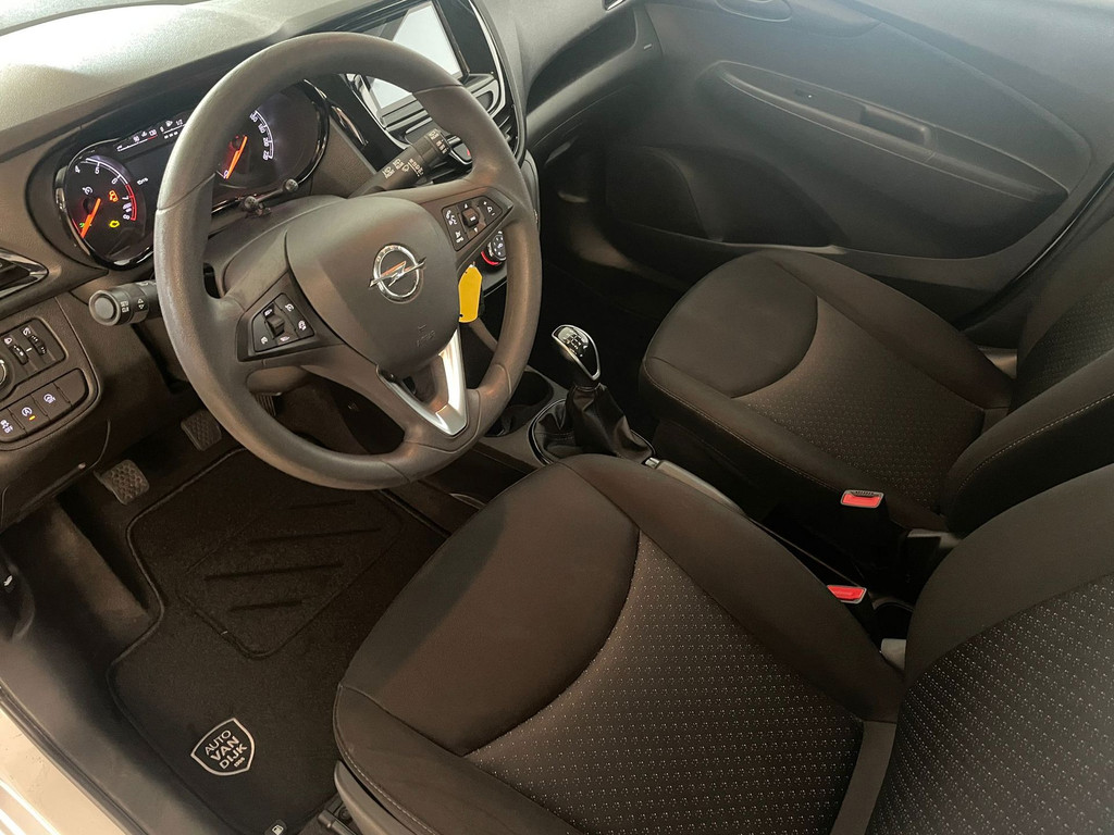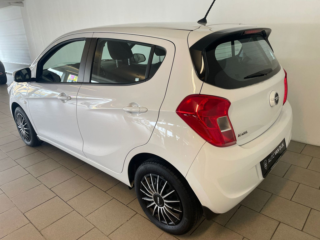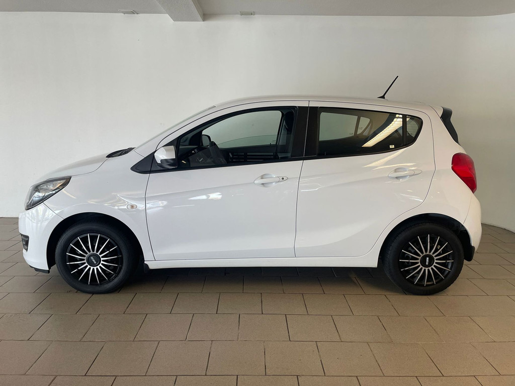 Opel Karl 1.0 ecoFlex Edition. De witte lak, het privacy glas, de zwarte accenten en de Sparco wieldoppen geven deze Karl zijn sportieve uiterlijk. Airco, navigatie, cruise-control, Bluetooth carkit, in hoogte verstelbare voorstoelen, multifunctioneel stuurwiel zijn een aantal van de vele opties die je kunt vinden op deze kleine Opel. Het is zeer comfortabel en voordelig rijden in deze Opel. Het comfort wordt verzorgt door zijn hoge zit, het goede overzicht in de auto en de stille motor. Hij is heel zuinig (1:20), de wegenbelasting is 20 euro per maand en de onderhoudskosten zijn zeer laag. Ben je nieuwsgierig geworden naar deze kleine hoogzitter met zijn sportieve uiterlijk? Kom dan snel langs in onze showroom voor deze Opel Karl!