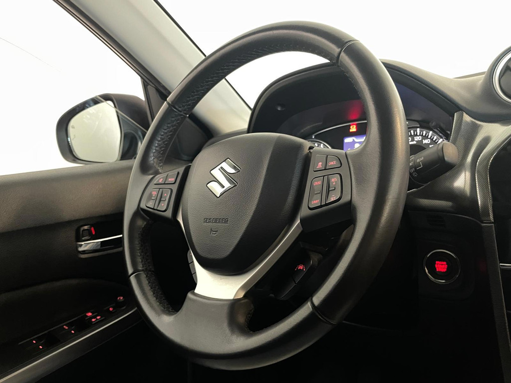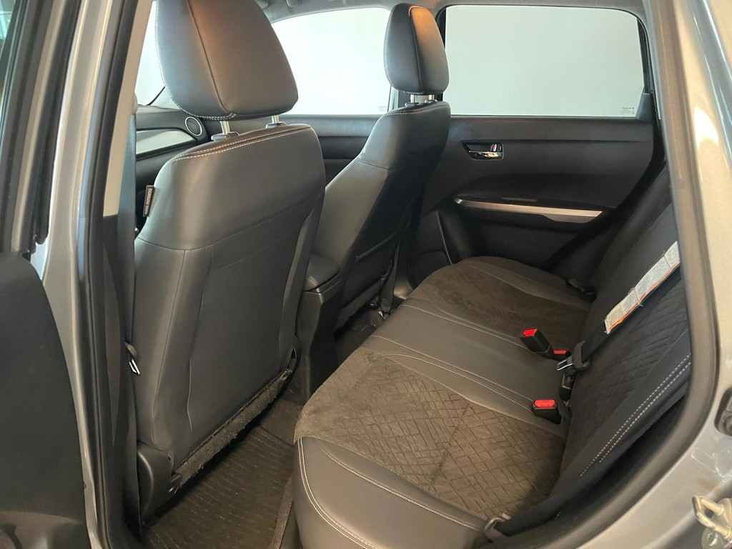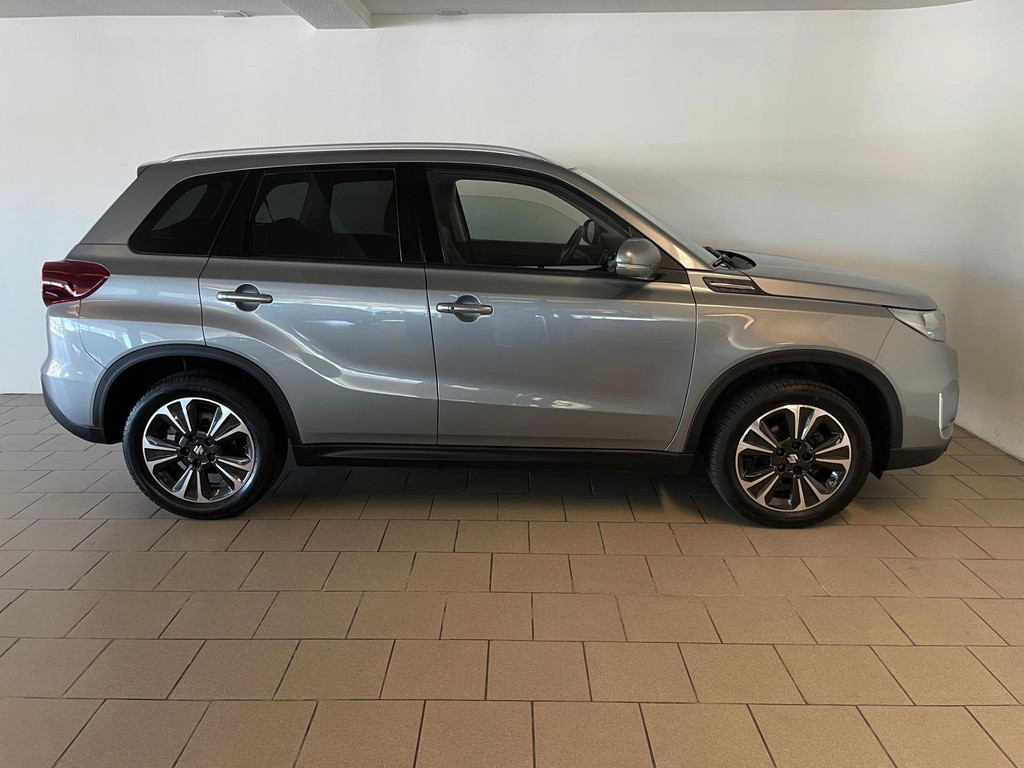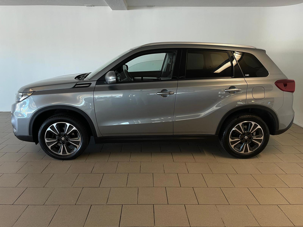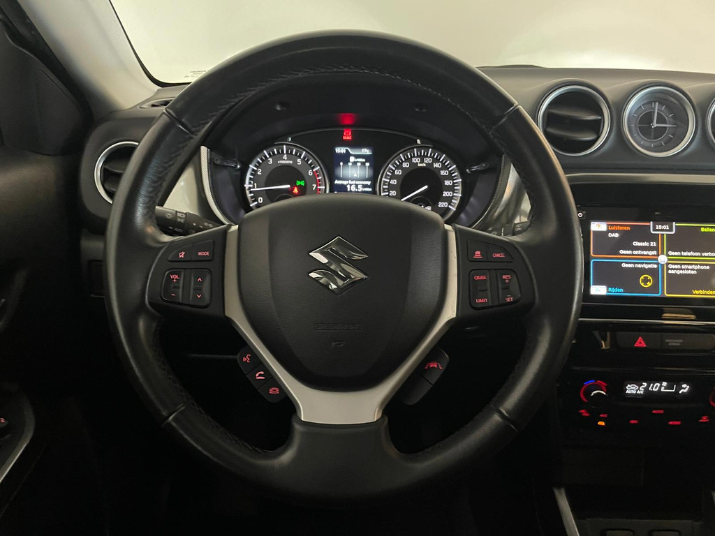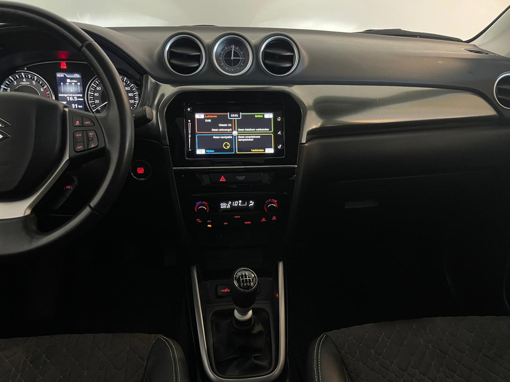 Suzuki Vitara 1.4 Boosterjet Select. We hebben weer zo'n fijne hoogzitter binnen gekregen. Ben jij opzoek naar een hoogzitter maar wil jij niet de hoge vast lasten van een hoogzitter? Zoek jij een auto met veel leuke opties? Zoek dan niet verder! Je hebt hem nu gevonden! Airco, Bluetooth, multifunctioneel stuur, stoelverwarming, cruise control, lichtmetalen velgen en zo gaat het nog wel even door met het aantal opties die je zult vinden op deze Vitara. De grijze lak in combinatie met de chroom accenten, het panorama dak, lichtmetalen velgen en privacy glas geven hem een luxe uitstraling. De dakreling en de moderne belijning van de carrosserie maken het helemaal af! Onder de motorkap vind je de turbo benzine motor, deze maakt het rijden in deze Suzuki Vitara tot een waar genot! Ruim voldoende pit en je kan er ook nog eens erg zuinig mee rijden! De vorige eigenaren zijn er altijd erg zuinig op geweest. En dat is te zien. Van binnen en buiten ziet hij er nog als nieuw uit! Nieuwsgierig geworden naar deze Suzuki Vitara? Wacht dan niet te lang en kom langs in onze showroom voor deze Suzuki Vitara!