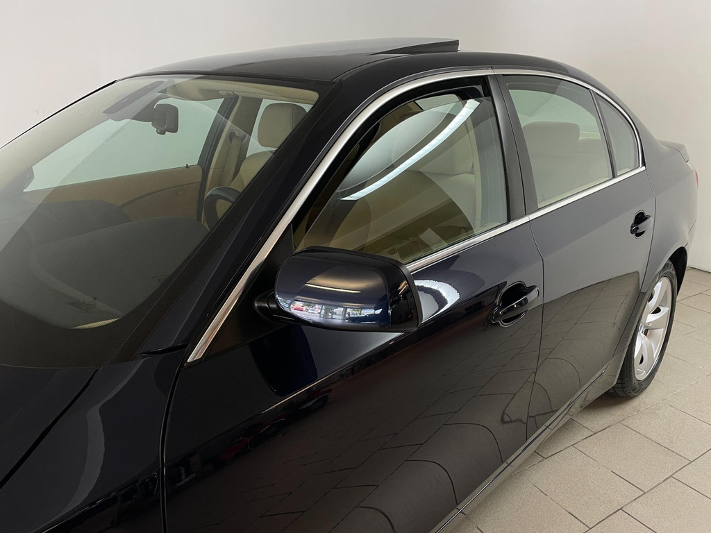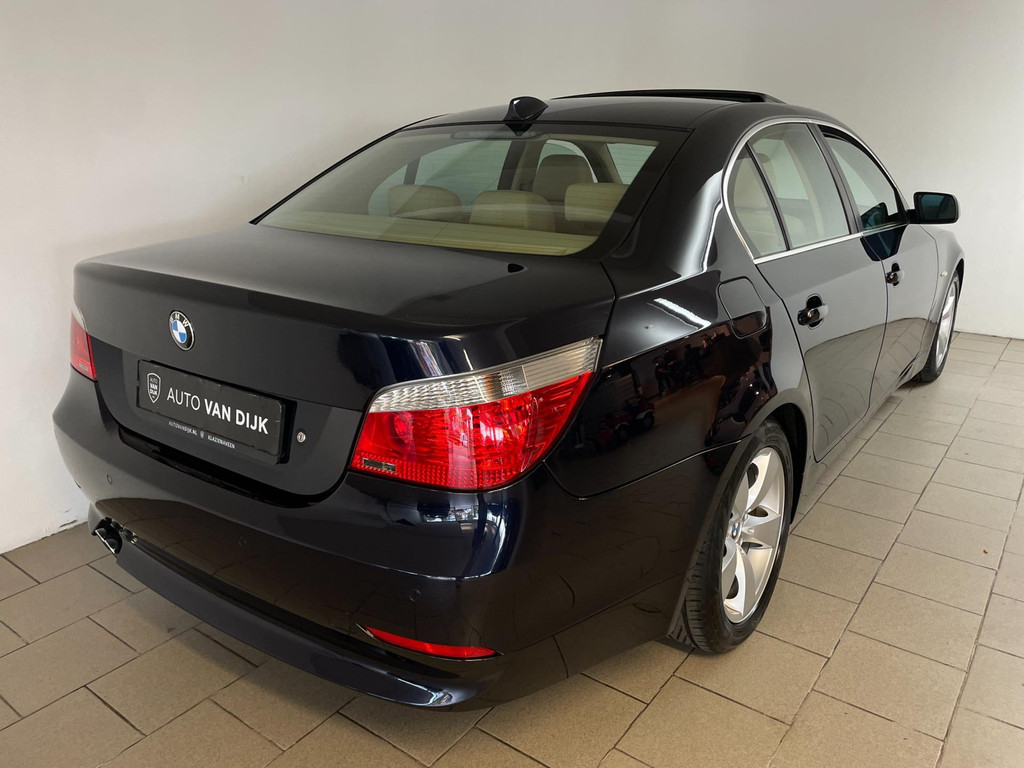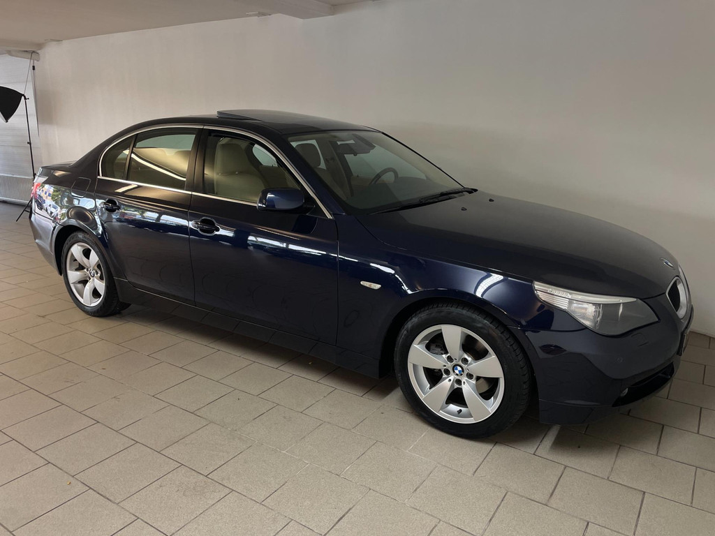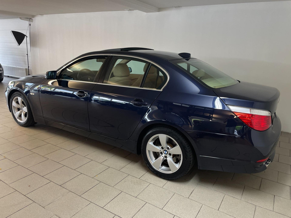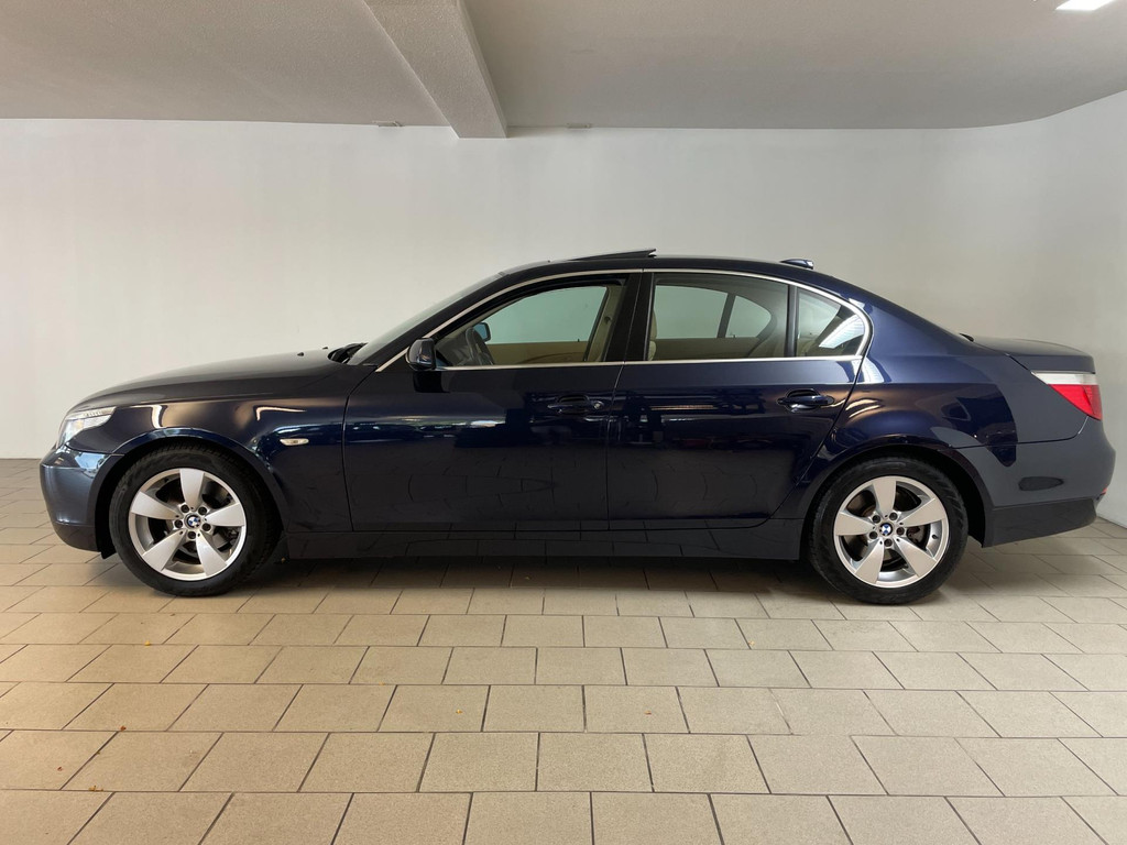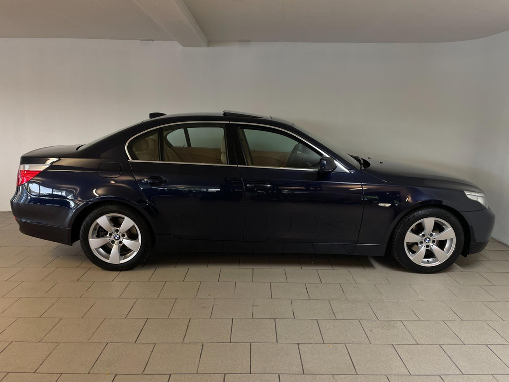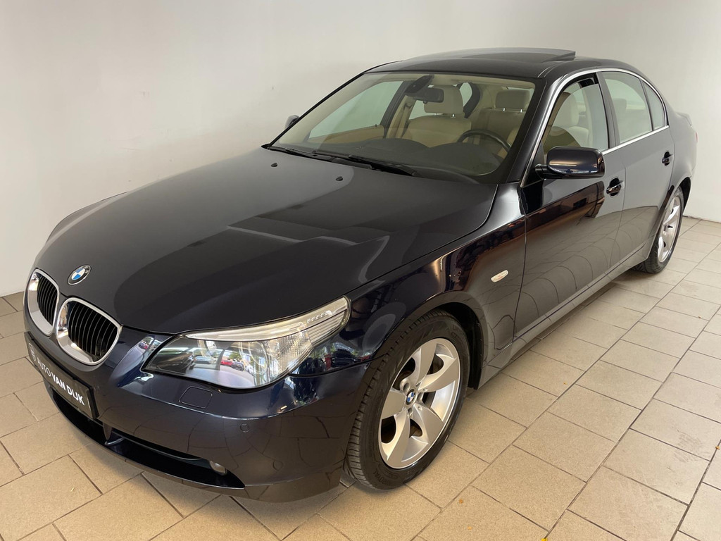 BMW 5-serie 520i 6 cilinder. We hebben weer zo'n nette BMW 5 serie binnen gekregen. Hij ziet er niet alleen keurig uit, hij rijdt ook perfect en heeft veel leuke opties. Onder de motorkap van deze BMW 5-serie zit een heerlijke 6 cilinder benzine motor en het rijden is een waar genot! En de opties, die maken deze BMW helemaal af! Airco, navigatie, cruise control, velgen, schuif-kanteldak, parkeersensoren, wegklapbare, 17 inch velgen, regensensor, radiobediening op het stuur en zo gaat het nog wel even door met de vele opties! De vorige eigenaren zijn altijd erg zuinig geweest op de BMW, van binnen en buiten ziet hij er zeer netjes uit! Wat een heerlijke auto is deze BMW! Bekijk snel alle foto's en maak een afspraak voor de proefrit!