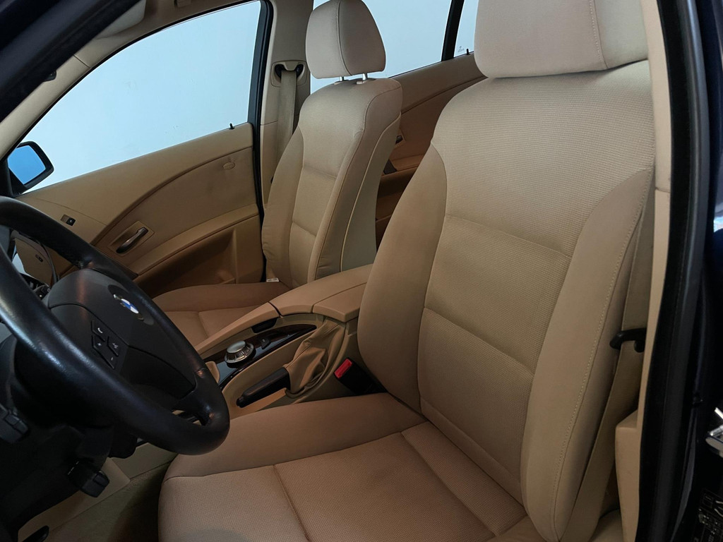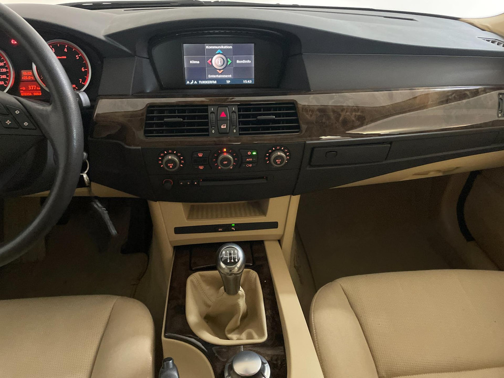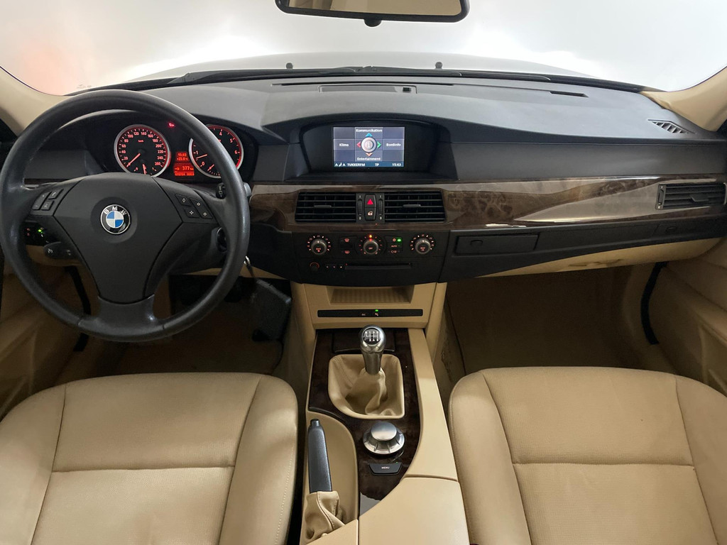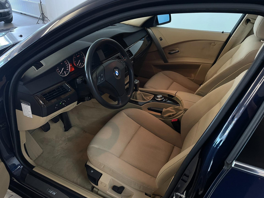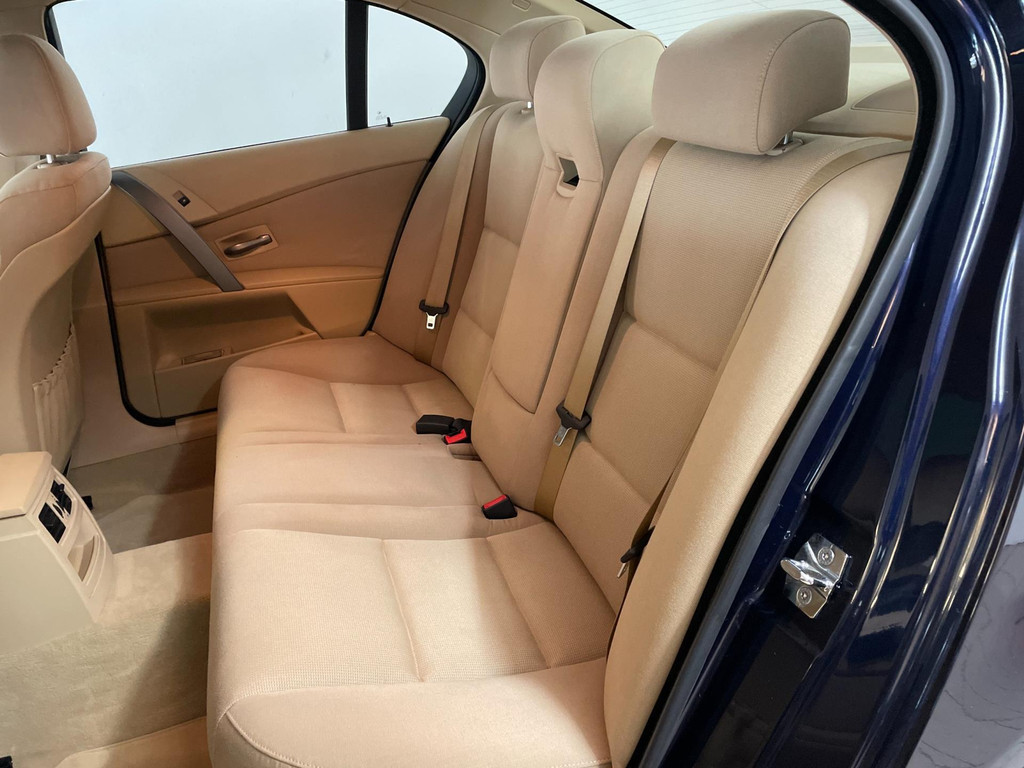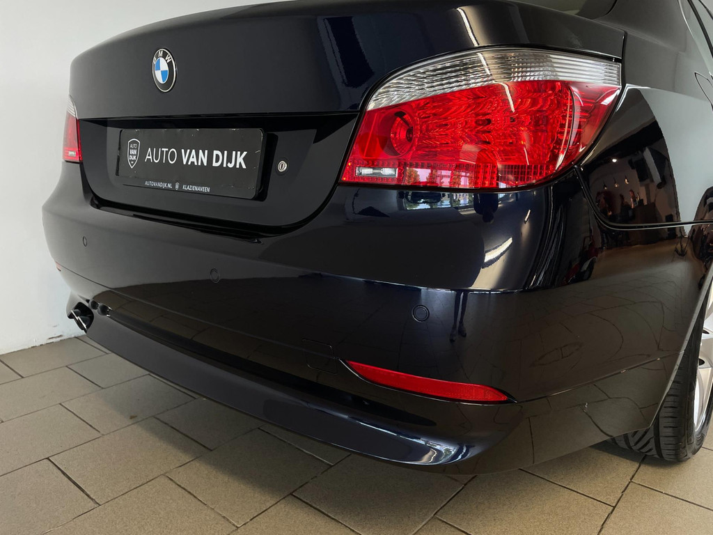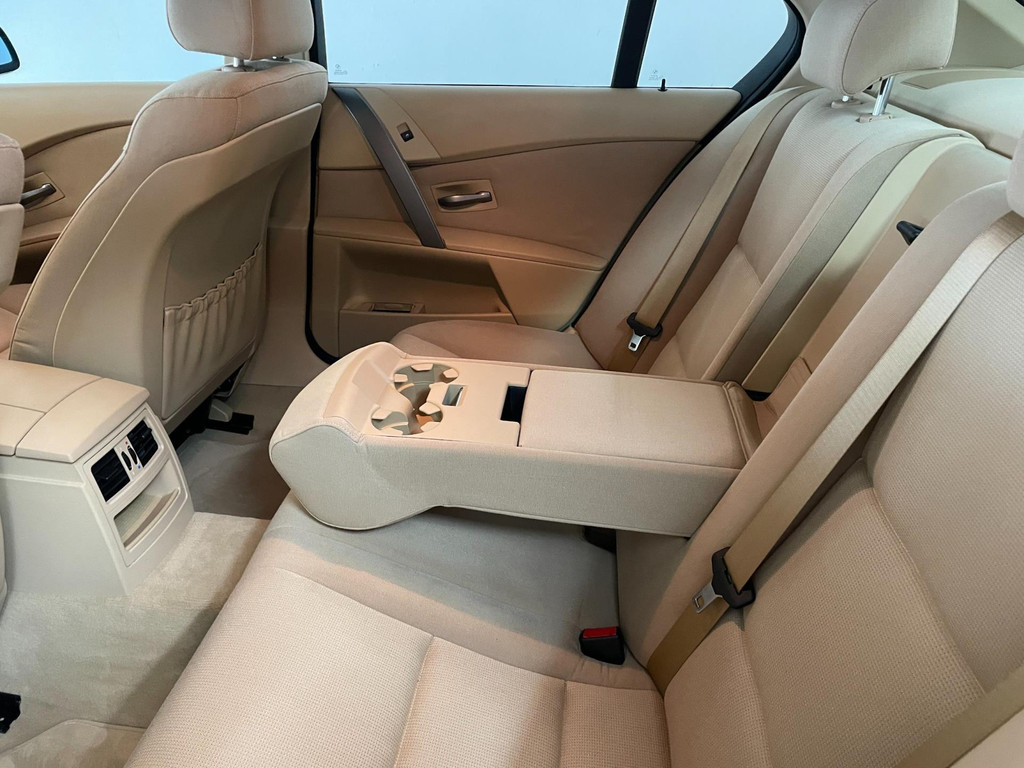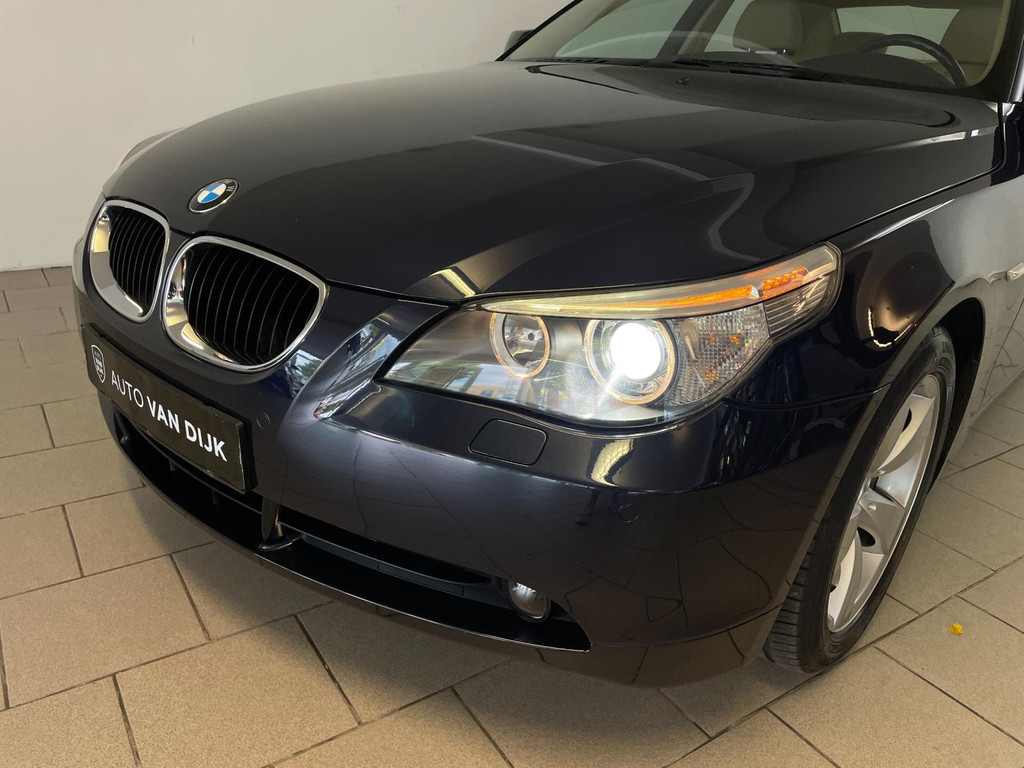 BMW 5-serie 520i 6 cilinder. We hebben weer zo'n nette BMW 5 serie binnen gekregen. Hij ziet er niet alleen keurig uit, hij rijdt ook perfect en heeft veel leuke opties. Onder de motorkap van deze BMW 5-serie zit een heerlijke 6 cilinder benzine motor en het rijden is een waar genot! En de opties, die maken deze BMW helemaal af! Airco, navigatie, cruise control, velgen, schuif-kanteldak, parkeersensoren, wegklapbare, 17 inch velgen, regensensor, radiobediening op het stuur en zo gaat het nog wel even door met de vele opties! De vorige eigenaren zijn altijd erg zuinig geweest op de BMW, van binnen en buiten ziet hij er zeer netjes uit! Wat een heerlijke auto is deze BMW! Bekijk snel alle foto's en maak een afspraak voor de proefrit!