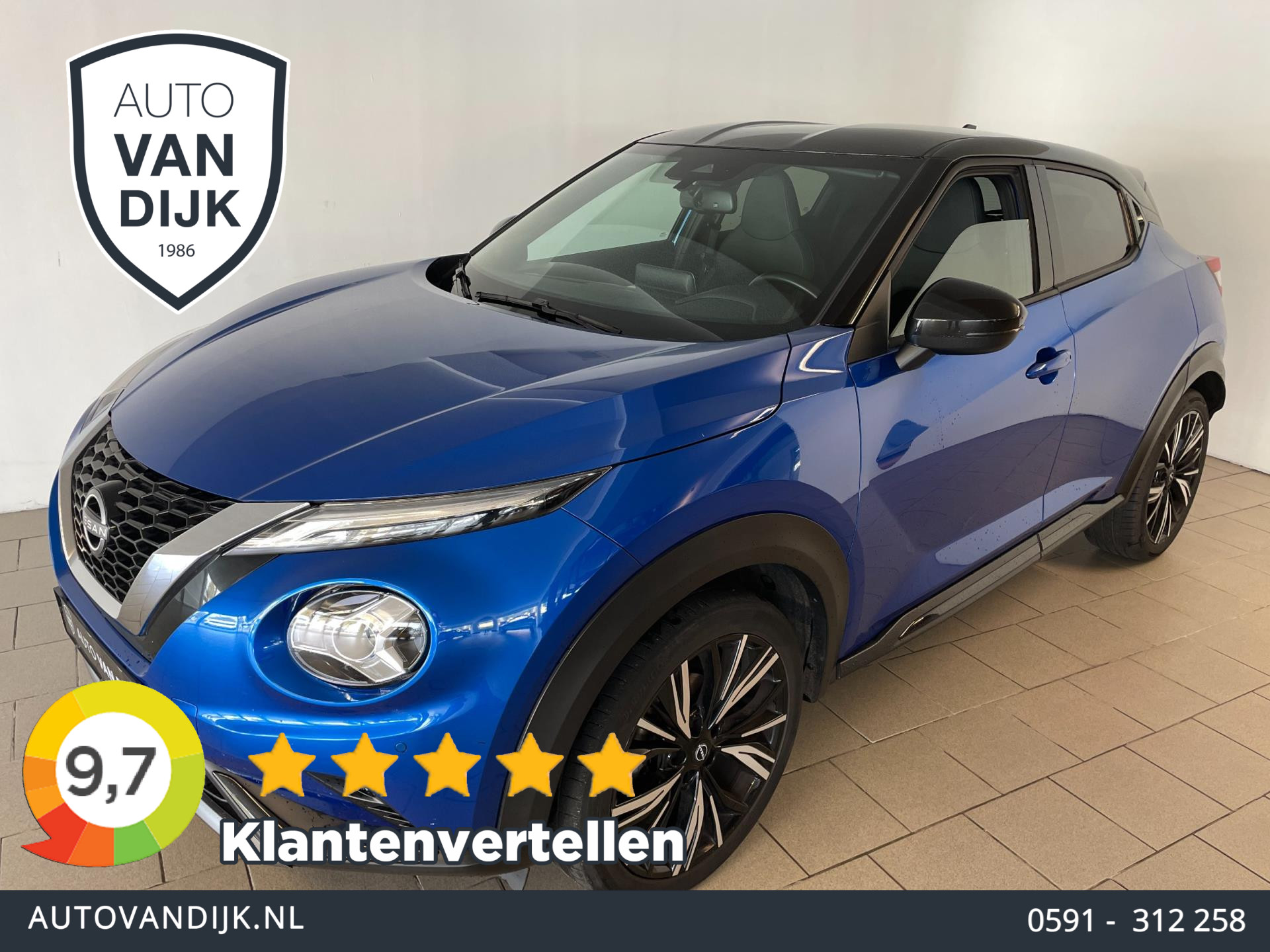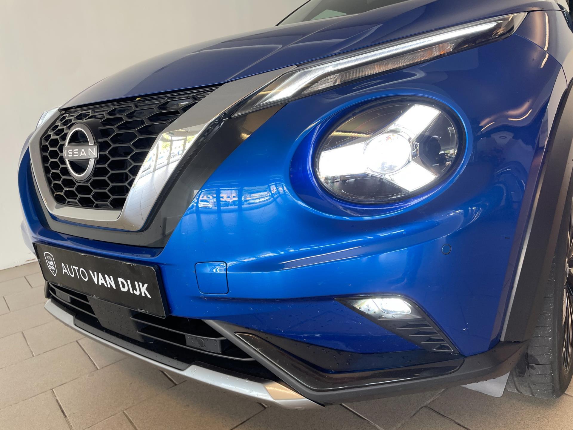 Nissan Juke 1.0 DIG-T N-Design 115pk. Ben je opzoek naar een ruime, hoog zittende auto met een sportief en eigenzinnig uiterlijk? Wil je graag één met een zuinige benzine motor? Wil je graag comfortabel in- en uitstappen? Zoek dan niet verder! Je hebt hem nu gevonden! Deze Nissan Juke heeft het allemaal! De blauwe metallic lak, de zwarte 19inch lichtmetalen velgen, het privacy glas en het chroom-accent in de grill zorgen voor zijn sportieve en tegelijkertijd luxe uitstraling. Deze auto heeft een eigenzinnig design! Zowel het exterieur als het interieur zijn erg mooi vormgegeven. Kijk ook maar eens naar de prachtige stoelen, ze zien er niet alleen prachtig uit maar zitten ook heerlijk! Het is een speciale uitvoering en hij zit vol met opties! Airco met climatecontrol, cruisecontrol, navigatie, DAB-radio, sportinterieur, achteruitrijcamera, multifunctioneel stuur en een Bluetooth carkit zijn een aantal van de vele opties. Van binnen en van buiten ziet deze Nissan er nog als nieuw uit! De vorige eigenaar is er altijd erg zuinig op geweest. Hij komt uit 2023 en er staat nog maar 76.000 kilometer op de teller. Nieuwsgierig geworden? Maak dan snel een afspraak en kom langs in onze showroom voor deze Nissan Juke!