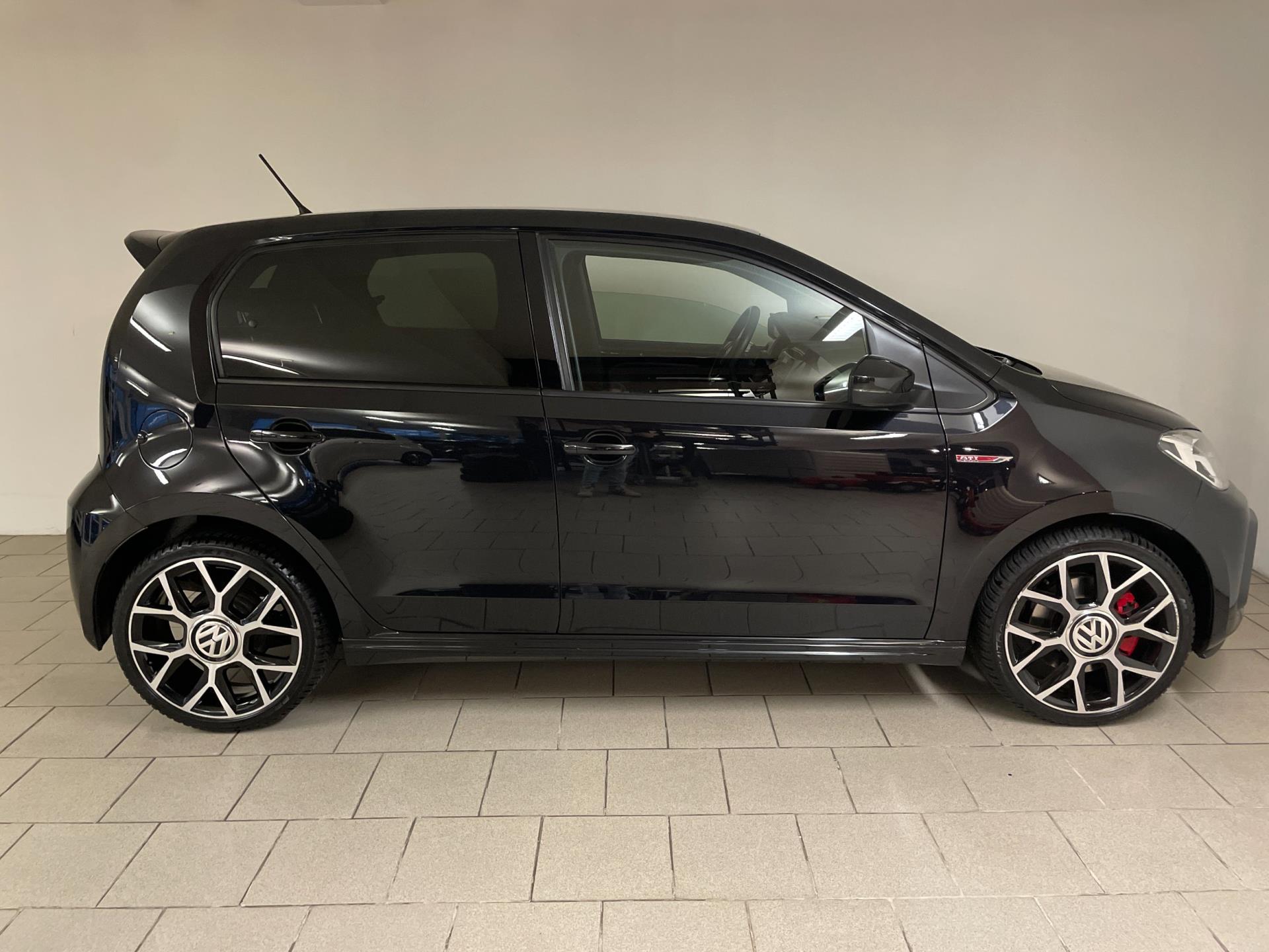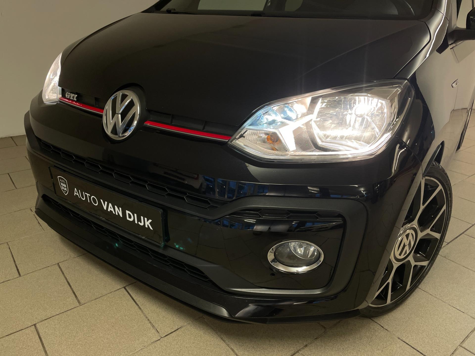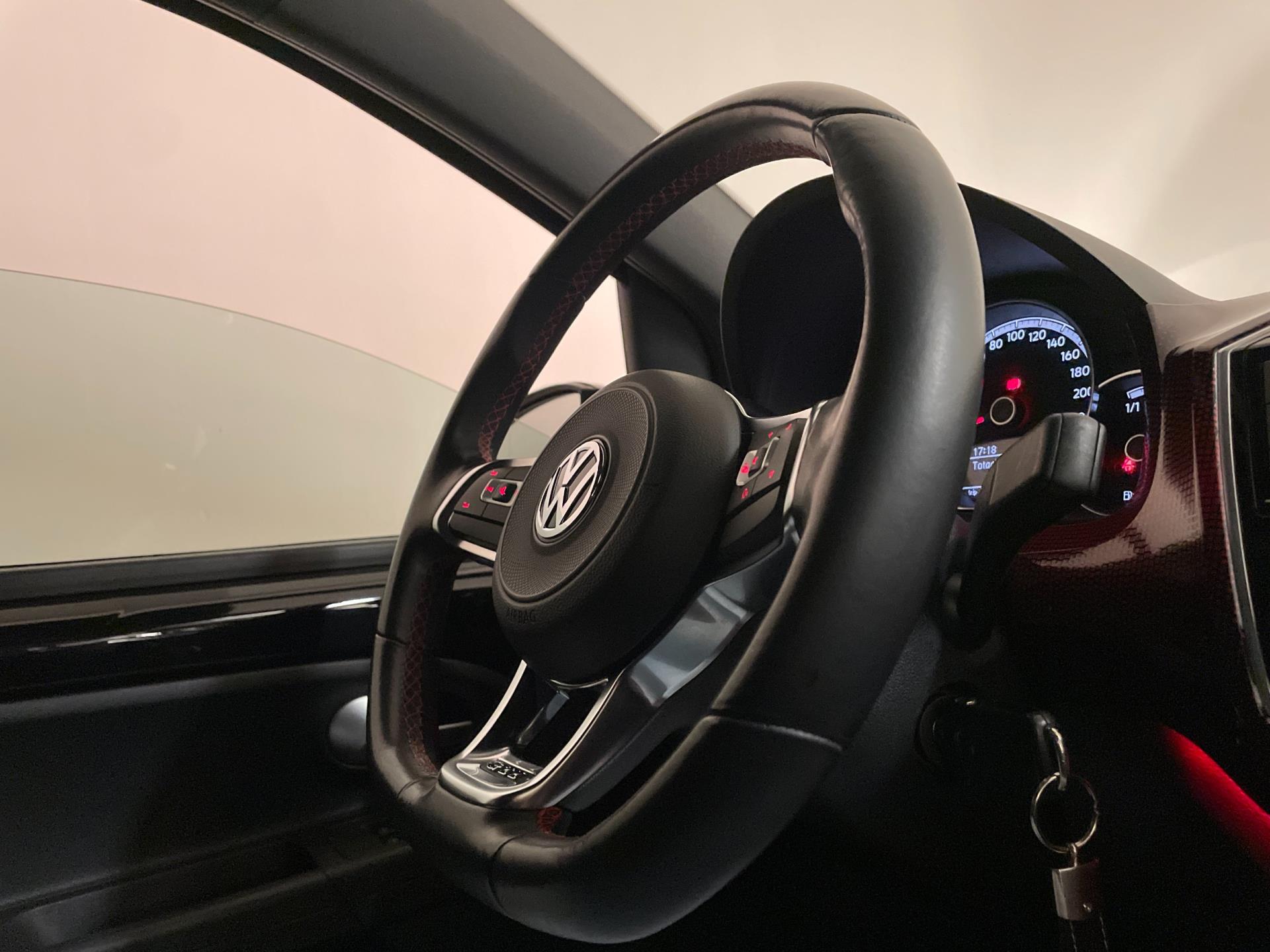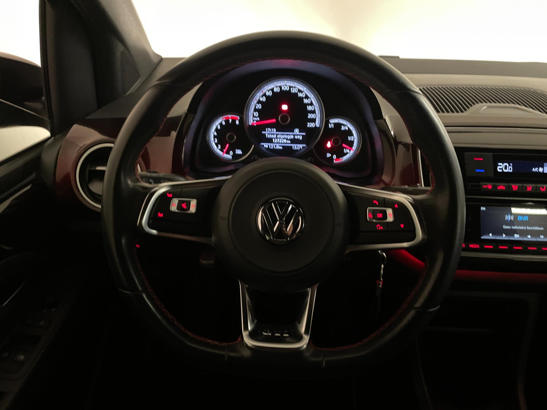 Volkswagen Up! 1.0 TSI GTI 115PK. Het ultieme sportieve gevoel krijg je met deze Up GTI, 115pk, Goede wegligging, optimale controle en een sportief geluid! Lijkt jou dit wat? Onze fotograaf heeft het maar druk gehad met deze Up GTI, Wat zijn er veel foto's gemaakt! Er zijn zoveel leuke opties op deze metallic zwarte Up GTI. Zijn sportieve opties zijn: GTI Bumpers, frontlip, achterklep spoiler, GTI Logo's, LED verlichting achter, Sportonderstel, GTI Dashboard, privacy glas, en 17inch sportvelgen. Luxe opties heeft hij ook, we proberen ze allemaal te noemen: Airco met clima, cruise control, stoelverwarming, parkeersensoren, zwarte dakhemel, regensensor en zo gaat het nog wel even door! Al die opties maken het rijden in deze Volkswagen erg lekker en dan heeft hij nog eens een 1.0 TSI 115pk sterke benzine motor. Hij is lekker snel! Zoek jij een Up? GTI? Kom dan langs in onze showroom voor deze Volkswagen Up GTI.