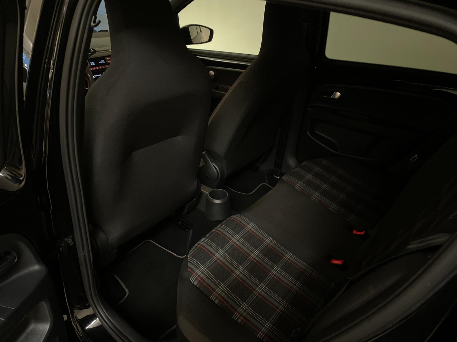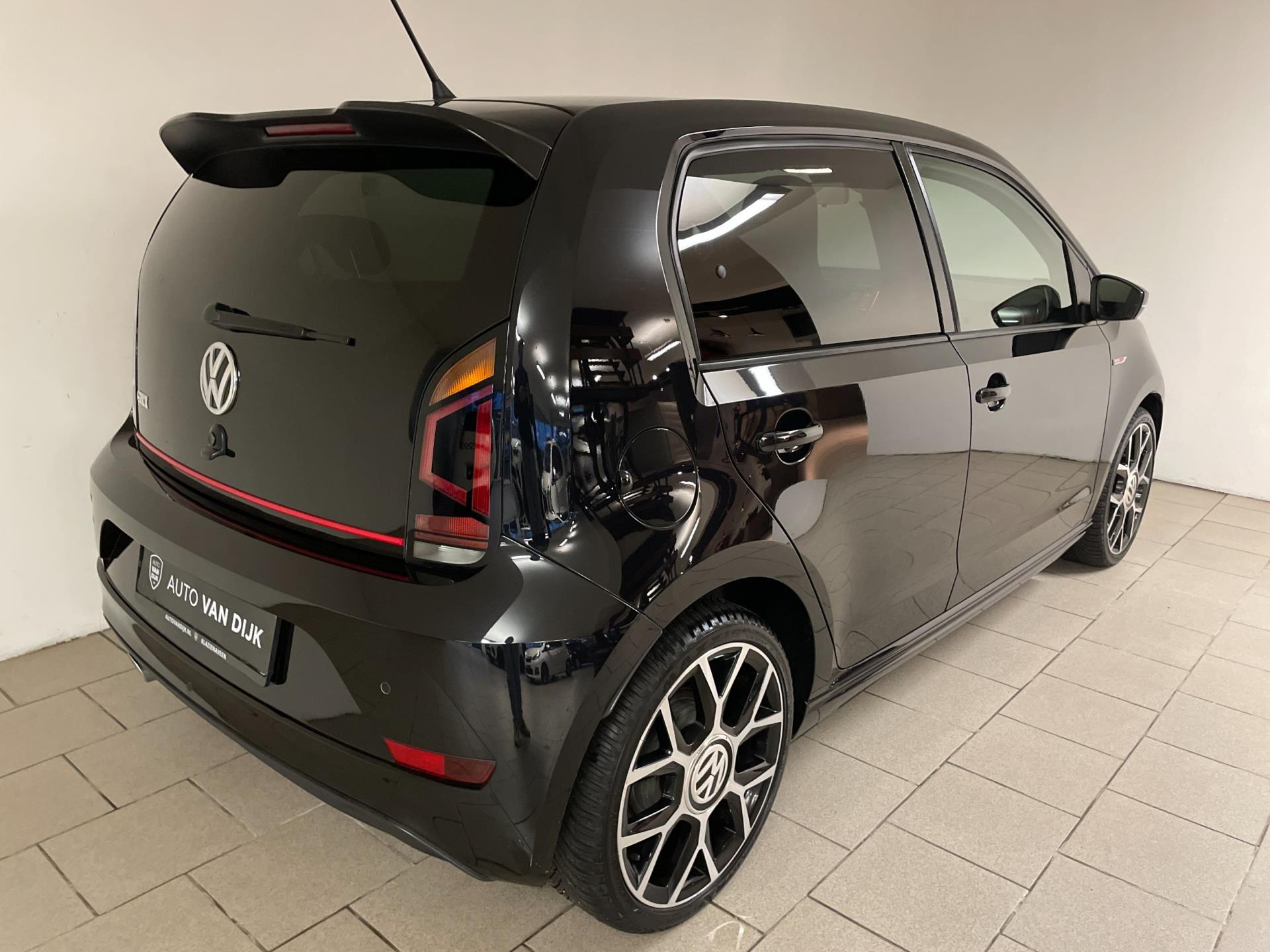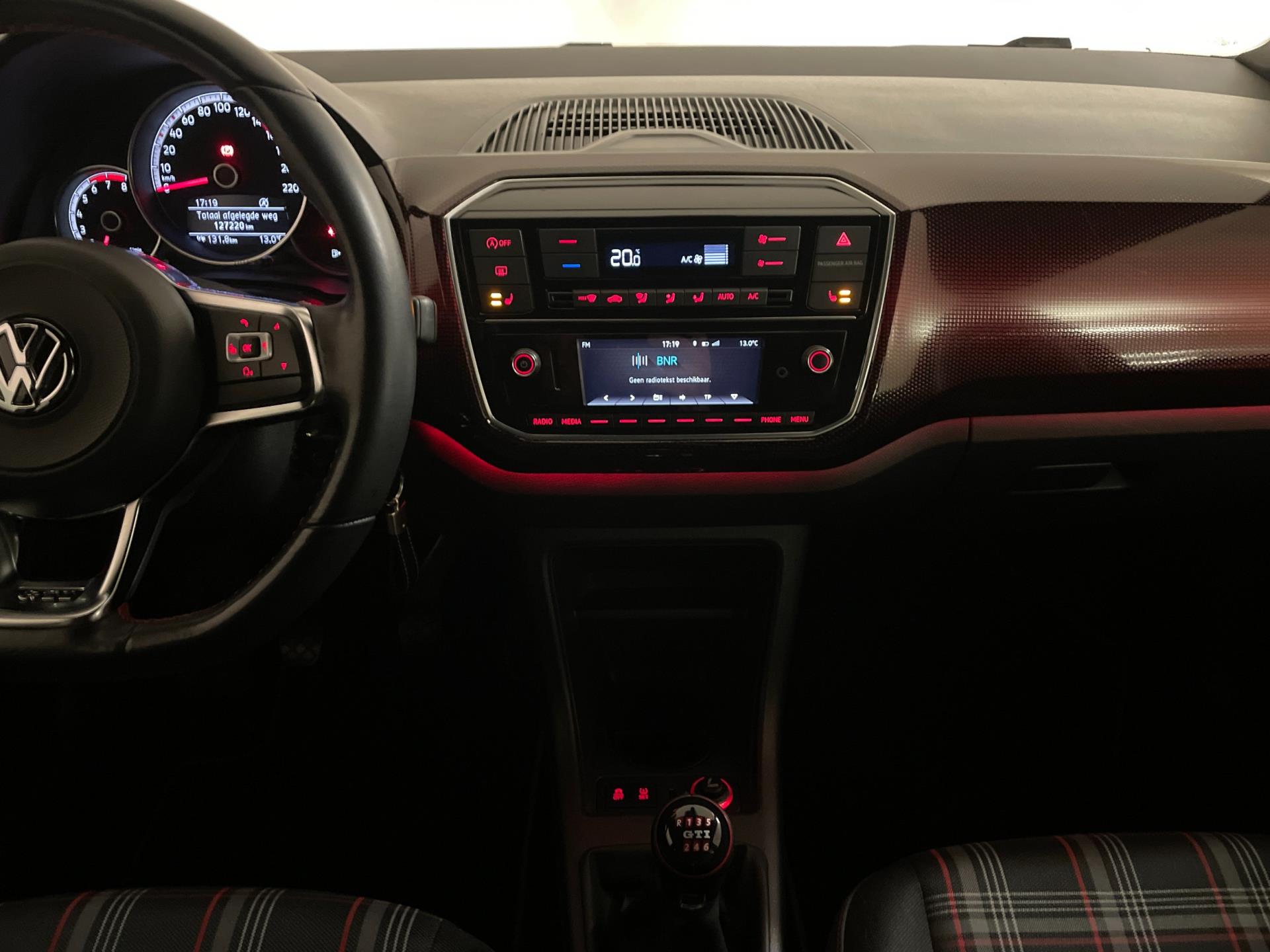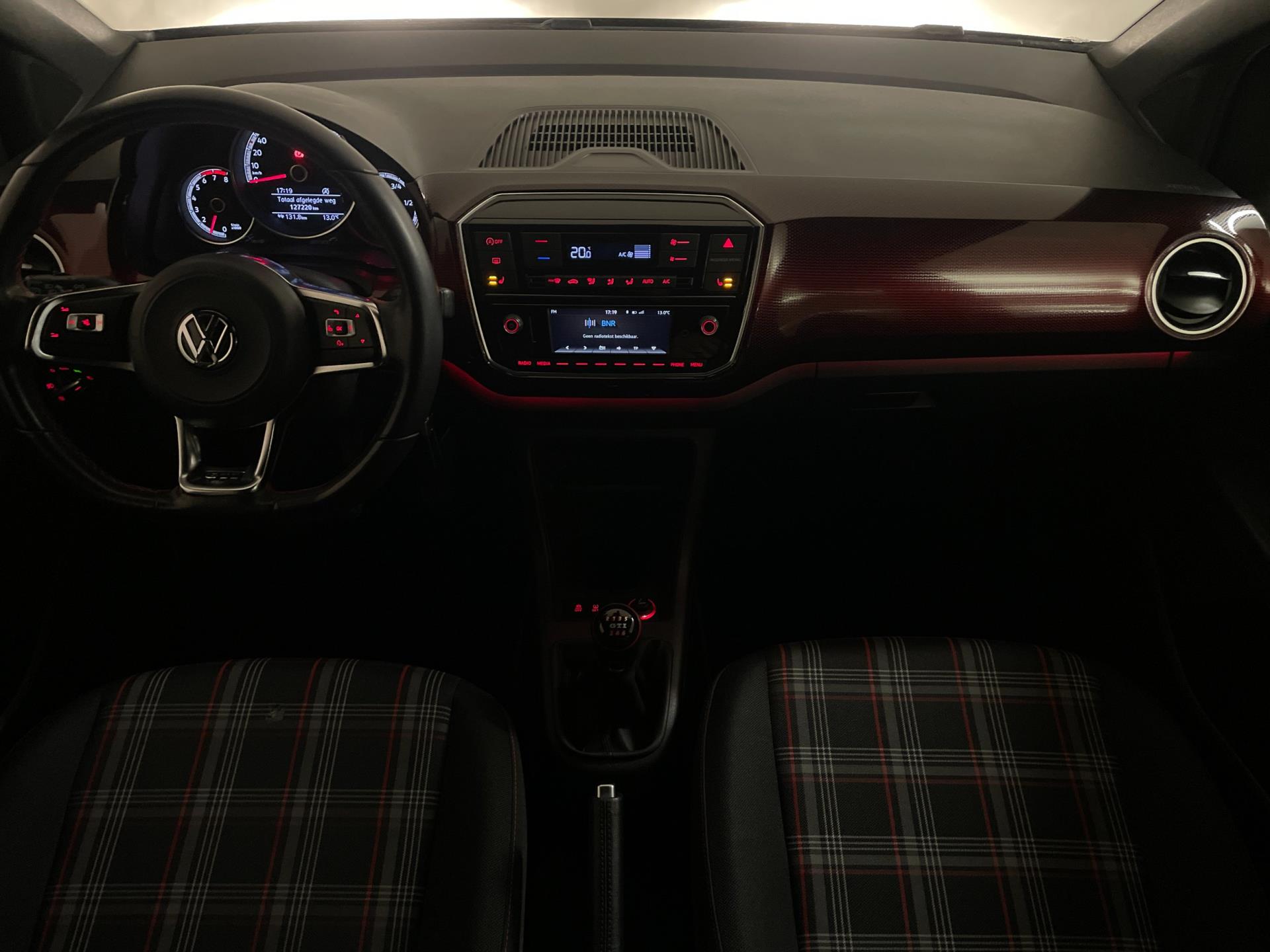 Volkswagen Up! 1.0 TSI GTI 115PK. Het ultieme sportieve gevoel krijg je met deze Up GTI, 115pk, Goede wegligging, optimale controle en een sportief geluid! Lijkt jou dit wat? Onze fotograaf heeft het maar druk gehad met deze Up GTI, Wat zijn er veel foto's gemaakt! Er zijn zoveel leuke opties op deze metallic zwarte Up GTI. Zijn sportieve opties zijn: GTI Bumpers, frontlip, achterklep spoiler, GTI Logo's, LED verlichting achter, Sportonderstel, GTI Dashboard, privacy glas, en 17inch sportvelgen. Luxe opties heeft hij ook, we proberen ze allemaal te noemen: Airco met clima, cruise control, stoelverwarming, parkeersensoren, zwarte dakhemel, regensensor en zo gaat het nog wel even door! Al die opties maken het rijden in deze Volkswagen erg lekker en dan heeft hij nog eens een 1.0 TSI 115pk sterke benzine motor. Hij is lekker snel! Zoek jij een Up? GTI? Kom dan langs in onze showroom voor deze Volkswagen Up GTI.