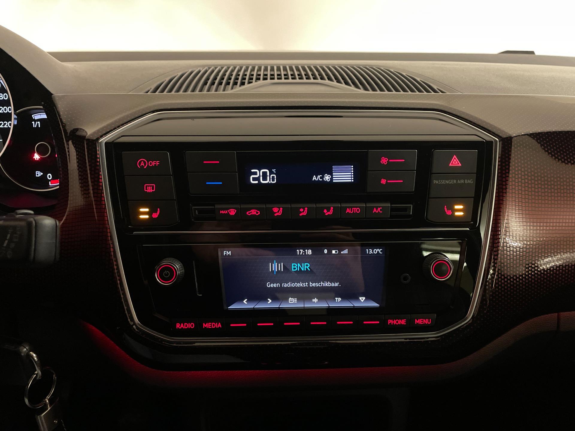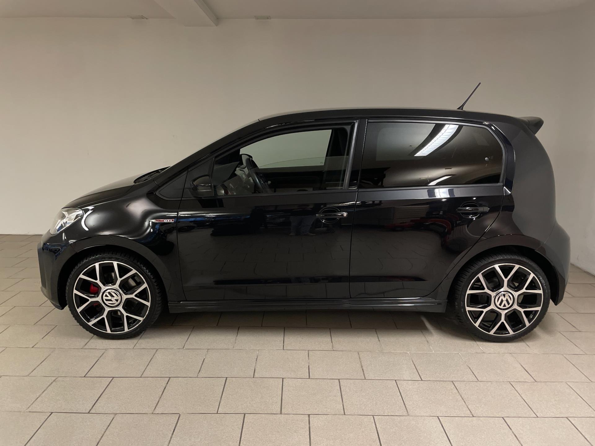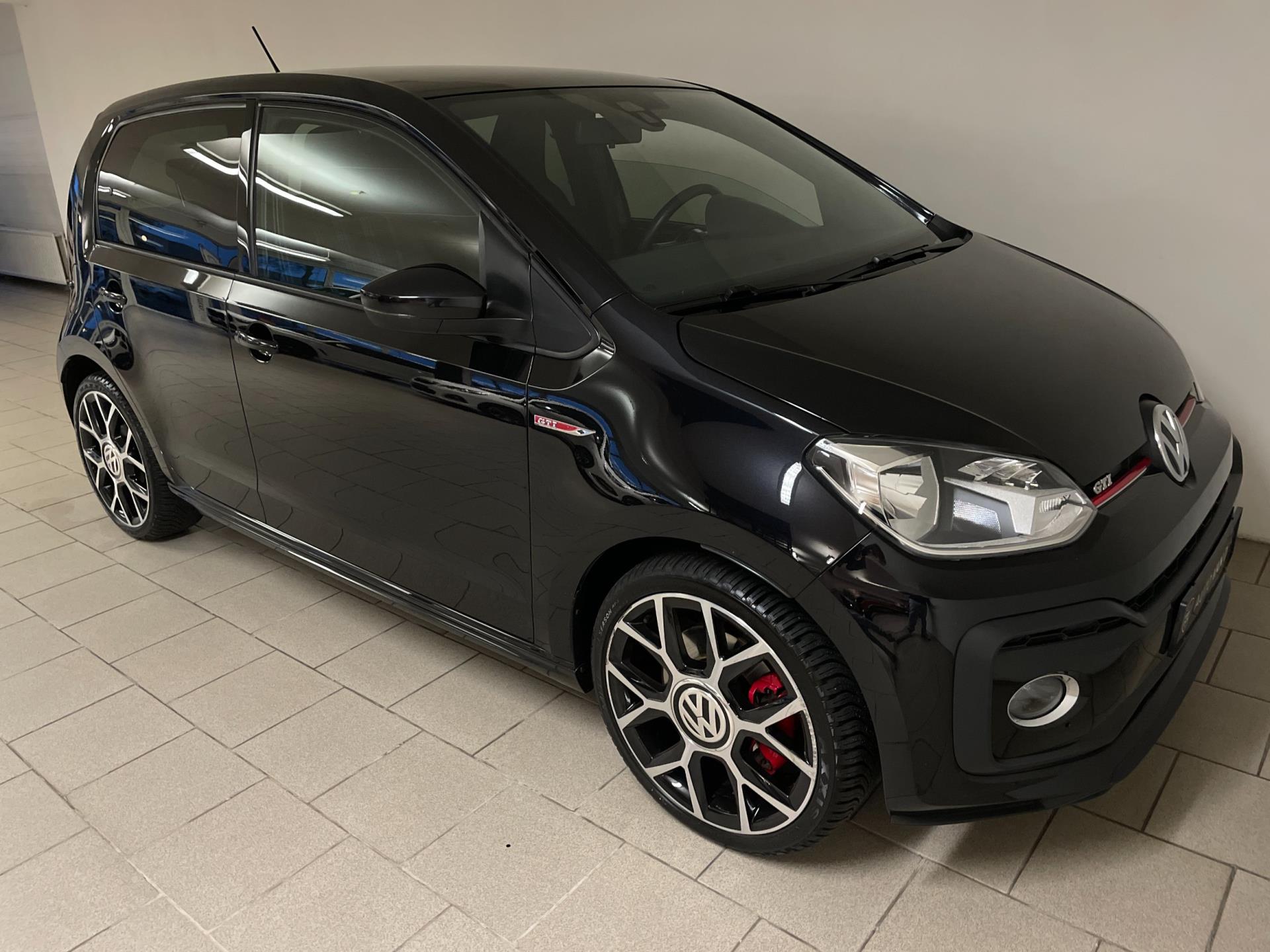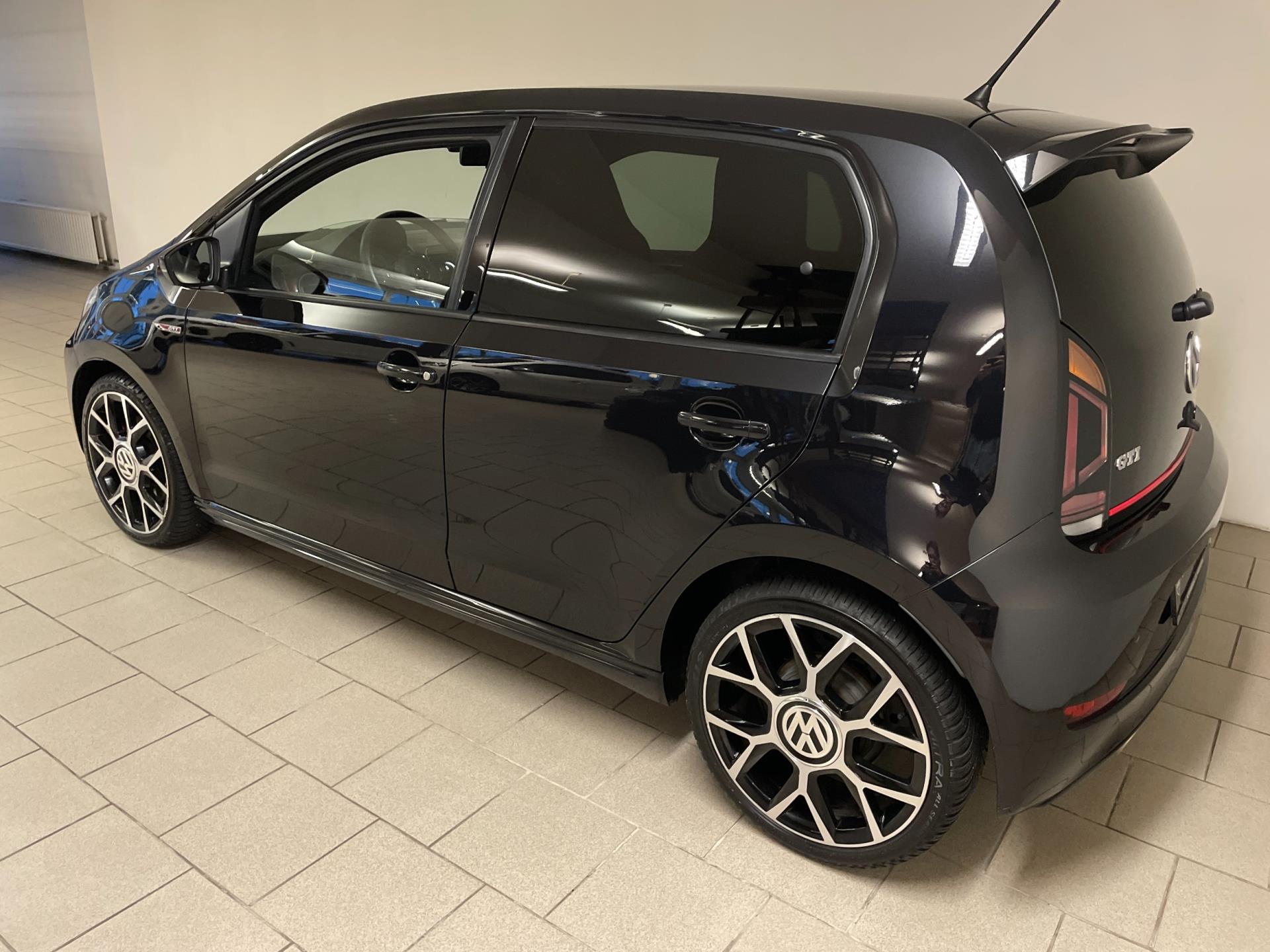 Volkswagen Up! 1.0 TSI GTI 115PK. Het ultieme sportieve gevoel krijg je met deze Up GTI, 115pk, Goede wegligging, optimale controle en een sportief geluid! Lijkt jou dit wat? Onze fotograaf heeft het maar druk gehad met deze Up GTI, Wat zijn er veel foto's gemaakt! Er zijn zoveel leuke opties op deze metallic zwarte Up GTI. Zijn sportieve opties zijn: GTI Bumpers, frontlip, achterklep spoiler, GTI Logo's, LED verlichting achter, Sportonderstel, GTI Dashboard, privacy glas, en 17inch sportvelgen. Luxe opties heeft hij ook, we proberen ze allemaal te noemen: Airco met clima, cruise control, stoelverwarming, parkeersensoren, zwarte dakhemel, regensensor en zo gaat het nog wel even door! Al die opties maken het rijden in deze Volkswagen erg lekker en dan heeft hij nog eens een 1.0 TSI 115pk sterke benzine motor. Hij is lekker snel! Zoek jij een Up? GTI? Kom dan langs in onze showroom voor deze Volkswagen Up GTI.