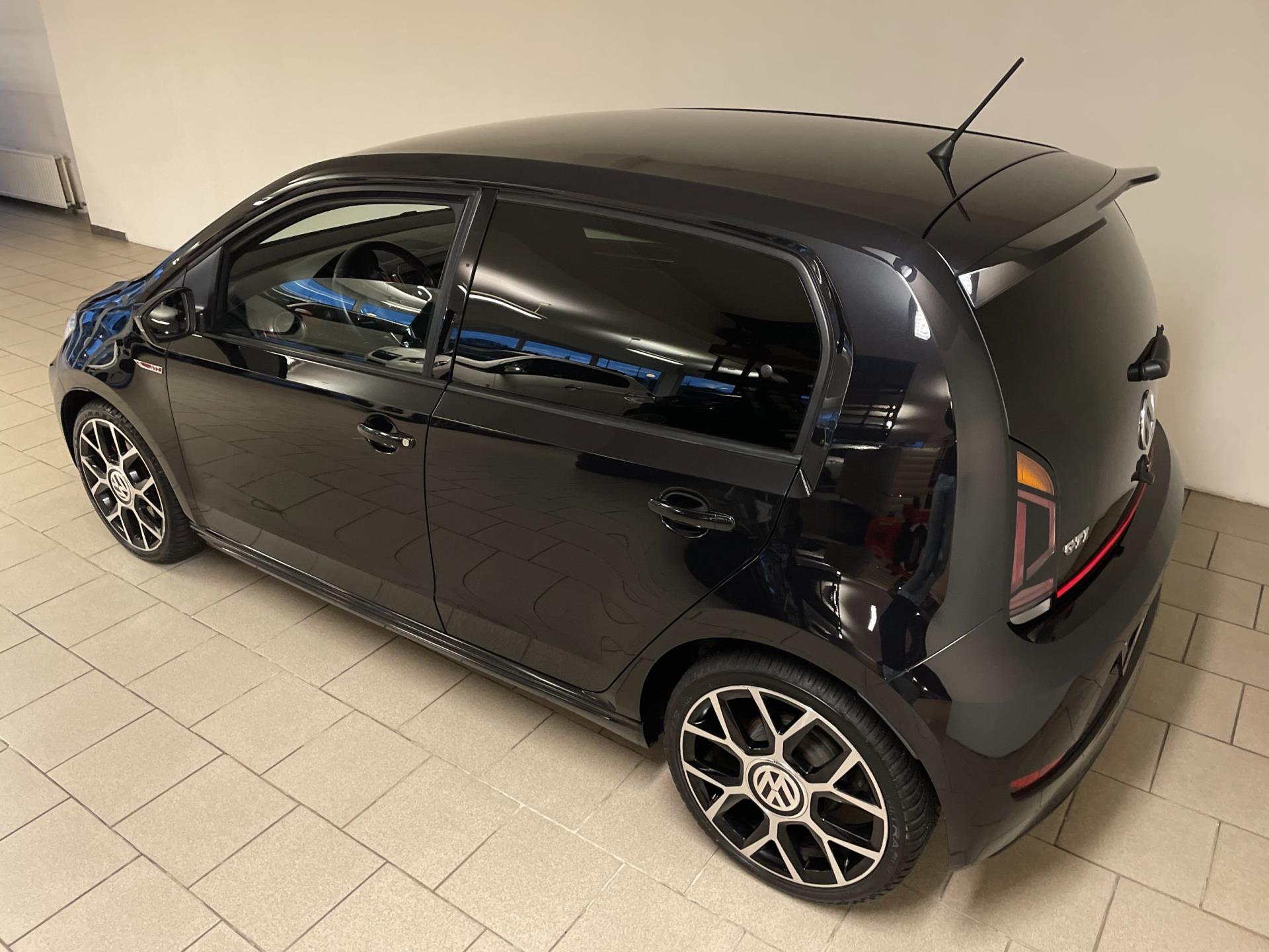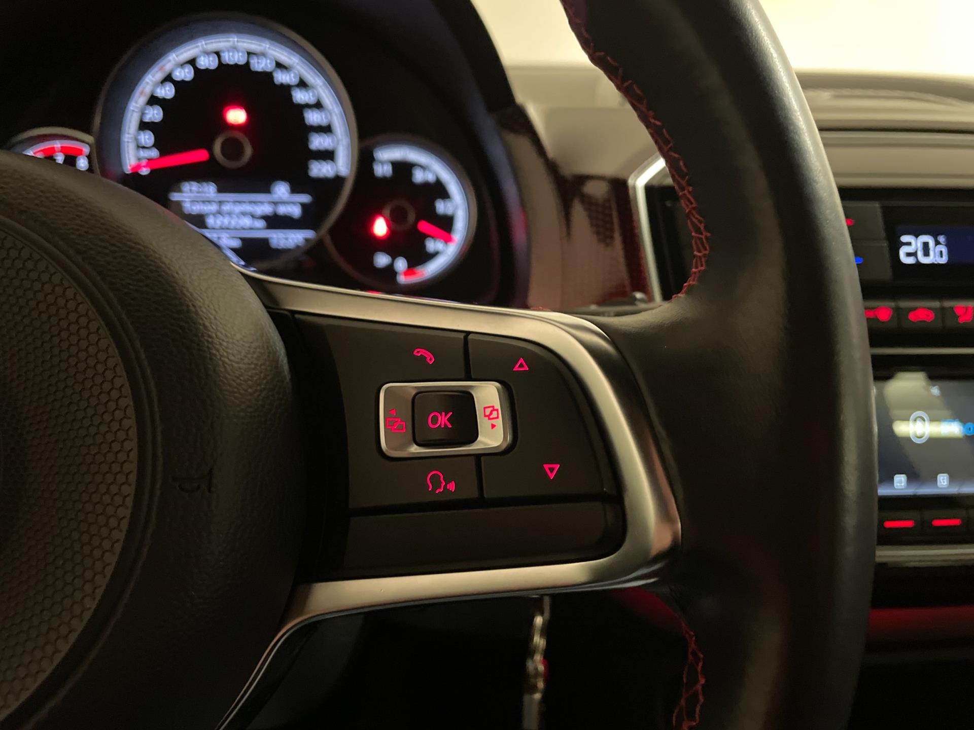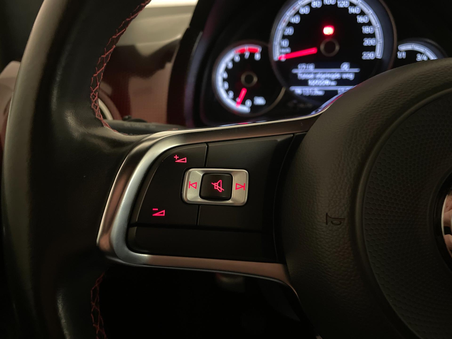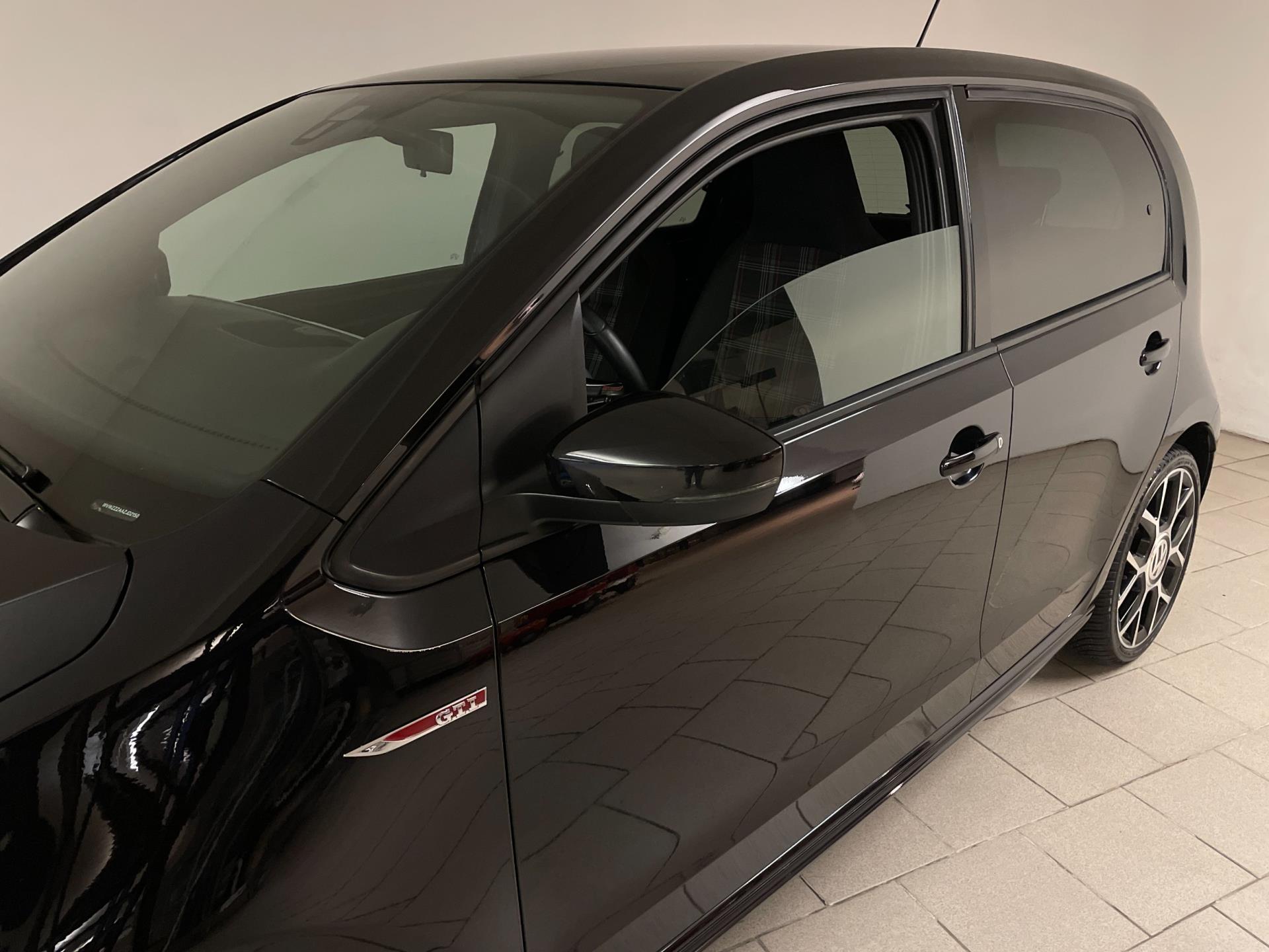 Volkswagen Up! 1.0 TSI GTI 115PK. Het ultieme sportieve gevoel krijg je met deze Up GTI, 115pk, Goede wegligging, optimale controle en een sportief geluid! Lijkt jou dit wat? Onze fotograaf heeft het maar druk gehad met deze Up GTI, Wat zijn er veel foto's gemaakt! Er zijn zoveel leuke opties op deze metallic zwarte Up GTI. Zijn sportieve opties zijn: GTI Bumpers, frontlip, achterklep spoiler, GTI Logo's, LED verlichting achter, Sportonderstel, GTI Dashboard, privacy glas, en 17inch sportvelgen. Luxe opties heeft hij ook, we proberen ze allemaal te noemen: Airco met clima, cruise control, stoelverwarming, parkeersensoren, zwarte dakhemel, regensensor en zo gaat het nog wel even door! Al die opties maken het rijden in deze Volkswagen erg lekker en dan heeft hij nog eens een 1.0 TSI 115pk sterke benzine motor. Hij is lekker snel! Zoek jij een Up? GTI? Kom dan langs in onze showroom voor deze Volkswagen Up GTI.