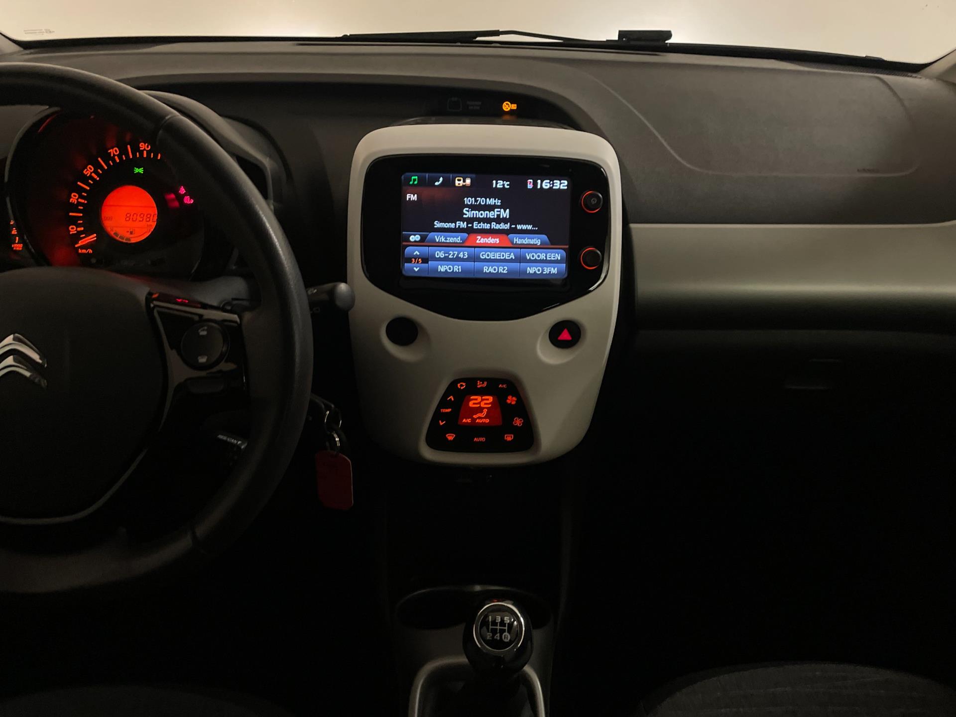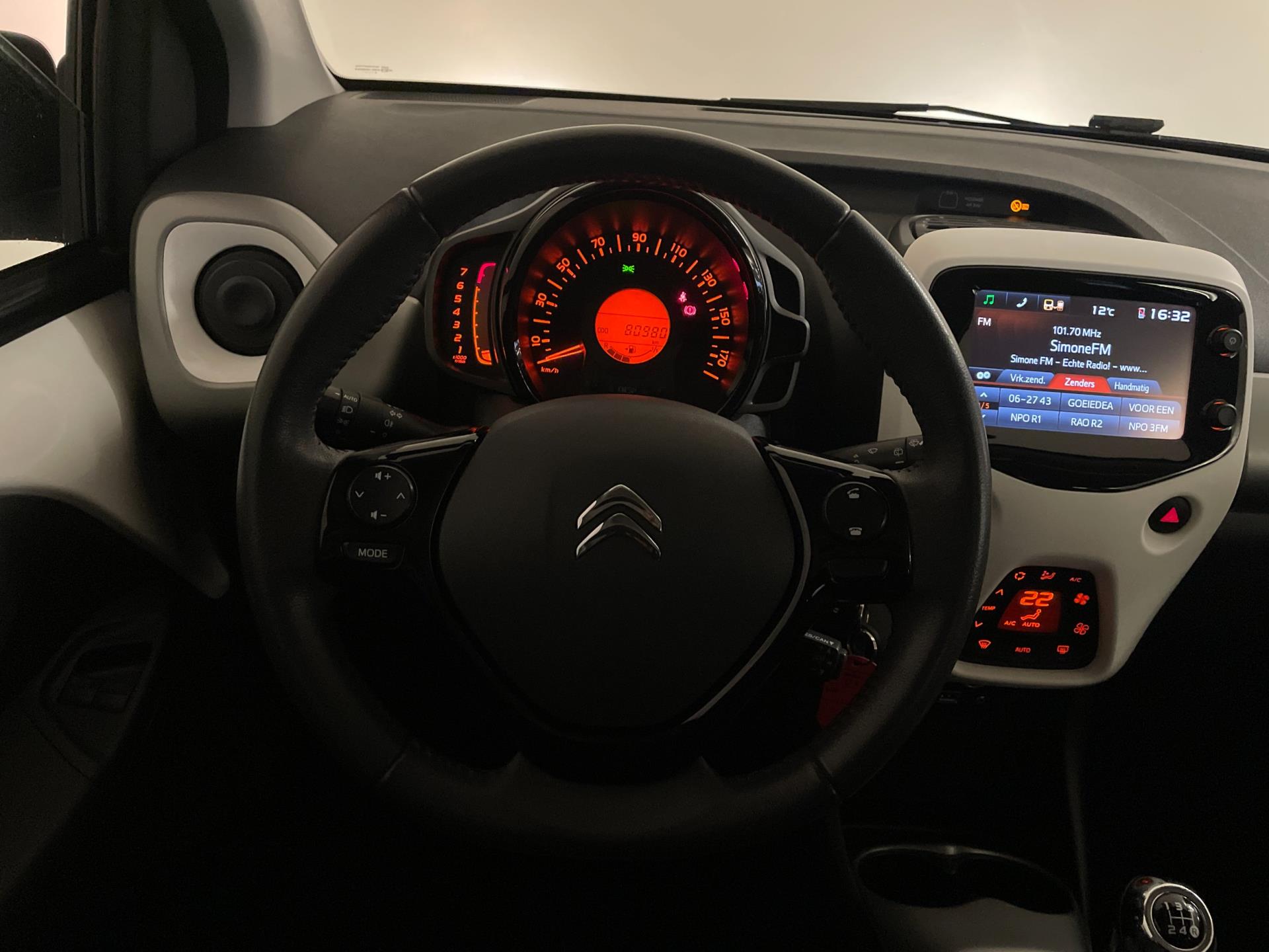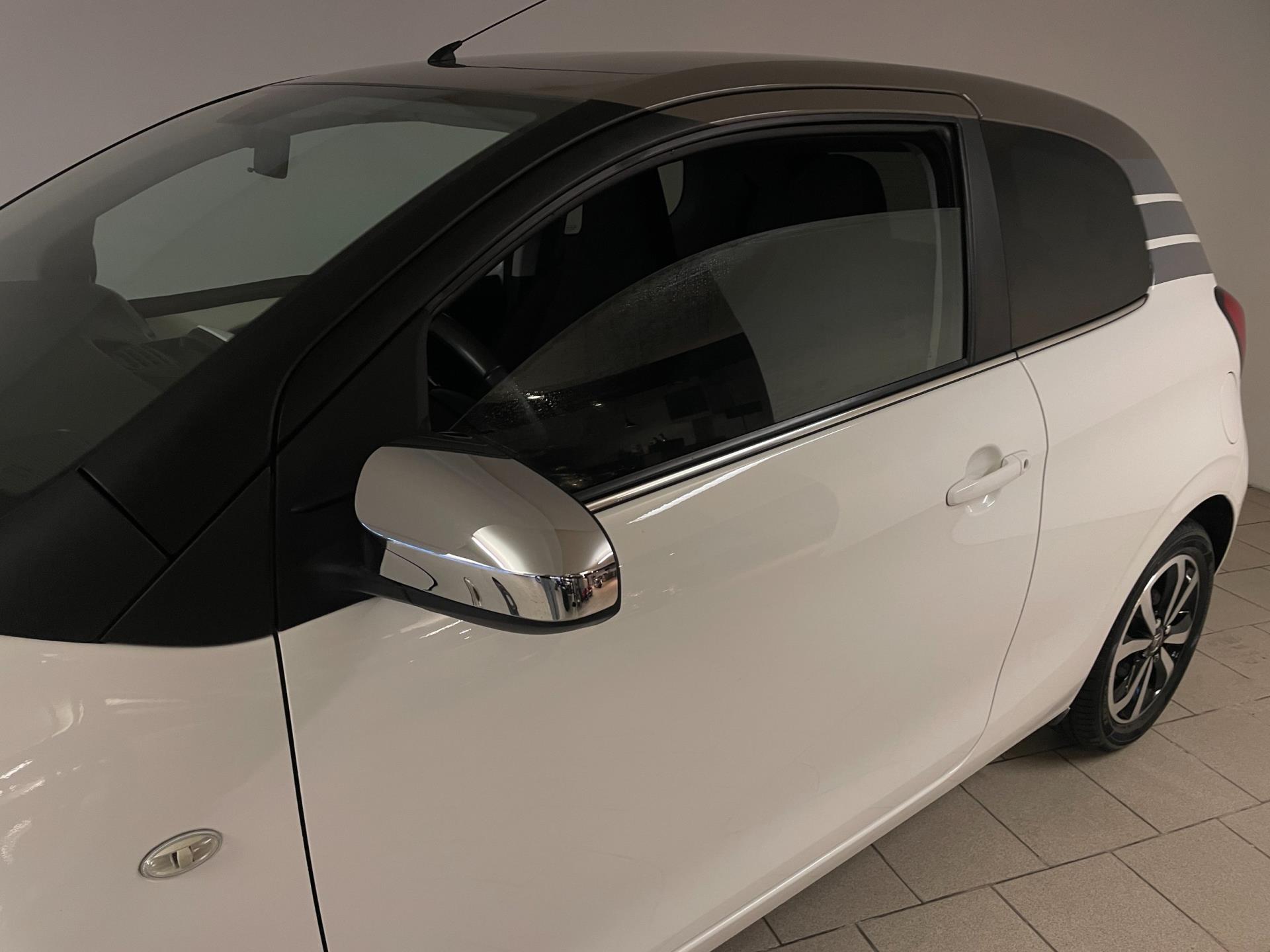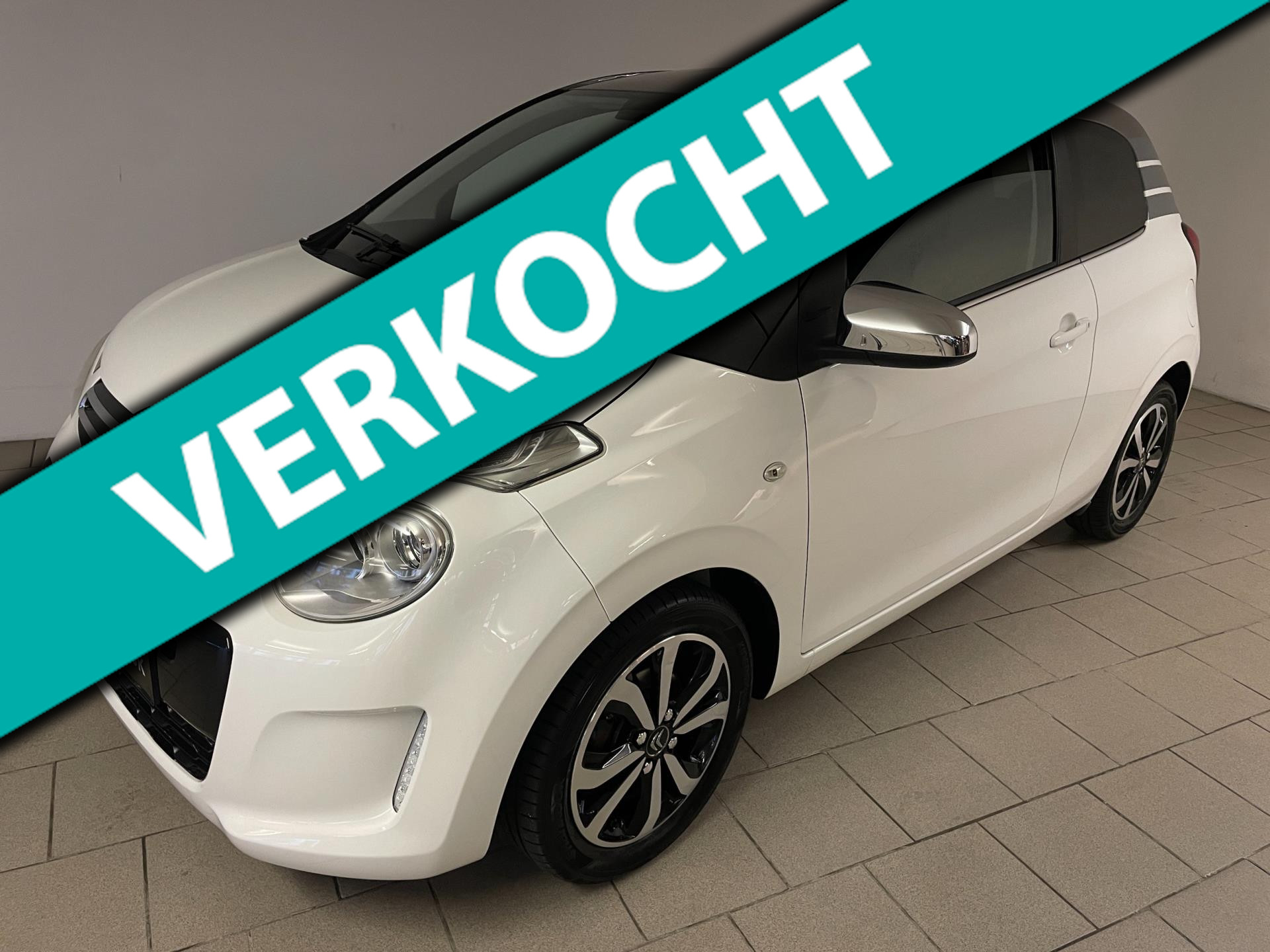 Citroën C1 1.0 e-VTI. De witte lak, het bruine dak, de lichtmetalen velgen, het privacy glas en de chroom accenten maken deze kleine Citroën tot een echte blikvanger! Navigatie, airco clima, Bluetooth, achteruitrij-camera, elektrische ramen, centrale vergrendeling, limiter, mistlampen, led dagrijverlichting, speciaal interieur en een in hoogte verstelbare bestuurdersstoel zijn een aantal van de vele opties die je kan vinden op deze C1. Je kan erg voordelig rijden met zo'n C1, de wegenbelasting is slechts 20 euro per maand, hij is erg zuinig (1:20) en de onderhoudskosten zijn zeer laag. De vorige eigenaresse is altijd erg zuinig geweest op de auto, van binnen en buiten ziet hij er nog als nieuw uit! Ben je opzoek naar een zuinige en betrouwbare auto? Hou je van een chique uiterlijk? Wil je graag een auto met veel opties? Dan heb je hem nu gevonden! Kom langs in onze showroom voor deze luxe C1!