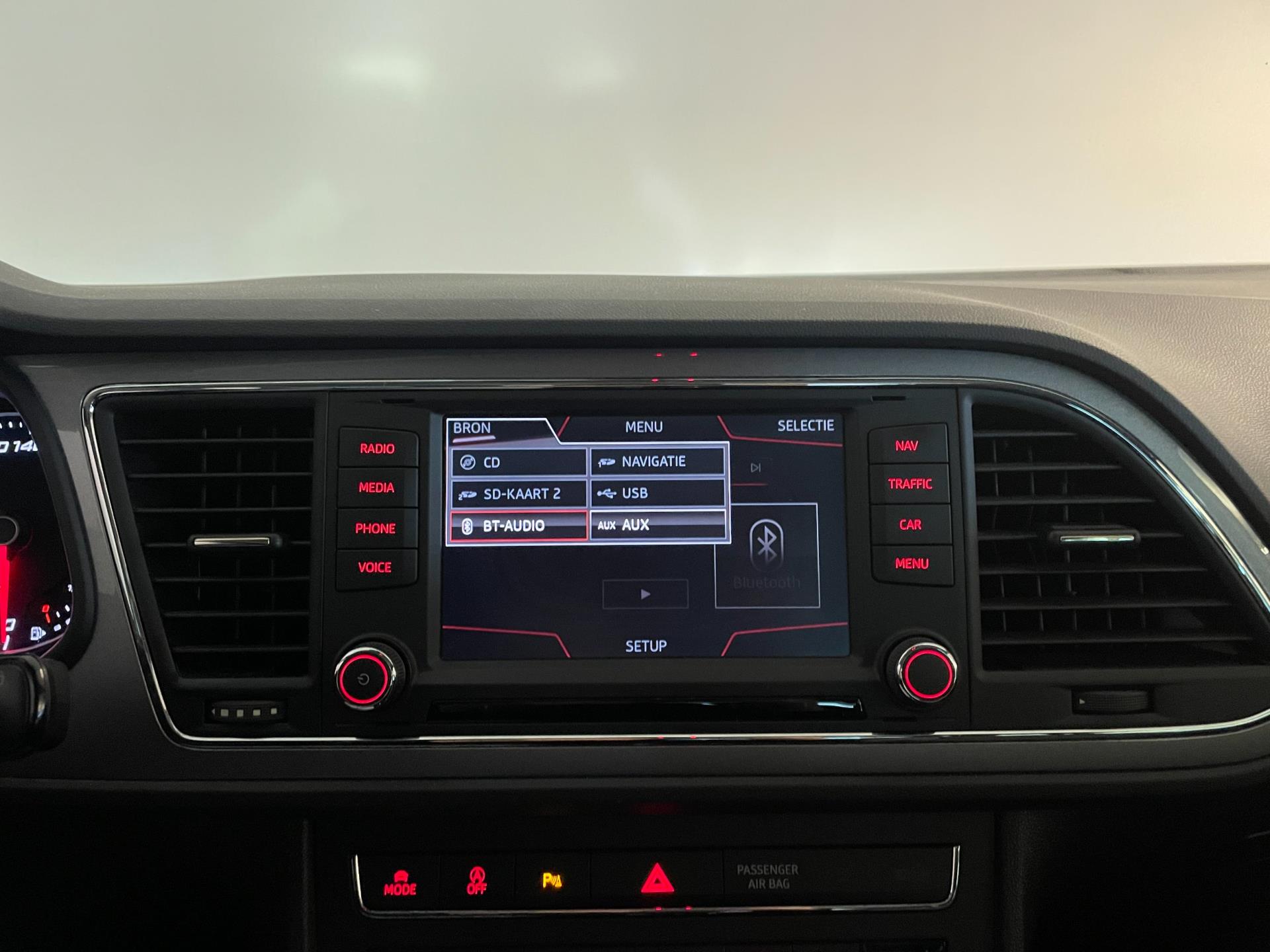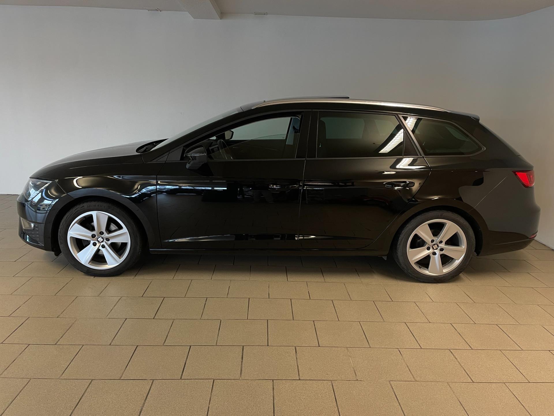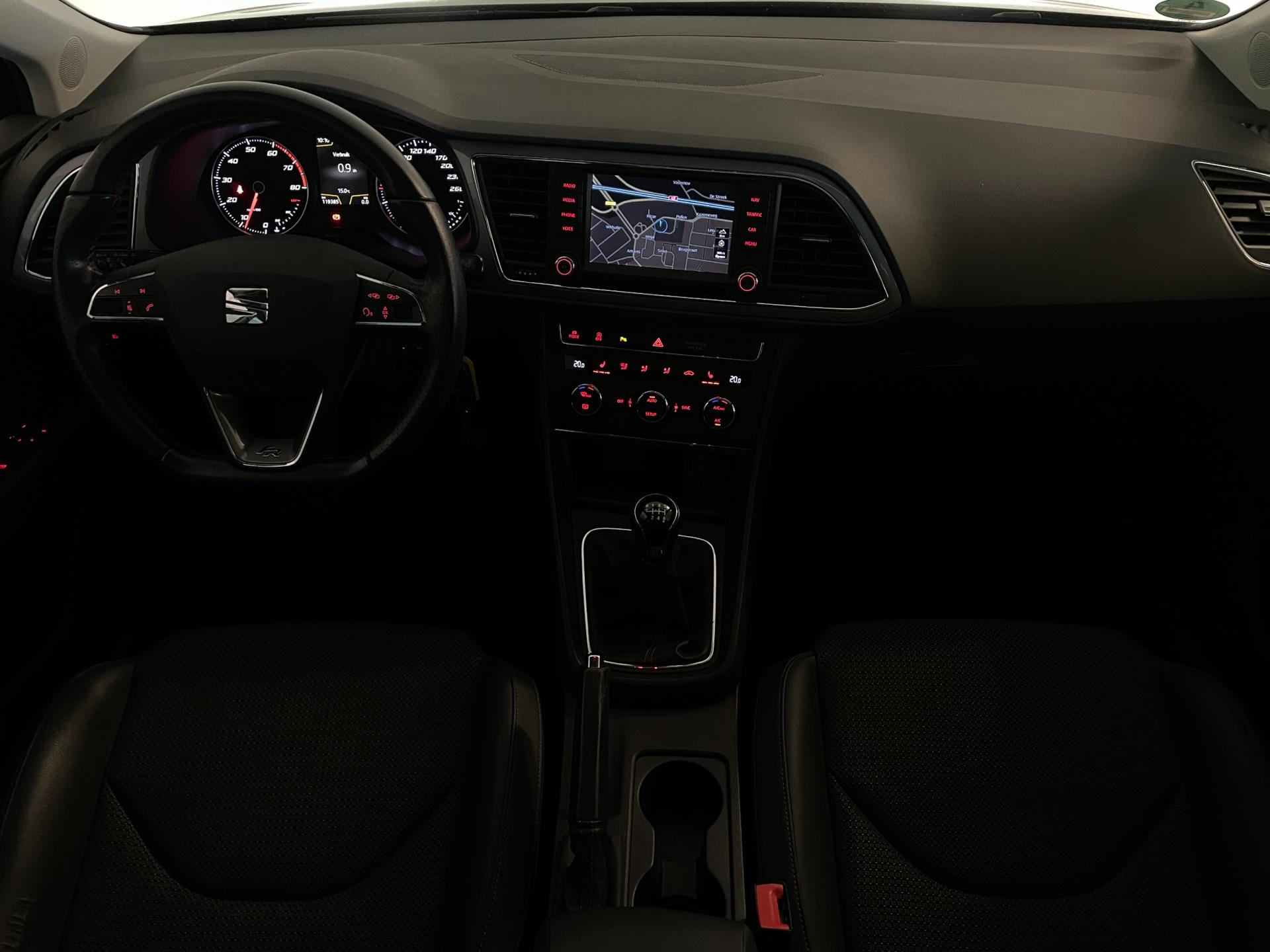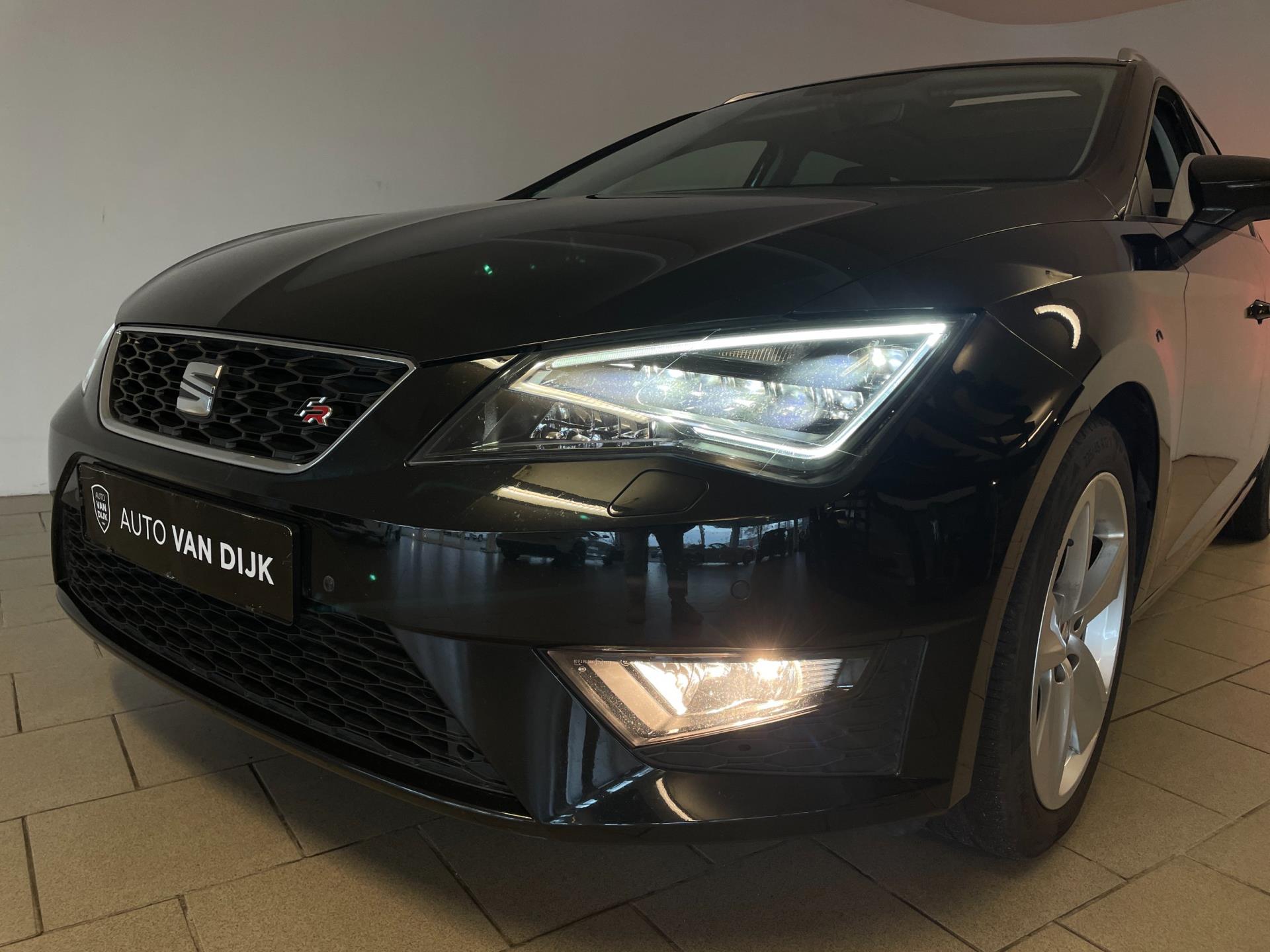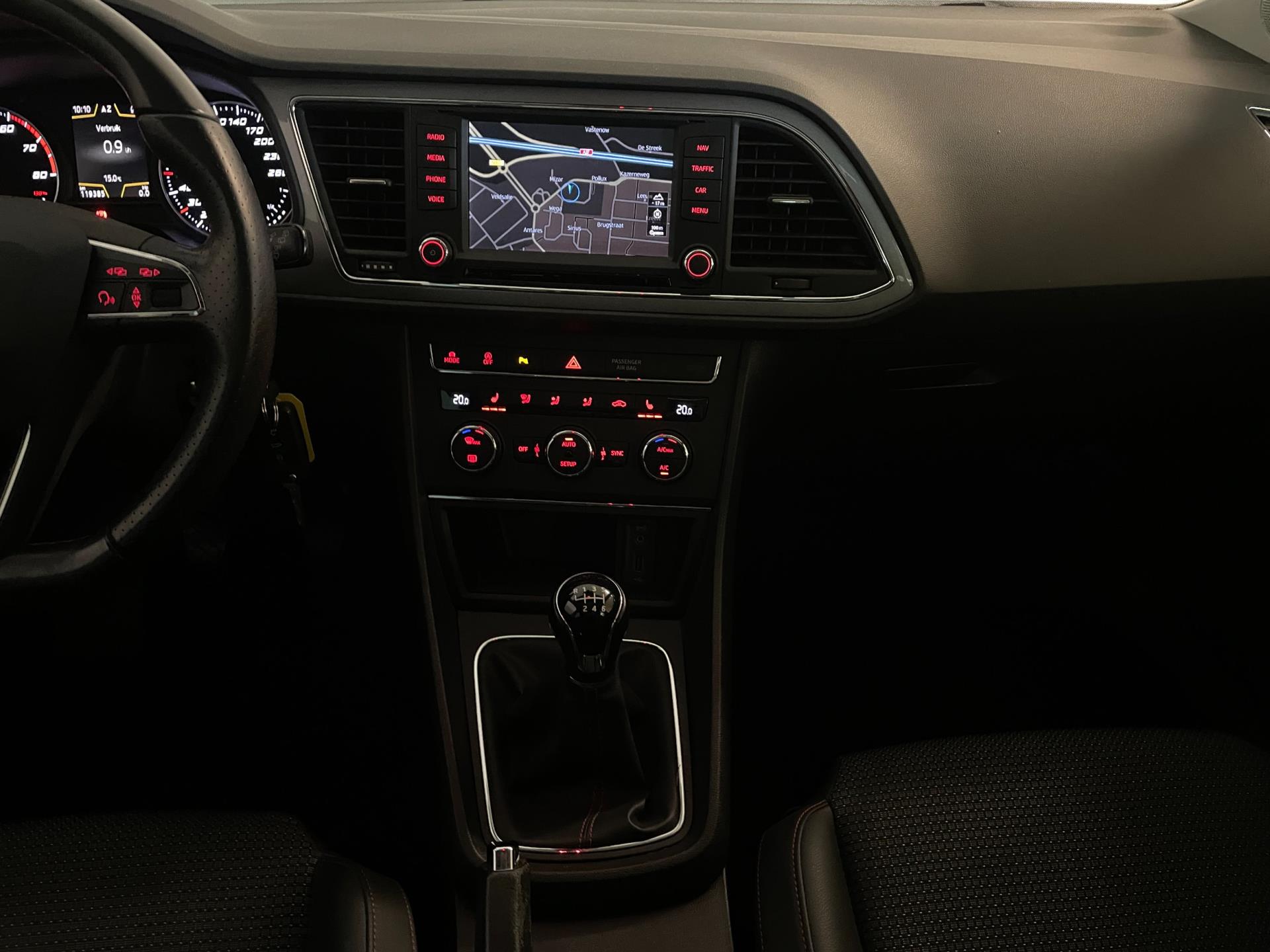 SEAT Leon ST 1.4 TSI FR 125PK. Wat een mooie auto is deze Leon ST FR! Leer-stof sport-interieur met rode stiksels, sportbumpers, LED dagrijverlichting, LED achterlichten, sportvelgen en zo gaat het nog wel even door met de vele opties op deze sportieve Seat! Sportief rijden en ook nog eens veel ruimte omdat het de ST uitvoering is! Wat een prachtige verschijning is deze Seat Leon FR en wat rijdt hij heerlijk en wat een comfort heb je door de vele opties!