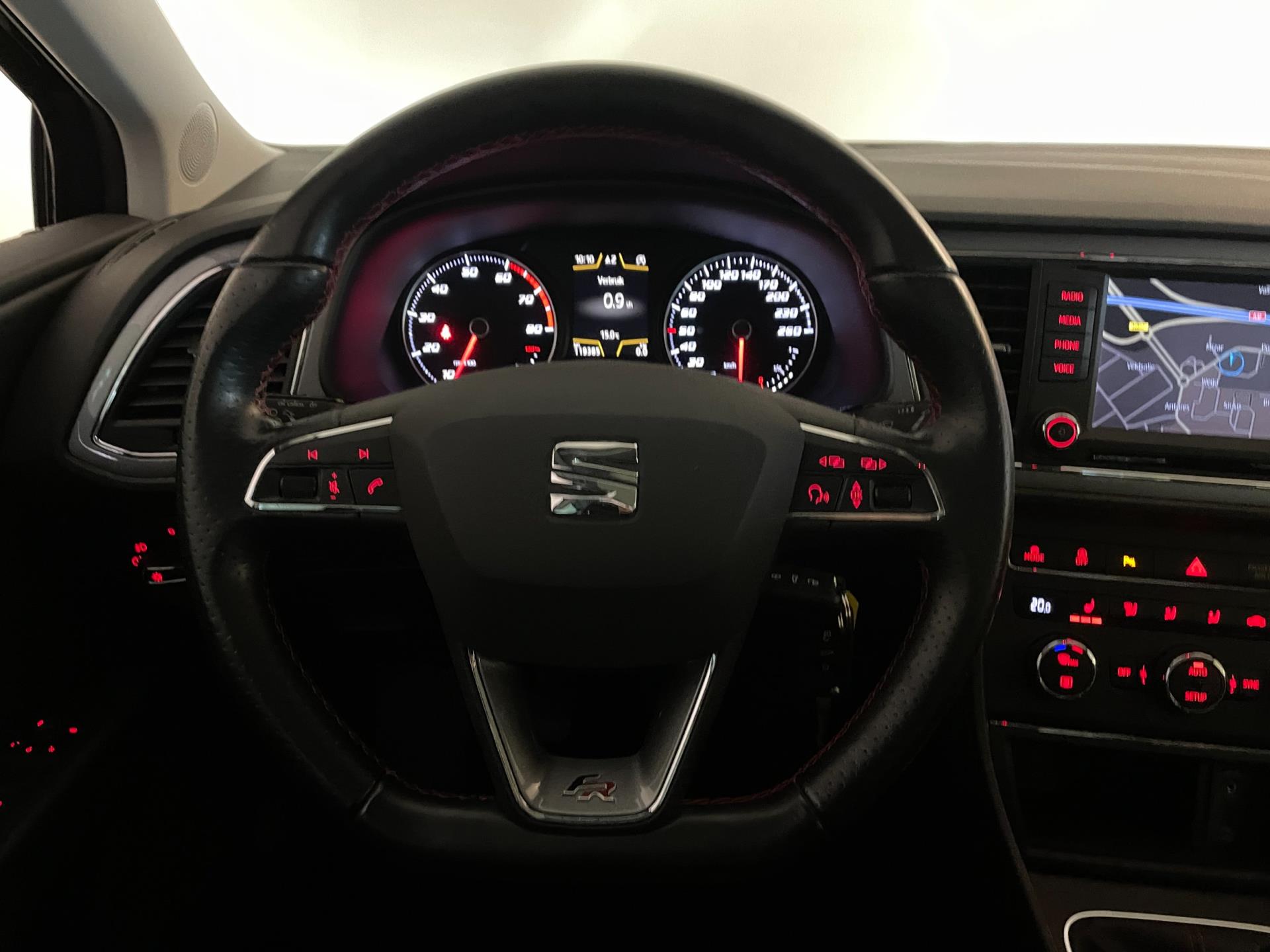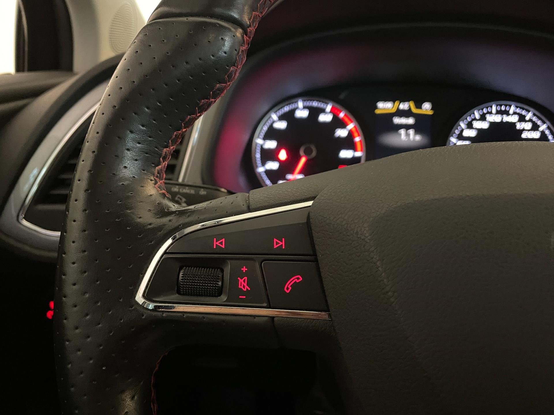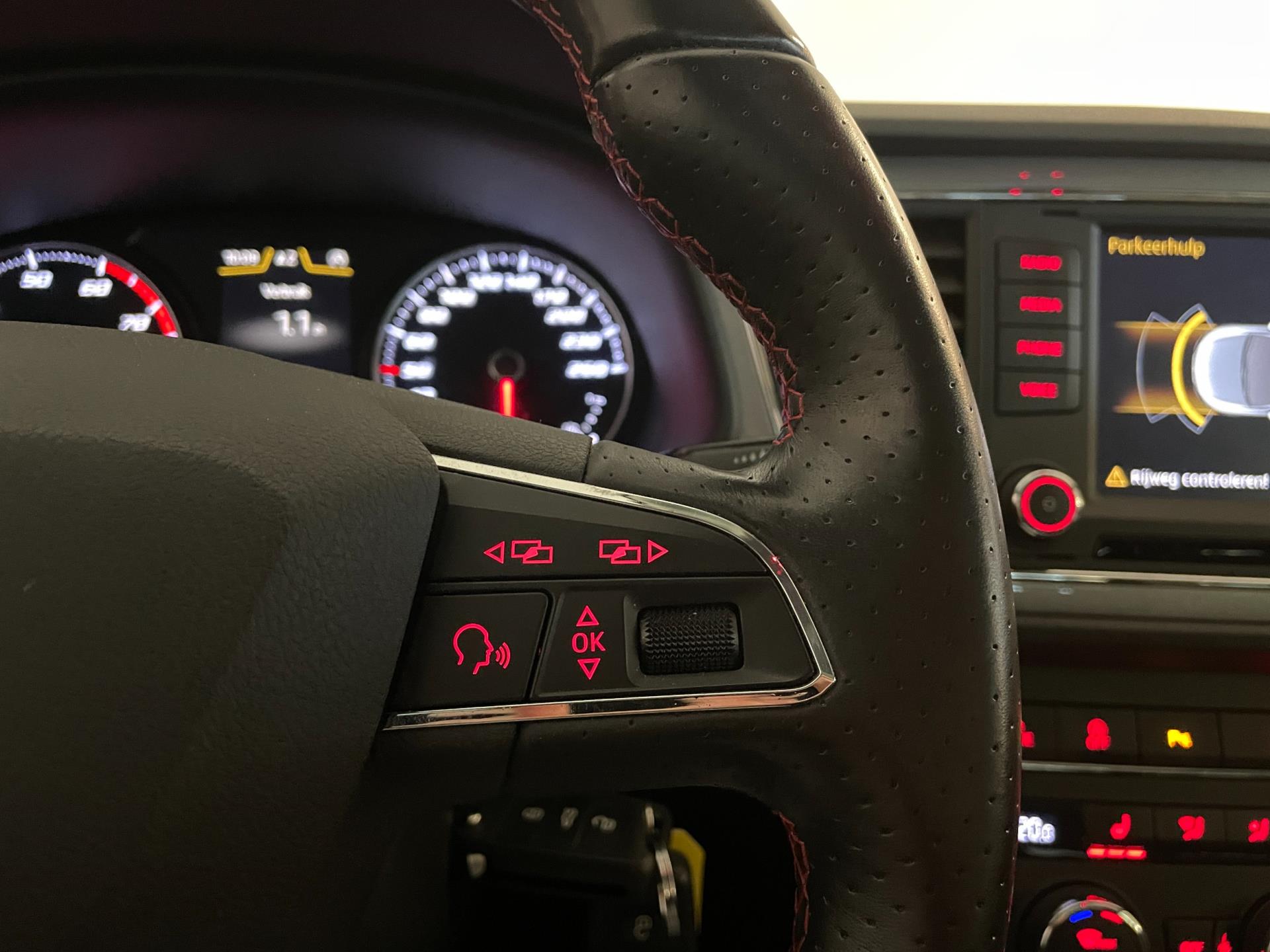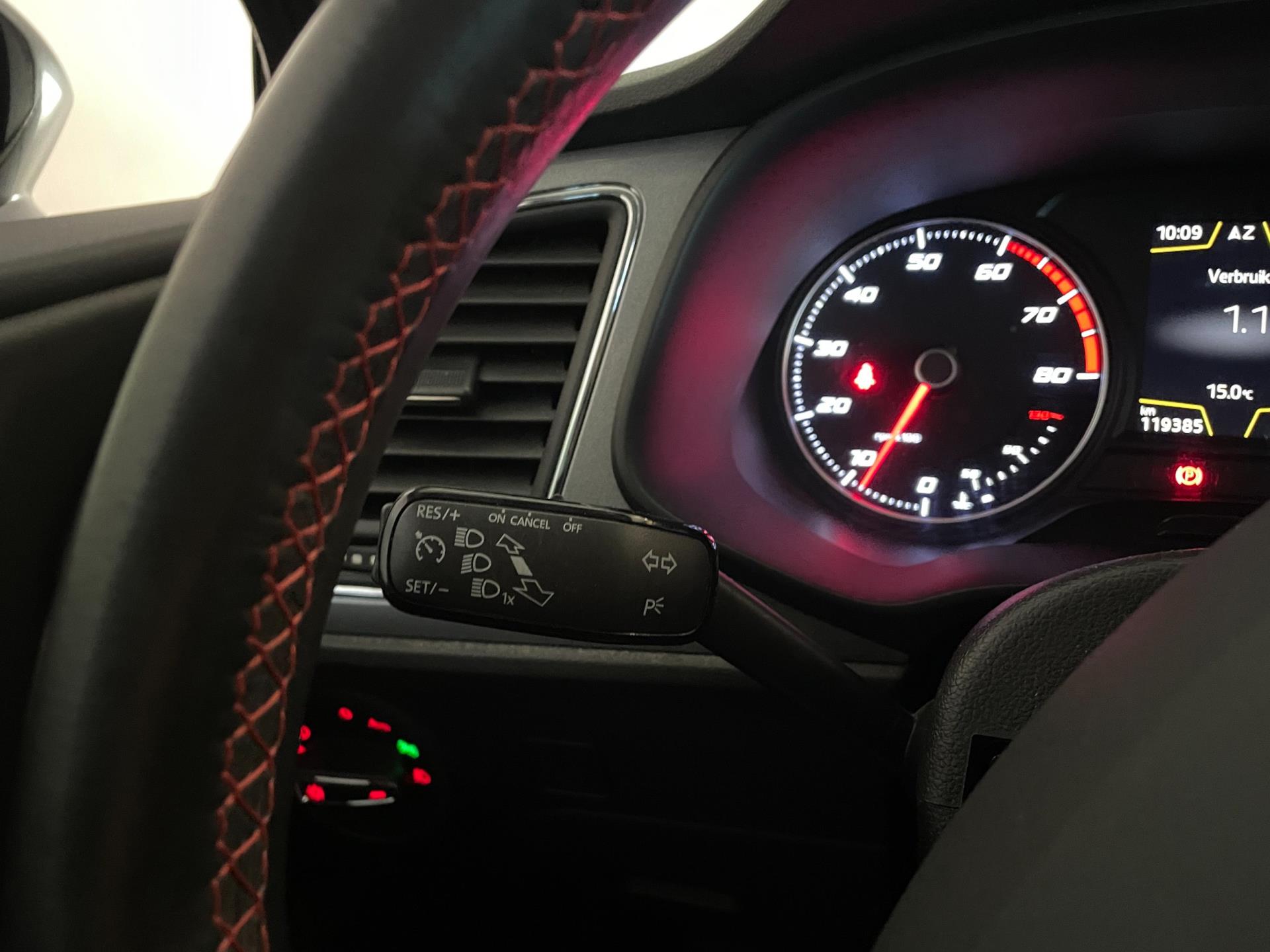 Er zijn zoveel opties op deze speciale Seat, we kunnen ze niet allemaal noemen. De meest in het oog springende en opvallende opties noemen we wel: airco met climate control, navigatie, cruise control, panorama-dak, stoelverwarming, Bluetooth carkit en mediaspeler, LED dagrijverlichting, LED verlichting achter, leer-stof sport interieur met rode accenten, sportvelgen, instelbare rijmodus van sport tot eco, multifunctioneel sportstuur, regensensor, parkeersensoren en zo gaat het nog wel even door!