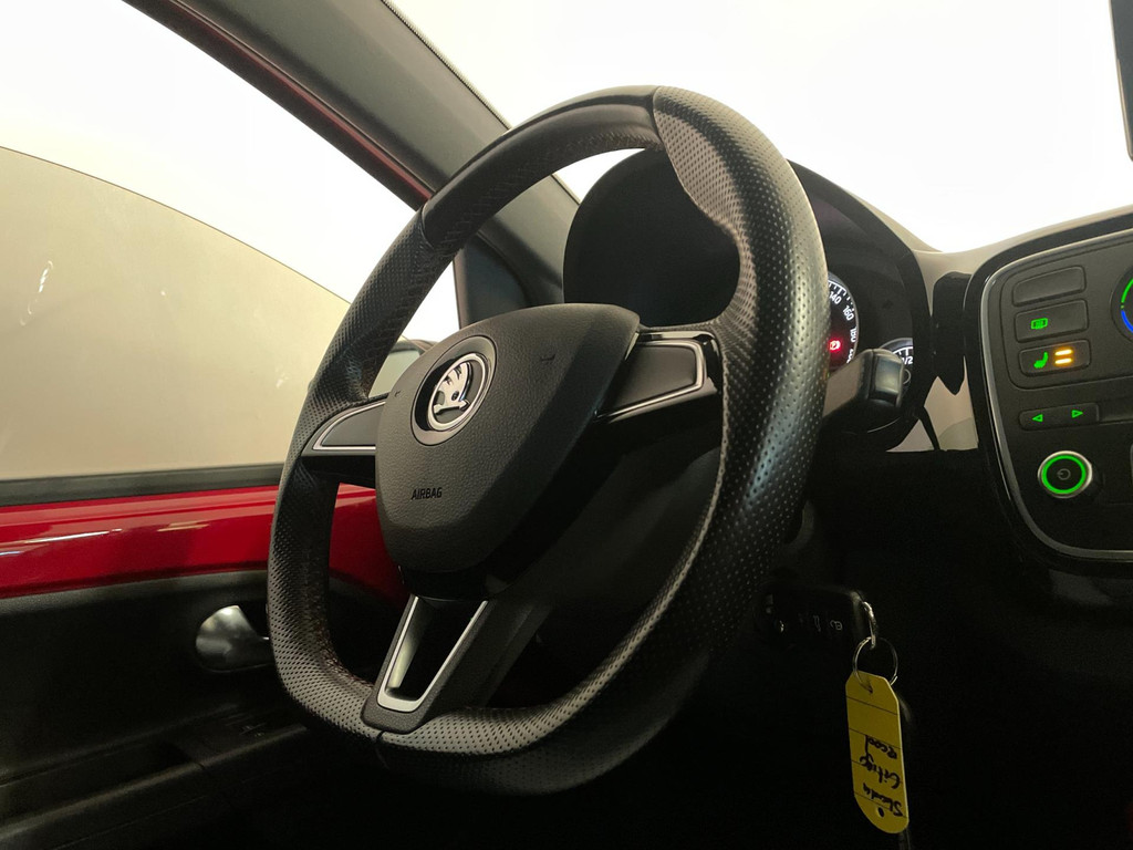 Skoda Citigo Monte-Carlo 1.0 75PK. Wat is het een plaatje deze speciale Citigo! De front-spoiler, de striping, de hoogglans zwarte accenten, achterklepspoiler, het privacyglas, de 16 inch Serpent sportvelgen, sportinterieur en de zwarte dakhemel maken geven de Citigo een sportief uiterlijk! Op de raamstijl en de instaplijsten vind je de Monte-Carlo logo's. Airco, navigatie, cruise-control, parkeersensoren, elektrische ramen, Bluetooth carkit en media-speler, sportonderstel, centrale vergrendeling, mistlampen, in hoogte verstelbare bestuurdersstoel zijn een aantal van de luxe opties die je kan vinden op de auto. Deze Citigo Monte Carlo komt uit 2015. De vorige eigenaresse is zeer zuinig geweest op de auto, van binnen en buiten is hij nog als nieuw! Ook al het onderhoud is goed bijgehouden, bij een proefrit merk je dat direct. Dit is de 75PK versie van de Citigo en die heeft nét even meer pit als de standaard 60PK versie. Je kan erg voordelig rijden met zo’n Skoda Citigo. De onderhoudskosten zijn zeer laag, de wegenbelasting is slechts 20 euro per maand en het verbruikt is 1:20. Zoek jij een compacte 5 deurs auto? Met een sportief uiterlijk? Waar je voordelig mee kunt rijden? Hou je wel van iets speciaals? Ben je gek op opties? Kom dan langs in onze showroom voor deze Skoda Citigo Monte-Carlo! Een Skoda Citigo is gelijk aan een Volkswagen Up.