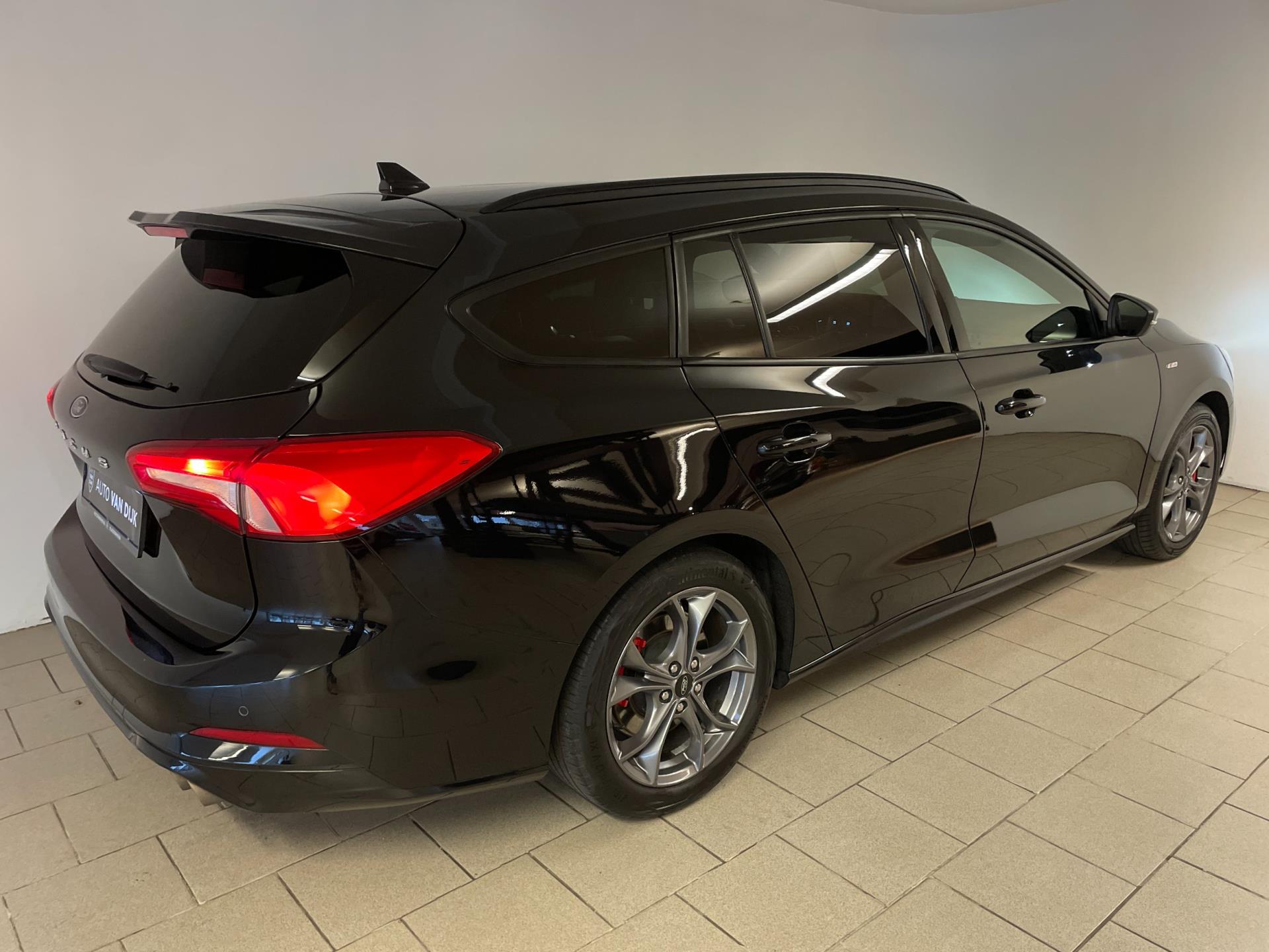Ford Focus Wagon 1.0 EcoBoost ST Line 125pk. Zoek je een ruime auto met voldoende pit en een sportieve uitstraling? Ben gek op zwart? En wil je graag veel opties? Dan heb je hem nu gevonden! Deze Ford Focus Wagon ST Line heeft het allemaal! Doordat dit de ST-Line uitvoering is heeft hij een heel sportief uiterlijk! Sportbumper voor, sportbumper achter, grote achterklep spoiler, antraciete velgen, sideskirts en een sportinterieur zijn een aantal opties waaraan je deze uitvoering kunt herkennen! De 125pk sterke turbo benzine motor geeft hem veel pit en je kan er toch ook nog steeds zuinig mee rijden. Airco met climate control, navigatie, Bluetooth, stoelverwarming, stuurverwarming, sport interieur, lederen sportstuur en zo gaat het nog wel even door met de vele opties die je kan vinden op deze sportieve Ford. Van binnen en buiten ziet de Ford er nog als nieuw uit! Nieuwsgierig geworden? Kom dan snel langs voor een proefrit!