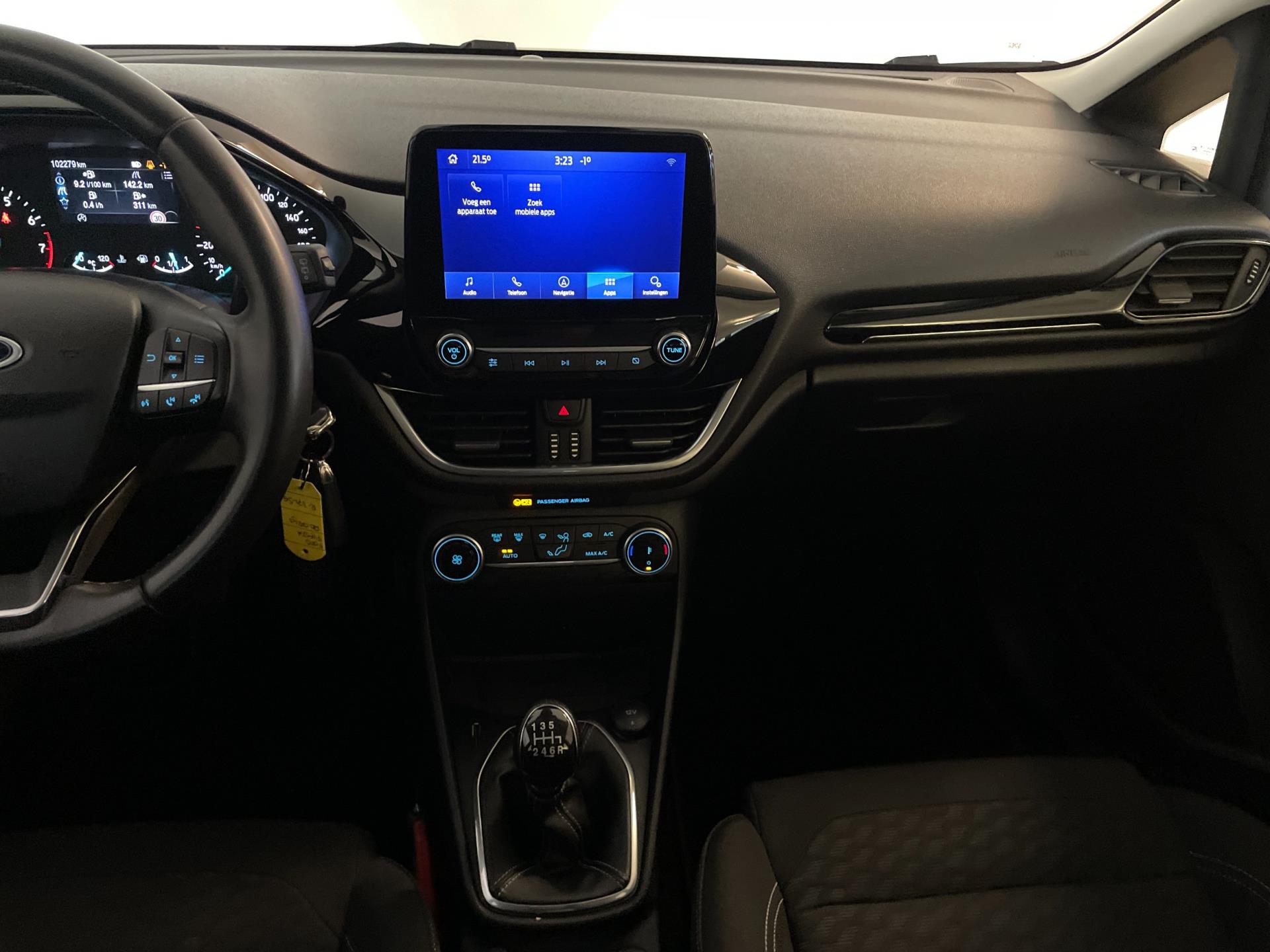 Ford Fiesta 1.0 EcoBoost Hybrid Titanium. Ben jij opzoek naar een leuke, sportieve hybride? Maar is thuisladen een probleem? Dan is deze Fiesta Mild hybrid wellicht echt iets voor jou! Deze Fiesta laad zich zelf weer op tijdens het rijden en gebruikt het om de motor te ondersteunen bij het accelereren en daardoor minder brandstof te verbruiken. Aan opties kom je bij deze Fiesta ook zeker niet te kort. Airco, navigatie, cruise control, velgen, elektrische ramen, centrale vergrendeling, Apple Carplay, Bluetooth en ga zo nog maar even door met het aantal opties! Kortom ben jij nieuwsgierig geworden naar deze zuinige en sportieve Ford Fiesta Hybride? Wacht dan niet te lang en maak snel een afspraak voor een proefrit.