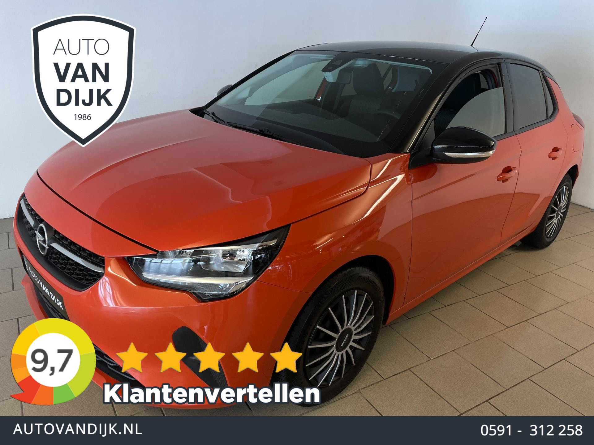 Opel Corsa 1.2 Edition. Er is weer zo'n leuk nieuw model Corsa binnen gekomen! In deze oranje metallic lak, de zwart hoogglans spiegels, het zwarte dak en de zwart hoogglans spoiler heeft een erg mooi uiterlijk gekregen! Het privacy glas maakt hem helemaal af! Airco, navigatie via app, cruise-control, parkeersensoren, Apple Carplay, Android Auto, Bluetooth, radiobediening op het stuur, stuurverwarming, stoelverwarming zijn een aantal van de vele opties die je kan vinden op deze sportieve Corsa. Onder de motorkap zit een zuinige 1.2 benzine motor, die geeft de Corsa voldoende pit en je kan er ook nog eens zuinig mee rijden! Hij is uit 2020 en er staat nog maar 78.000 kilometer op de teller. De vorige eigenaar is er altijd erg zuinig op geweest, van binnen en buiten ziet hij er nog als nieuw uit! Nieuwsgierig geworden? Zin in een proefrit? Maak dan snel een afspraak om langs te komen in de showroom voor deze Opel Corsa 1.2 Edition!