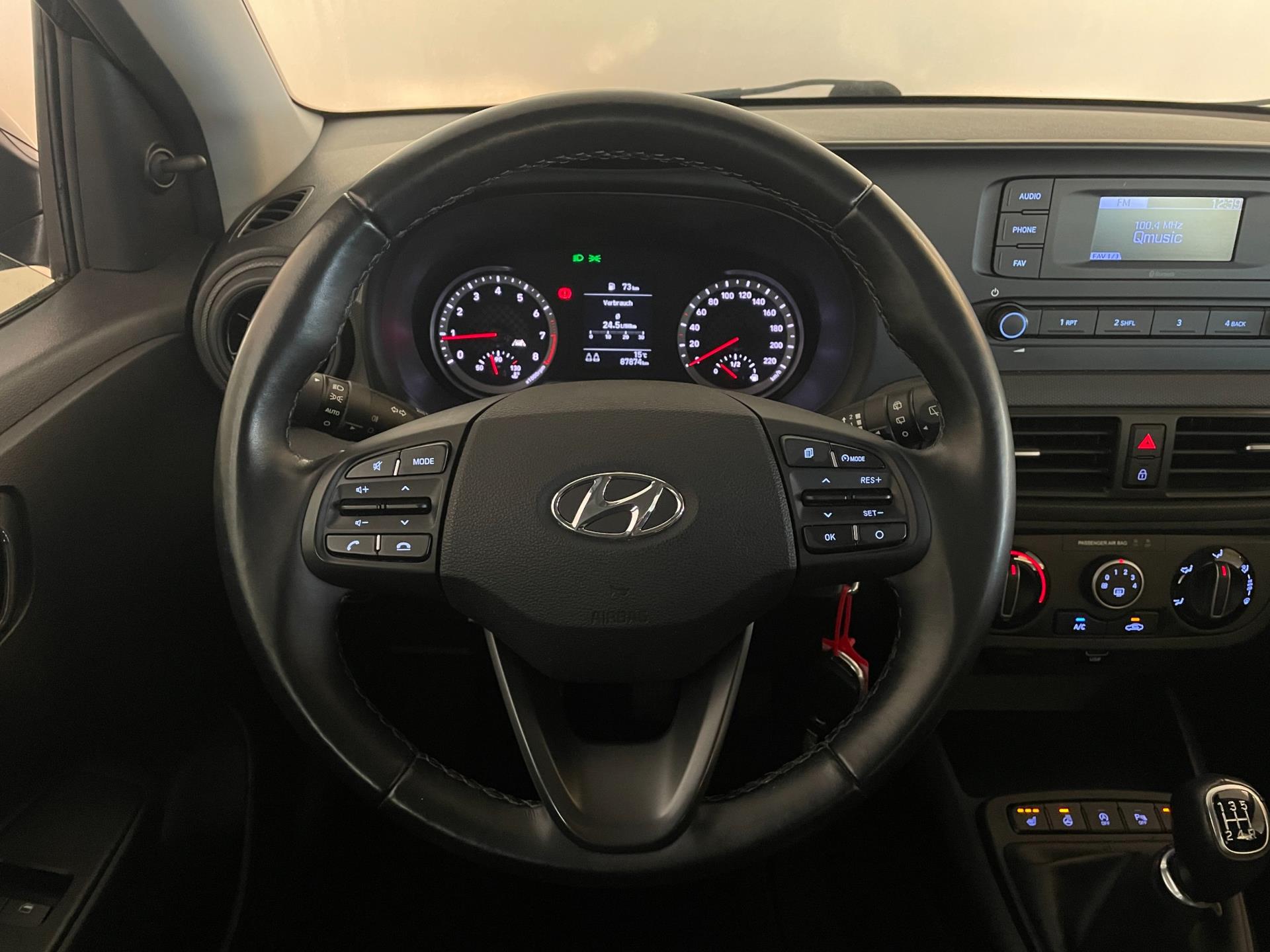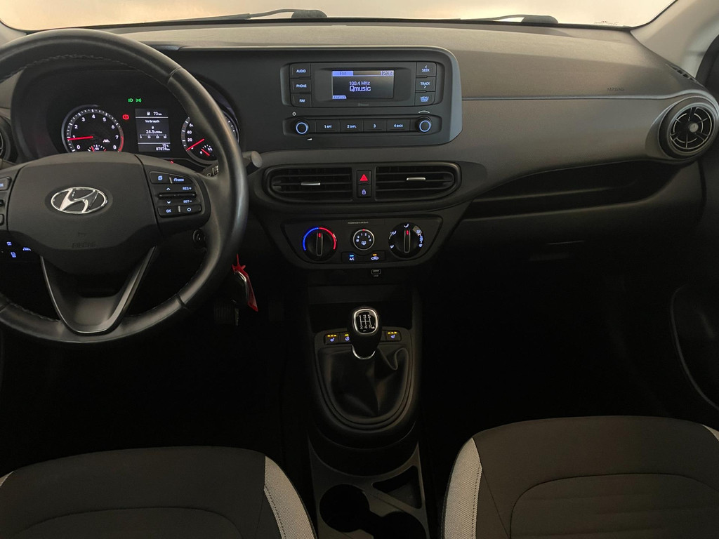 Hyundai i10 1.0i Comfort. Zoek je een compacte 5-deurs auto? Wil je graag een hoogzitter, met een comfortabel in- en uitstap? Met dé juiste opties, zoals airco en cruise-control? Dan heb je hem nu gevonden! Deze Hyundai i10 is compact, zit hoog en zit vol met leuke opties! De zwarte metallic lak staat hem erg goed en het antraciete interieur maakt hem helemaal af! Dit is het facelift model en daarom heeft een sportiever uiterlijk gekregen door zijn vernieuwde bumpers. Airco, cruise-control, stoelverwarming, stuurverwarming, radiobediening op het stuur, Bluetooth carkit, in hoogte verstelbare stoel, USB aansluiting, elektrische ramen zijn een aantal van de vele opties. De auto heeft zeer lage maandlasten (wegenbelasting slechts 25 euro per maand) en is zuinig in gebruik. Er staat nog maar 87.181 kilometer op de teller en hij is van binnen en buiten nog als nieuw! De vorige eigenaar is er altijd erg zuinig op geweest! Nieuwsgierig geworden? Maak dan snel een afspraak voor een proefrit in deze mooie Hyundai I10!