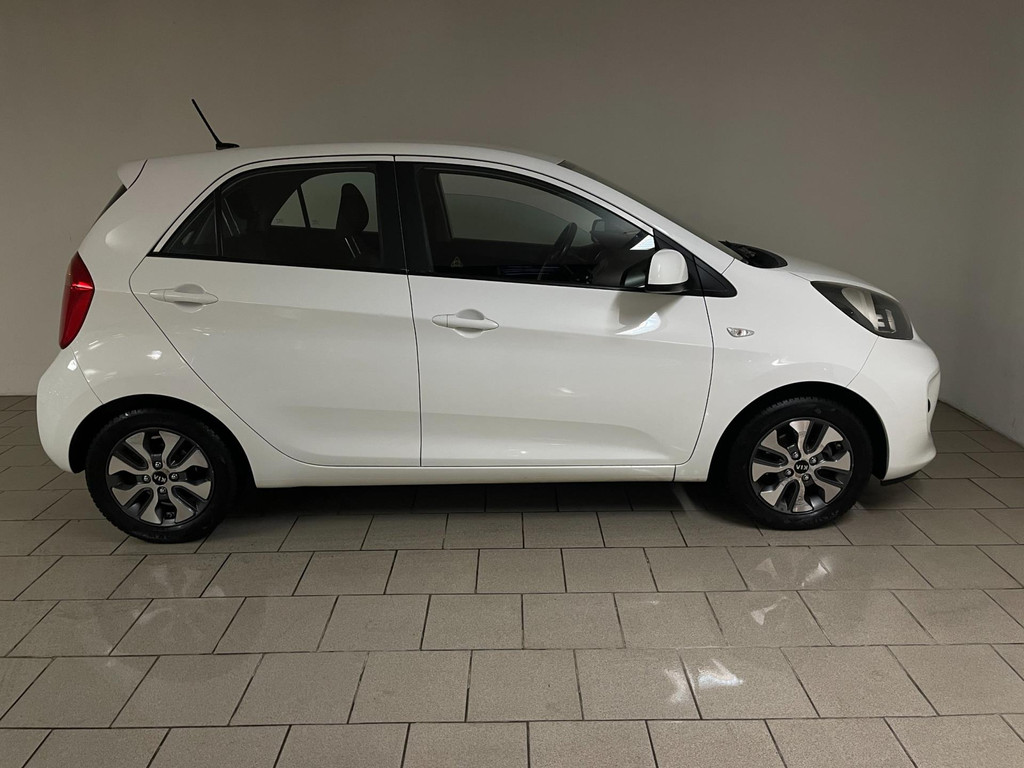 Kia Picanto 1.0 CVVT EconomyPlusLine. Deze 5 deurs Kia Picanto heeft leuke opties zoals: airco, elektrische ramen, witte lak, centrale deurvergrendeling, lichtmetalen velgen, mistlampen en zo gaat het nog wel even door. De witte lak geeft hem samen met de sportvelgen, zijn sportieve uiterlijk! Hij is uit 2016 en er staat 139.000 kilometer op de teller. Van binnen en buiten ziet hij er nog als nieuw uit. Hij rijdt ook nog als nieuw, bij een proefrit merk je dit meteen. Zoek jij een kleine 5 deurs auto? Wil je graag één met een lage kilometerstand? Met dé juiste opties zoals een airco? Kom dan langs in onze showroom voor deze Kia Picanto!
