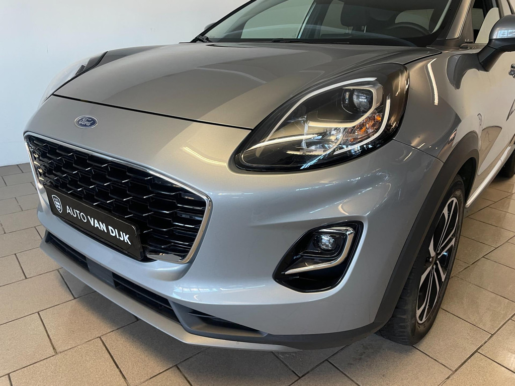 Ford Puma 1.0 EcoBoost Titanium. Ben jij opzoek naar een compacte hoogzitter? Ben jij gek op opties en is een hele lage kilometerstand voor jou belangrijk? Zoek dan vooral niet verder, want je hebt hem nu gevonden! De zwart met chroom lichtmetalen velgen in combinatie met het privacy glas en verbrede wielranden geven deze Puma een stoer uiterlijk! Aan opties is ook zeker geen gebrek bij deze Ford. Airco, navigatie, Bluetooth, elektrische ramen, centrale vergrendeling, Apple Carplay en ga zo nog maar even door! Zijn 1.0 EcoBoost motor levert maar liefst 125pk. Daar in tegen kan je ook heel zuinig rijden met de Puma. Dus voor ieders wat wils! Ben jij nieuwsgierig geworden en heb jij zin in een proefrit? Wacht dan niet te lang en kom langs voor deze Ford Puma!