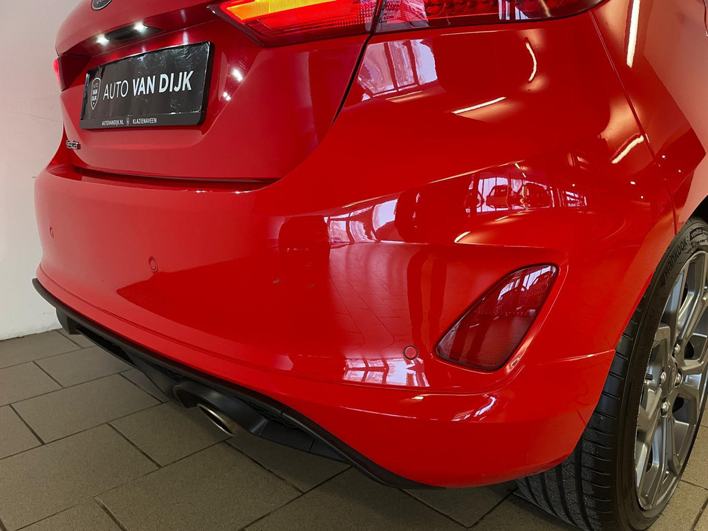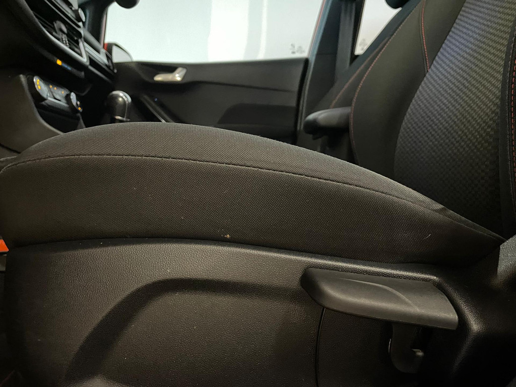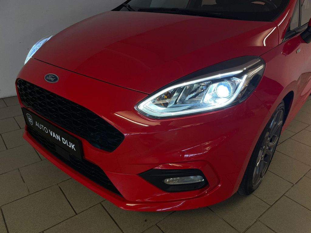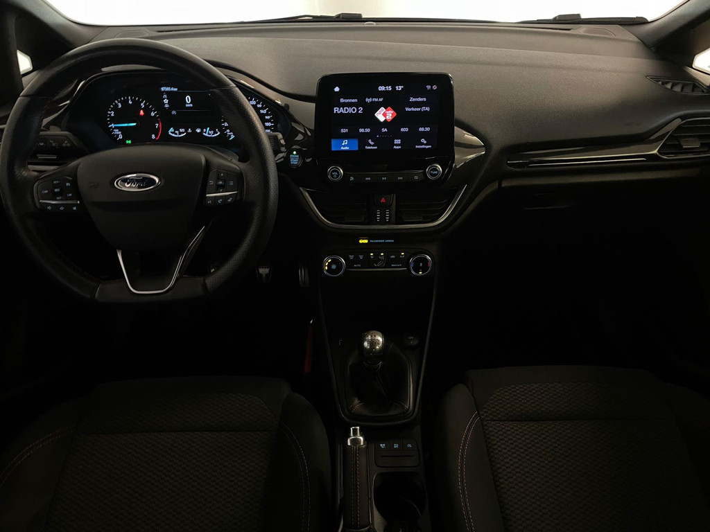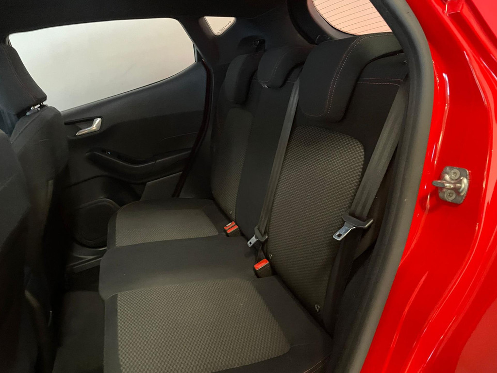 Ford Fiesta 1.0 EcoBoost ST Line 95PK. Zoek een compacte auto met veel pit en een sportieve uitstraling? Ben gek op rood? En wil je graag veel opties? Dan heb je hem nu gevonden! Deze Ford Fiesta ST Line heeft het allemaal! Doordat dit de ST-Line uitvoering is heeft hij een heel sportief uiterlijk! Sportbumper voor, sportbumper achter, grote achterklep spoiler, antraciete velgen, sideskirts en een sportinterieur zijn een aantal opties waaraan je deze uitvoering kunt herkennen! De 95pk sterke benzine motor geeft hem veel pit en je kan er toch ook nog steeds zuinig mee rijden. Airco met climate control, navigatie, Bluetooth, privacy glas, sport interieur, lederen sportstuur en zo gaat het nog wel even door met de vele opties die je kan vinden op deze sportieve Ford. Van binnen en buiten ziet de Ford er nog als nieuw uit! Nieuwsgierig geworden? Kom dan snel langs voor een proefrit!