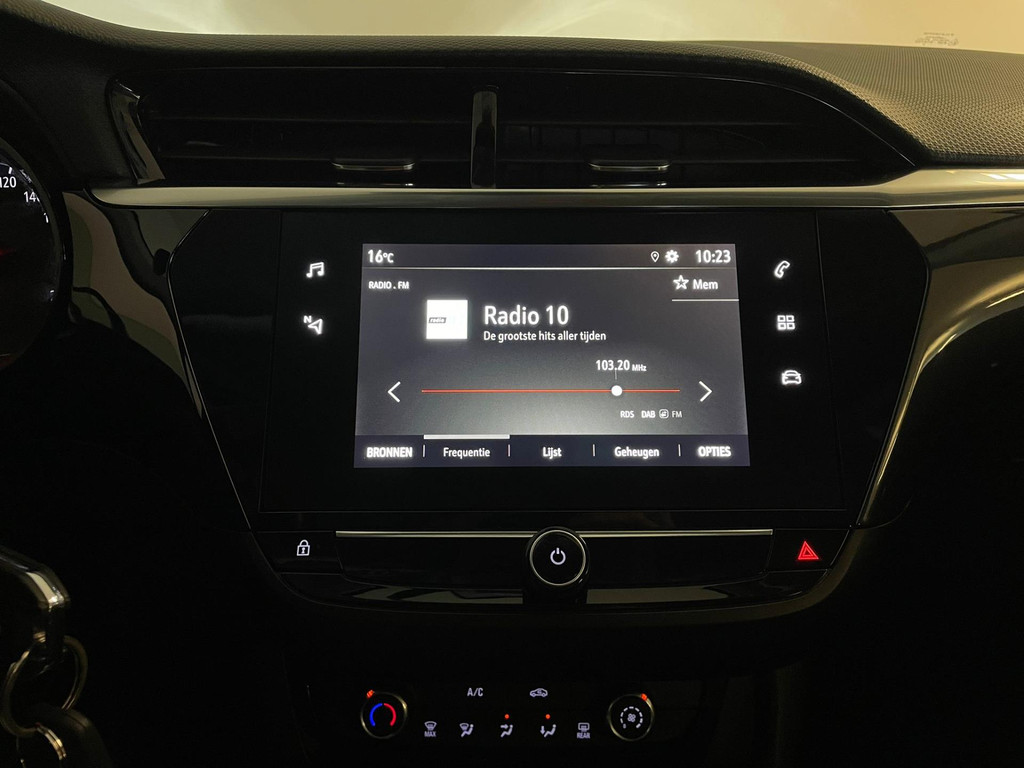 Opel Corsa 1.2 Elegance AUTOMAAT 100pk. Er is weer zo'n leuk nieuw model Corsa binnen gekomen! Deze keer in een zwart metallic lak, de Elegance uitvoering en de 100 pk versie! Deze speciale Corsa heeft echt alles mee! De chroom details, sportvelgen, speciale koplampen en de dakspoiler zorgen voor zijn sportieve uiterlijk! lederen stuurwiel! En dan de opties! Dat zijn er veel! Airco, navigatie, cruise-control, Apple Carplay, Android Auto, Bluetooth, radiobediening op het stuur zijn een aantal van de vele opties die je kan vinden op deze sportieve Corsa. Onder de motorkap zit een zuinige 1.2 benzine motor, dit is de 100 PK versie. Deze Corsa heeft extra pit en je kan er ook nog eens zuinig mee rijden! Hij is uit 2020 en er staat nog maar 70.000 kilometer op de teller. De vorige eigenaar is er altijd erg zuinig op geweest, van binnen en buiten ziet hij er nog als nieuw uit! Nieuwsgierig geworden? Zin in een proefrit? Maak dan snel een afspraak om langs te komen in de showroom voor deze 100pk sterke Opel Corsa 1.2 Elegance AUTOMAAT!
