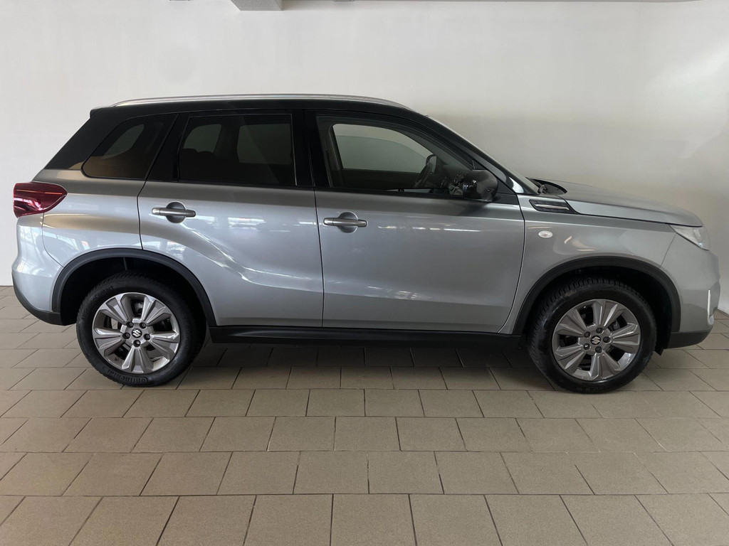 Suzuki Vitara 1.4 Boosterjet Select. We hebben weer zo'n fijne hoogzitter binnen gekregen. Ben jij opzoek naar een hoogzitter maar wil jij niet de hoge vast lasten van een hoogzitter? Zoek jij een auto met veel leuke opties? Zoek dan niet verder! Je hebt hem nu gevonden! Airco, Bluetooth, multifunctioneel stuur, stoelverwarming, cruise control, limiter, lichtmetalen velgen en zo gaat het nog wel even door met het aantal opties die je zult vinden op deze Vitara. De grijze lak in combinatie met de chroom accenten, antraciete velgen en privacyglas geven hem een luxe uitstraling. De dakreling en de moderne belijning van de carrosserie maken het helemaal af! Onder de motorkap vind je de turbo benzine motor, deze maakt het rijden in deze Suzuki Vitara tot een waar genot! Ruim voldoende pit en je kan er ook nog eens erg zuinig mee rijden! De vorige eigenaren zijn er altijd erg zuinig op geweest. En dat is te zien. Van binnen en buiten ziet hij er nog als nieuw uit! Nieuwsgierig geworden naar deze Suzuki Vitara? Wacht dan niet te lang en kom langs in onze showroom voor deze Suzuki Vitara!