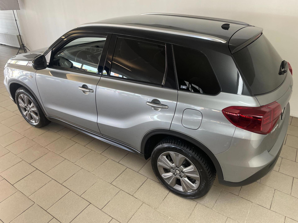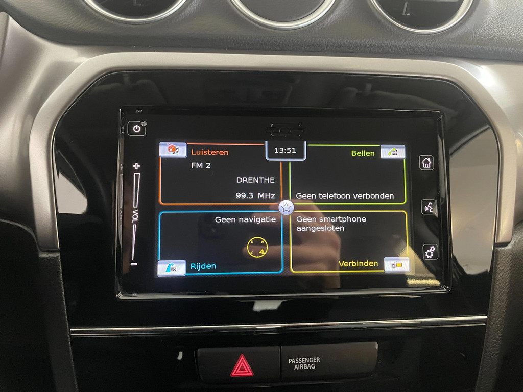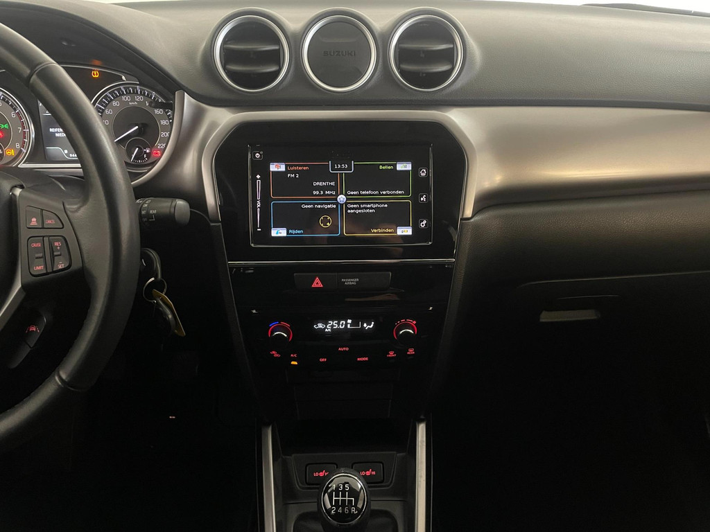 Suzuki Vitara 1.4 Boosterjet Select. We hebben weer zo'n fijne hoogzitter binnen gekregen. Ben jij opzoek naar een hoogzitter maar wil jij niet de hoge vast lasten van een hoogzitter? Zoek jij een auto met veel leuke opties? Zoek dan niet verder! Je hebt hem nu gevonden! Airco, Bluetooth, multifunctioneel stuur, stoelverwarming, cruise control, limiter, lichtmetalen velgen en zo gaat het nog wel even door met het aantal opties die je zult vinden op deze Vitara. De grijze lak in combinatie met de chroom accenten, antraciete velgen en privacyglas geven hem een luxe uitstraling. De dakreling en de moderne belijning van de carrosserie maken het helemaal af! Onder de motorkap vind je de turbo benzine motor, deze maakt het rijden in deze Suzuki Vitara tot een waar genot! Ruim voldoende pit en je kan er ook nog eens erg zuinig mee rijden! De vorige eigenaren zijn er altijd erg zuinig op geweest. En dat is te zien. Van binnen en buiten ziet hij er nog als nieuw uit! Nieuwsgierig geworden naar deze Suzuki Vitara? Wacht dan niet te lang en kom langs in onze showroom voor deze Suzuki Vitara!