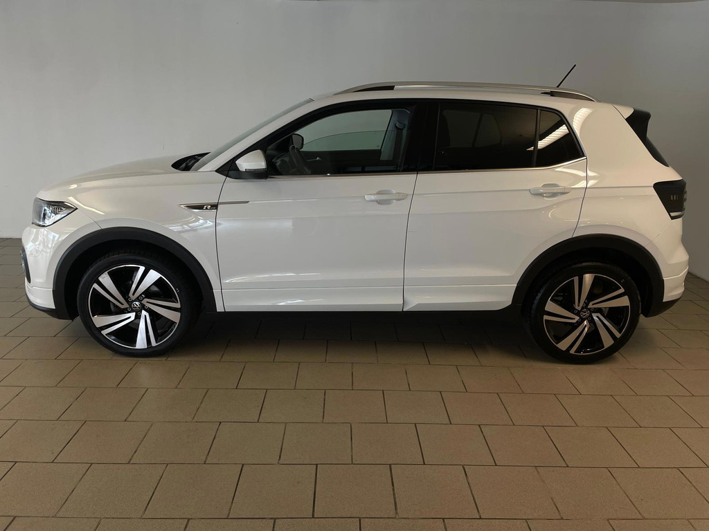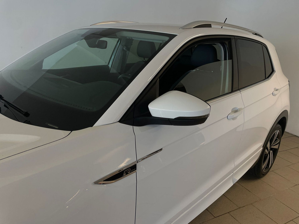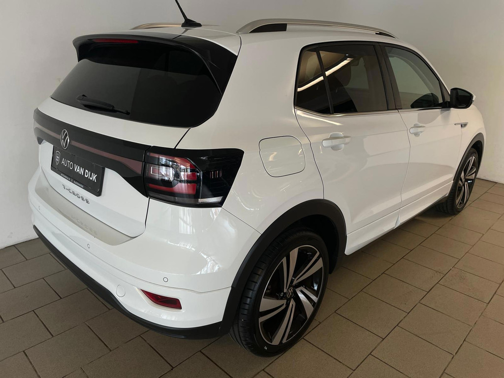 Volkswagen T-Cross 1.0 TSI R Line. De Sport uitvoering van de T-Cross kom je niet alle dagen tegen en deze heeft ook nog eens een R-Line exterieur. Het geeft hem een extra sportief uiterlijk. Een T-Cross R-Line heeft: een bredere R-Line bumper voor, R-Line bumper achter met diffuser, verbrede spatbordranden, lichtmetalen velgen, chroom accenten, achterklepspoiler en privacy glas. Dat alles geef hem een zeer sportief, luxe en aantrekkelijk uiterlijk!