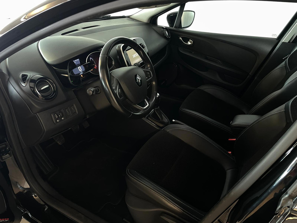 Renault Clio 0.9 TCe Intens. Mooie metallic lak, luxe chroom afwerking en 17 inch lichtmetalen velgen, wat heeft deze Renault Clio een prachtige uitstraling! Het interieur maakt het helemaal af! Een sportief interieur afgewerkt met half leer en witte stiksels. Op het dashboard vind je hoogglans accenten.