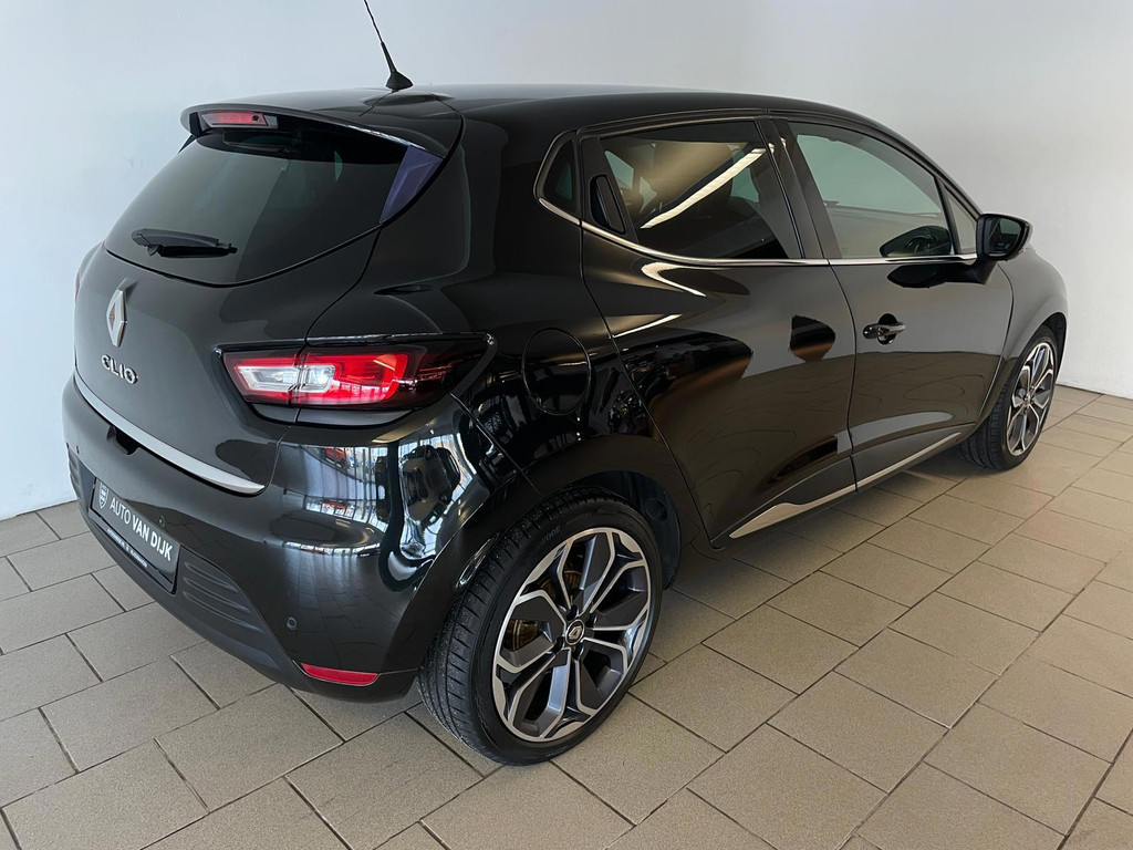 Renault Clio 0.9 TCe Intens. Mooie metallic lak, luxe chroom afwerking en 17 inch lichtmetalen velgen, wat heeft deze Renault Clio een prachtige uitstraling! Het interieur maakt het helemaal af! Een sportief interieur afgewerkt met half leer en witte stiksels. Op het dashboard vind je hoogglans accenten.