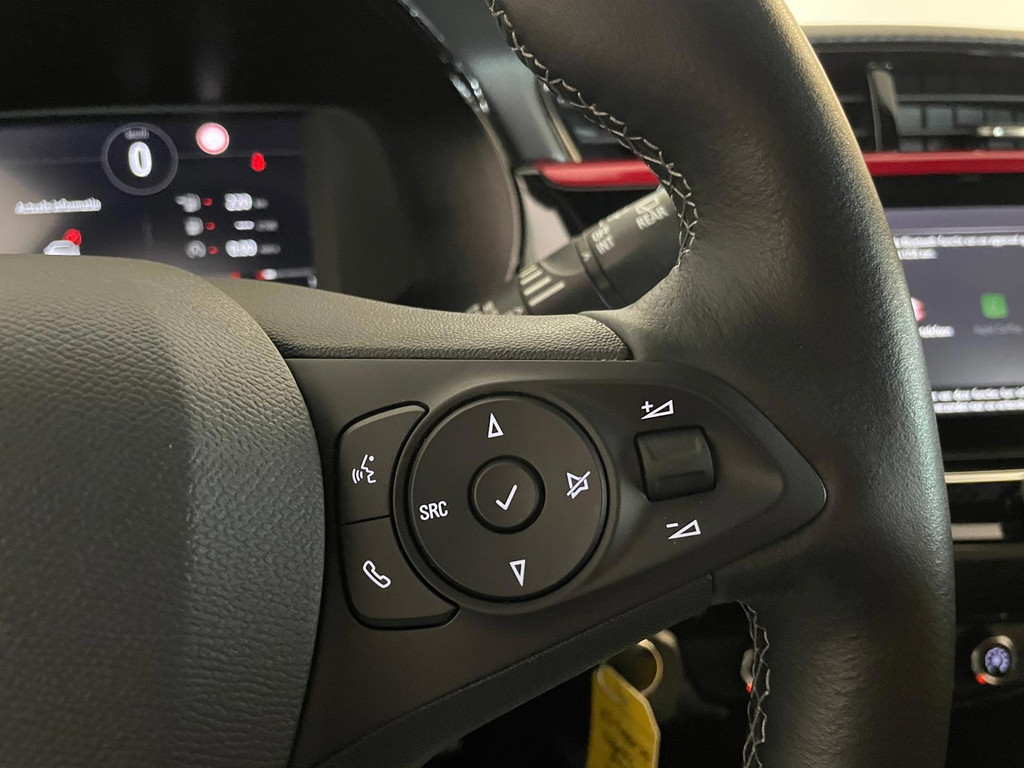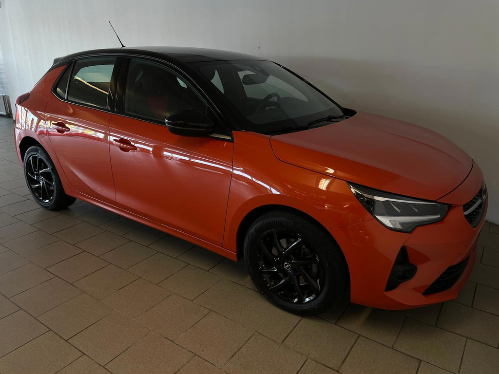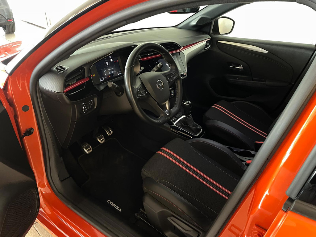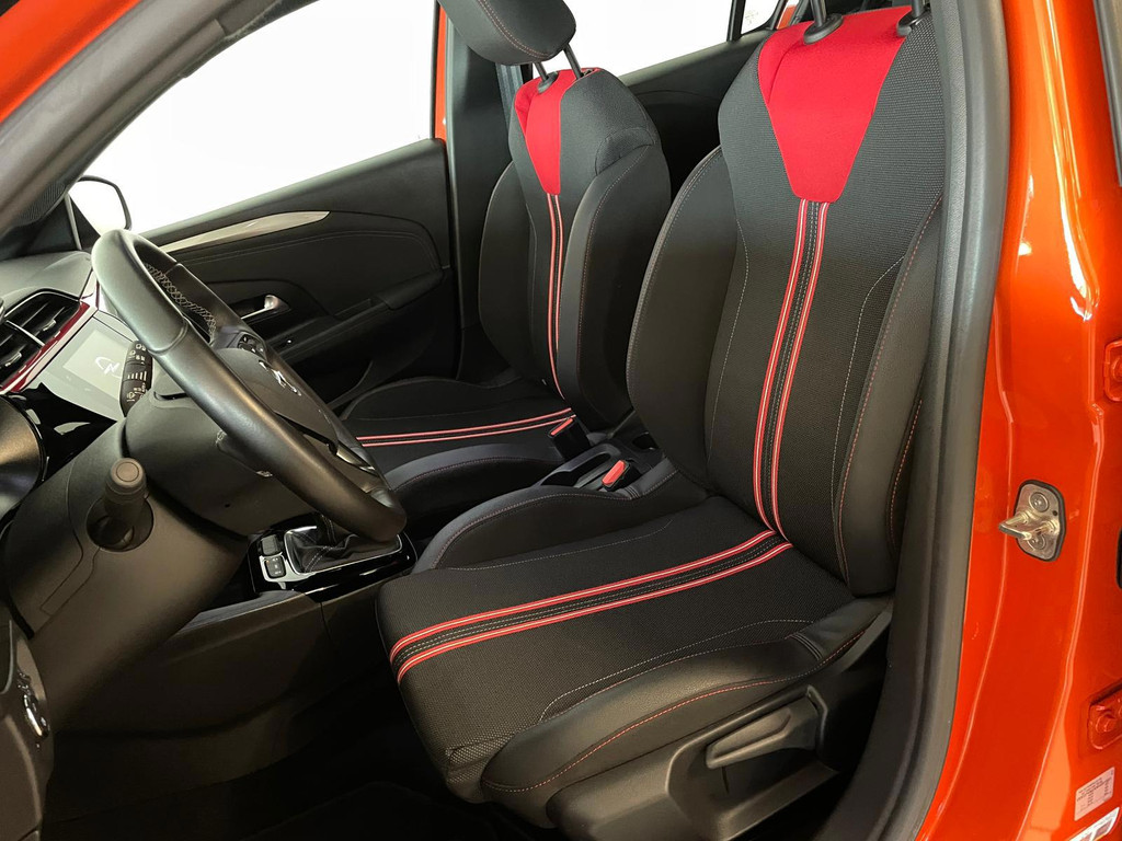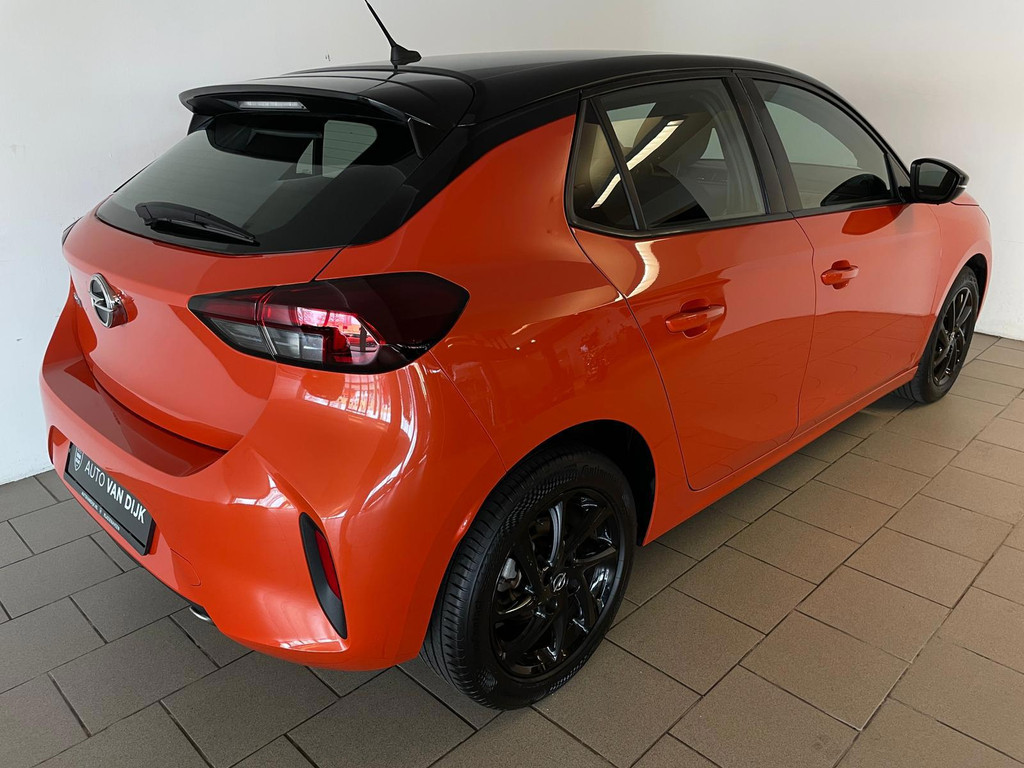 Opel Corsa 1.2 GS Line 100PK. Er is weer zo'n leuk nieuw model Corsa binnen gekomen! Deze keer in een gave metallic oranje lak, de GS Line uitvoering en de 100 pk versie! Deze speciale Corsa heeft echt alles mee! De zwart hoogglans spiegels, sportvelgen, speciale koplampen, privacy glas en de zwart hoogglans spoiler zorgen voor zijn sportieve uiterlijk! En dan het interieur! Wauw! Sportinterieur met rode accenten, lederen stuurwiel, zwarte dakhemel! En dan de opties! Dat zijn er veel! Airco, navigatie via app, cruise-control, parkeersensoren, Apple Carplay, Android Auto, Bluetooth, radiobediening op het stuur zijn een aantal van de vele opties die je kan vinden op deze sportieve Corsa. Onder de motorkap zit een zuinige 1.2 benzine motor, dit is de 100 PK versie. Deze Corsa heeft extra pit en je kan er ook nog eens zuinig mee rijden! Hij is uit 2021! De vorige eigenaar is er altijd erg zuinig op geweest, van binnen en buiten ziet hij er nog als nieuw uit! Nieuwsgierig geworden? Zin in een proefrit? Maak dan snel een afspraak om langs te komen in de showroom voor deze 100pk sterke Opel Corsa 1.2 GS Line!
