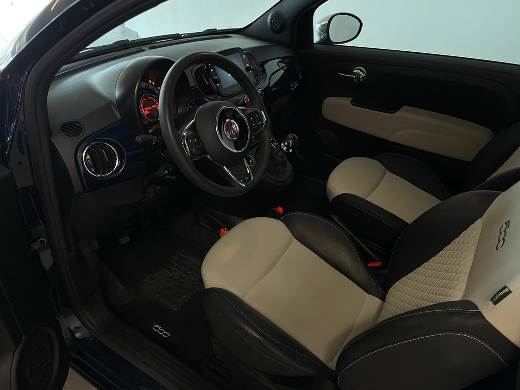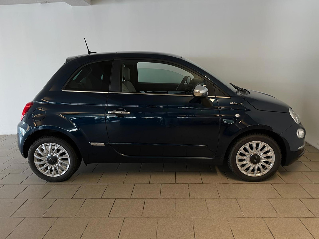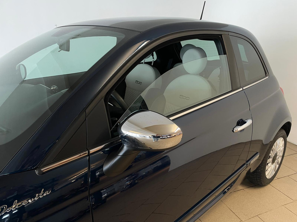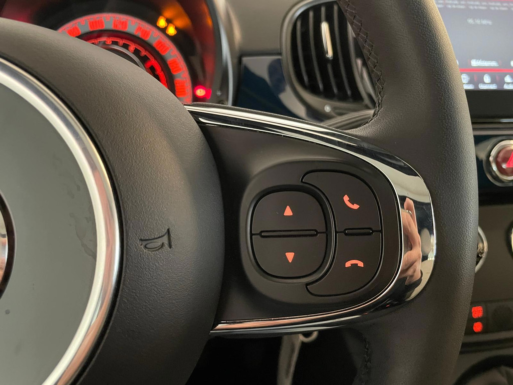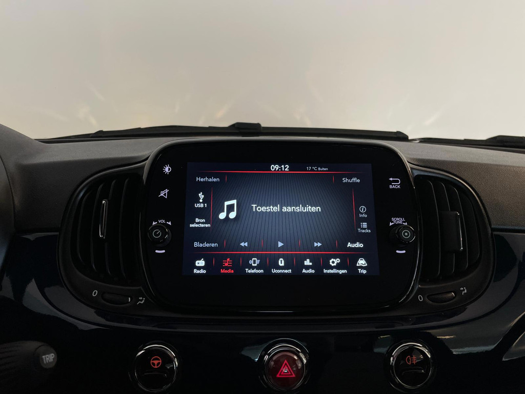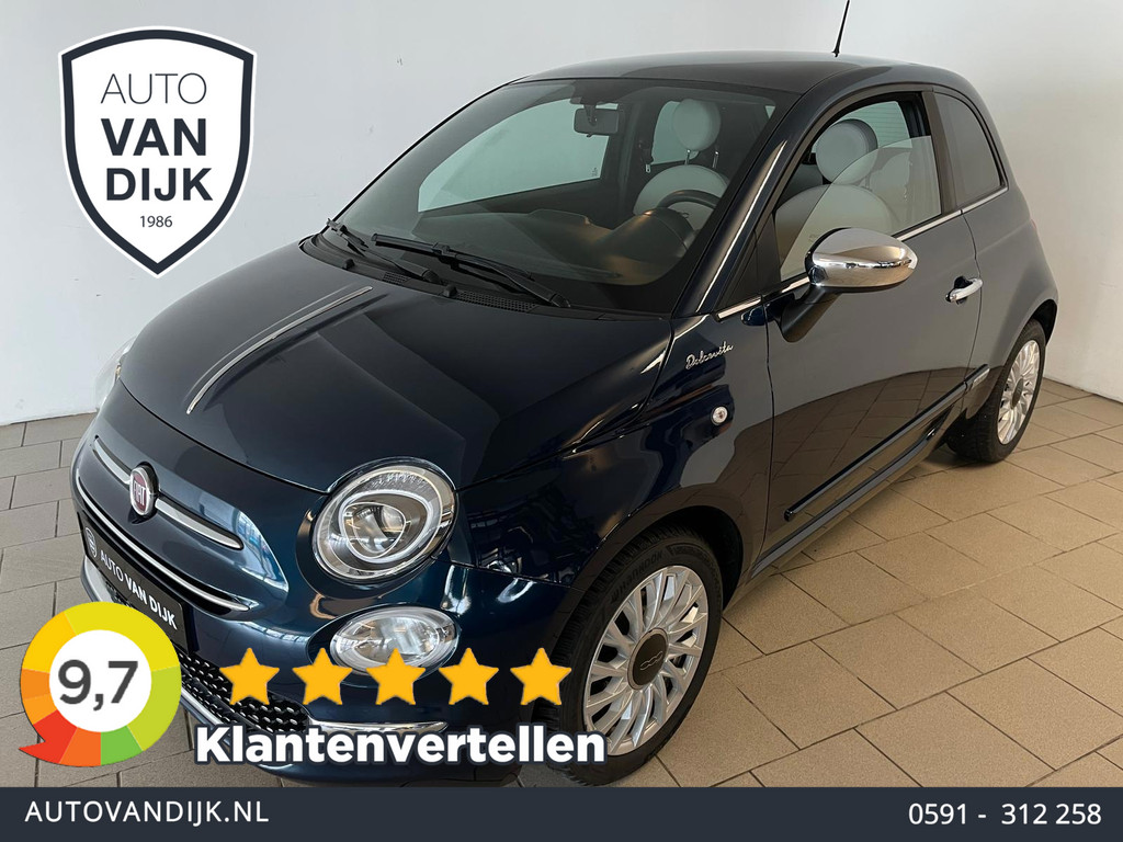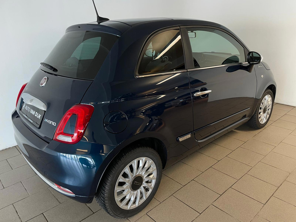 Fiat 500 1.0 Hybrid DolceVita. We hebben weer een leuke Fiat 500 binnen gekregen! De kleuren combinatie en de vele opties maken deze kleine Italiaan ook erg aantrekkelijk. Hij is donkerblauw met chroom accenten, spaakvelgen, een dashboard dat ook donkerblauw hoogglans is en dan een speciaal leder interieur en een luxe stuurwiel.... wat een prachtige uitstraling heeft hij zo! Airco clima, panorama-dak, radiobediening op het stuur, U-Connect, Bluetooth carkit en media-speler en een diamondgrill zijn een aantal van de vele opties. Deze heeft een heerlijke 1.0 Hybrid motor onder de motorkap. Dat geeft deze compacte Italiaan een pittig rijkarakter en toch is hij door het hybride systeem heel erg zuinig! De kilometerstand is ook erg interessant, er staat nog maar 50.000 kilometer op de teller. De vorige eigenaresse is er altijd erg zuinig op geweest, van binnen en buiten ziet de Fiat 500 er nog als nieuw uit! Nieuwsgierig geworden? Zin in een proefrit? Maak snel een afspraak en kom langs in de showroom voor deze speciale Fiat 500!