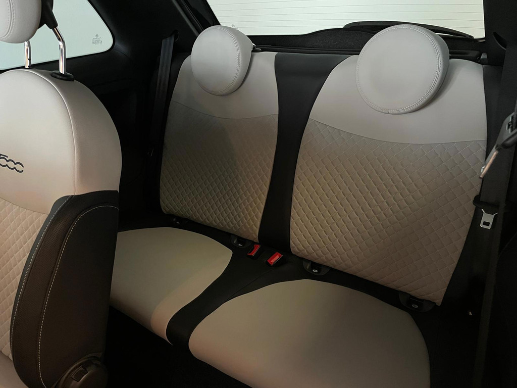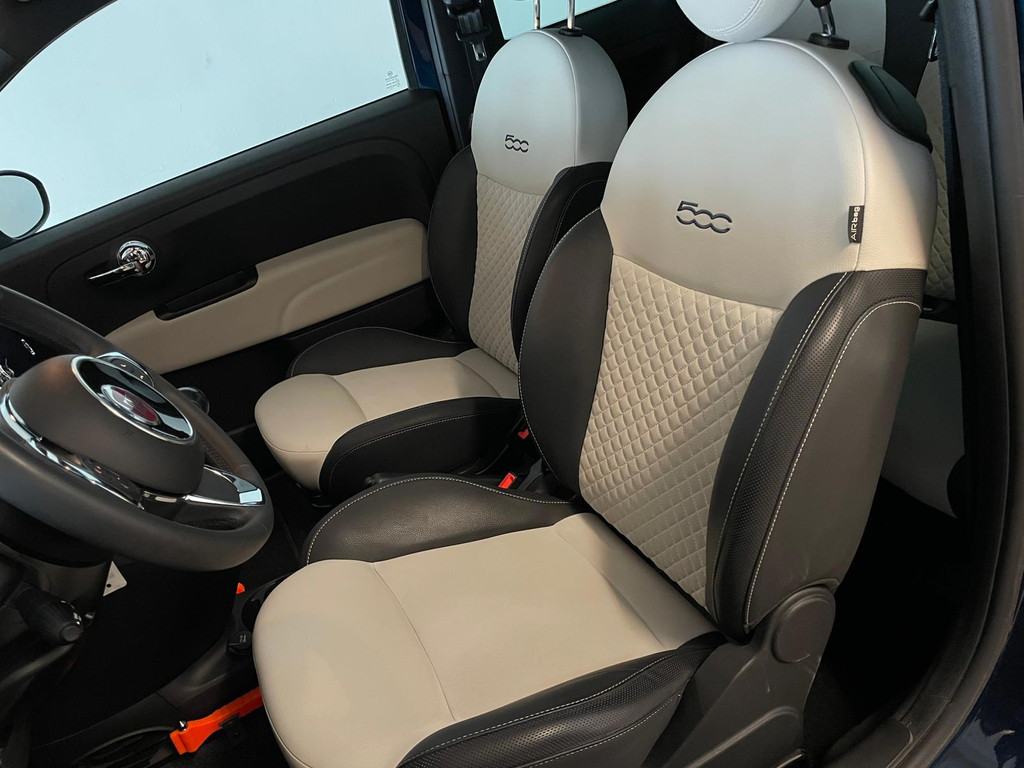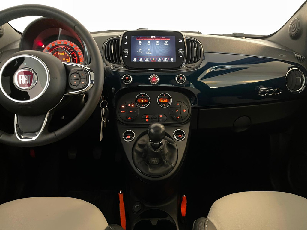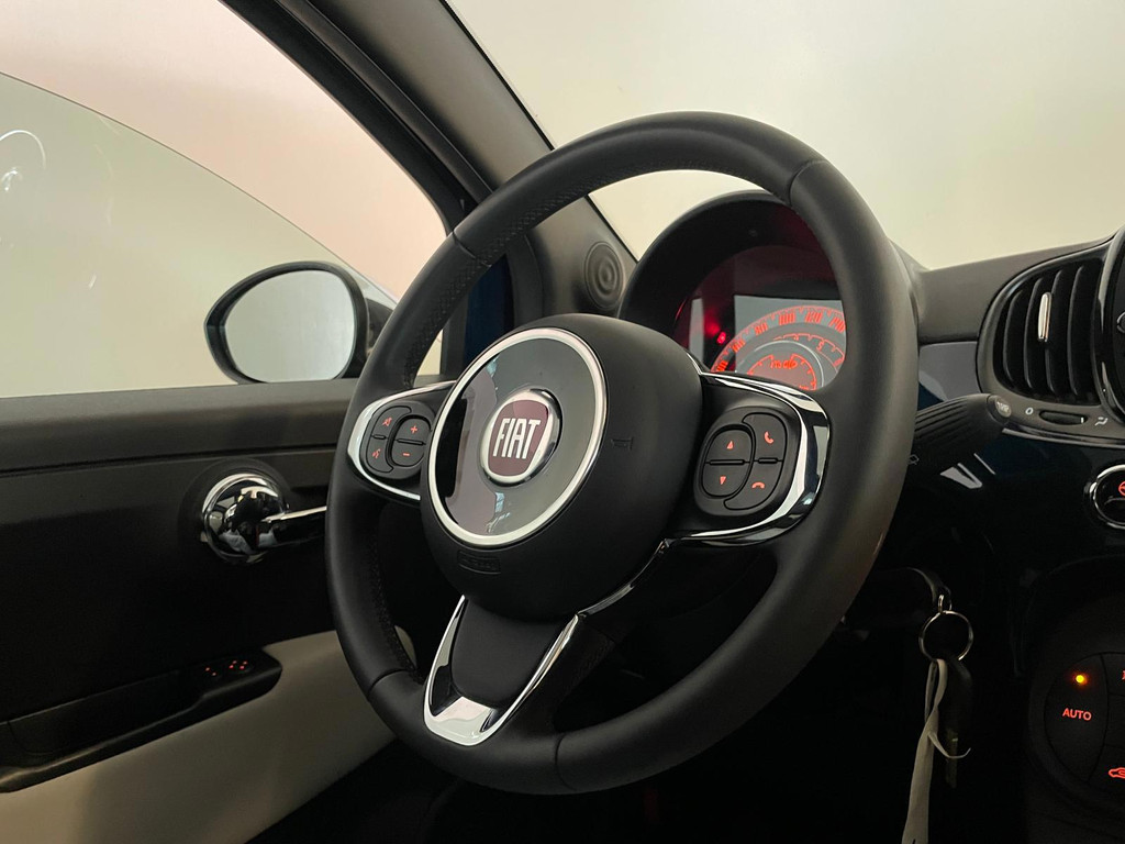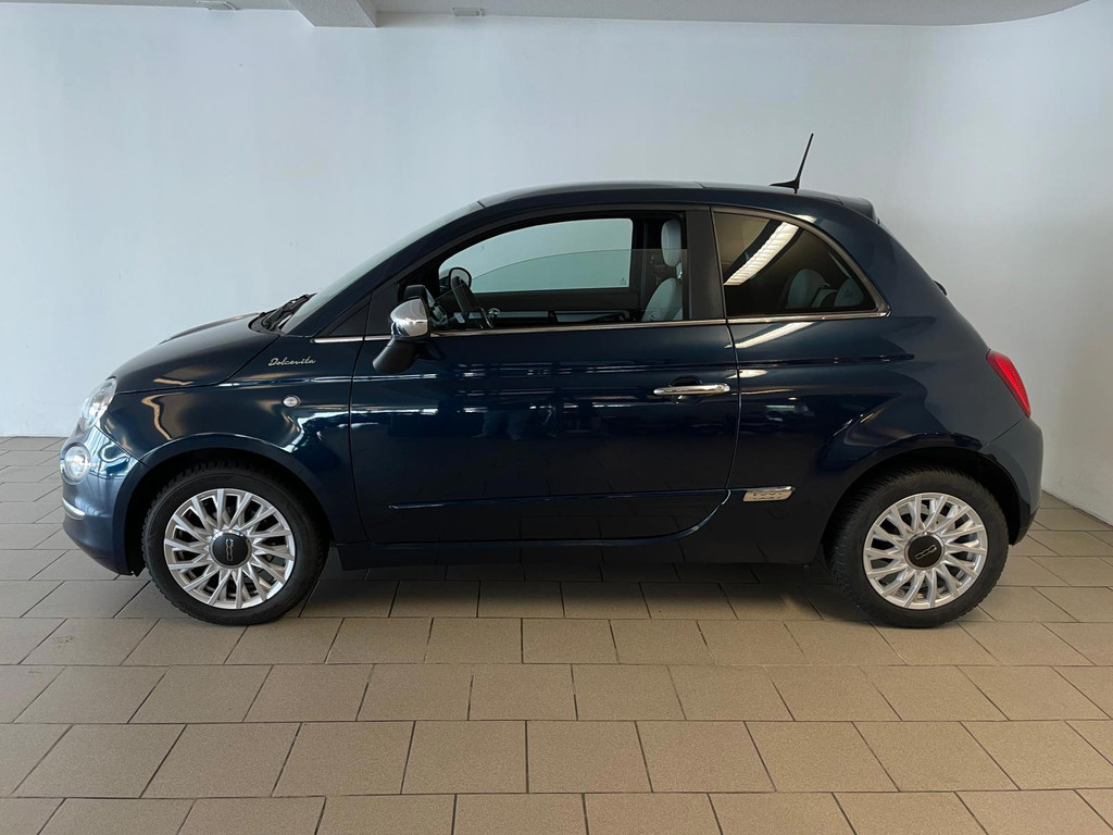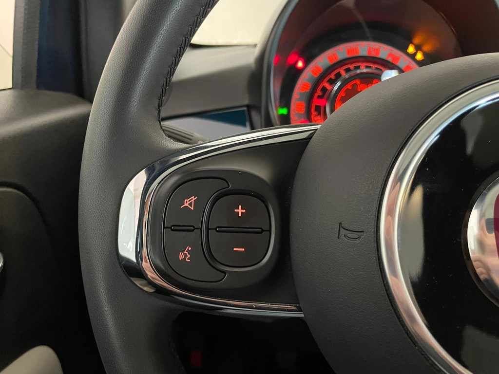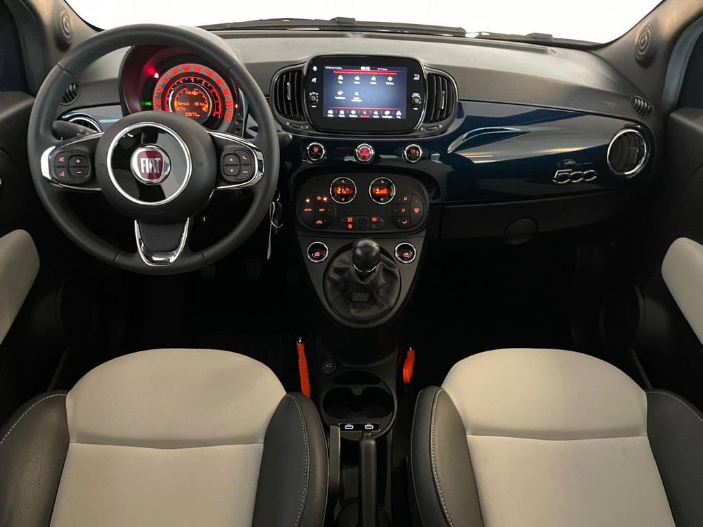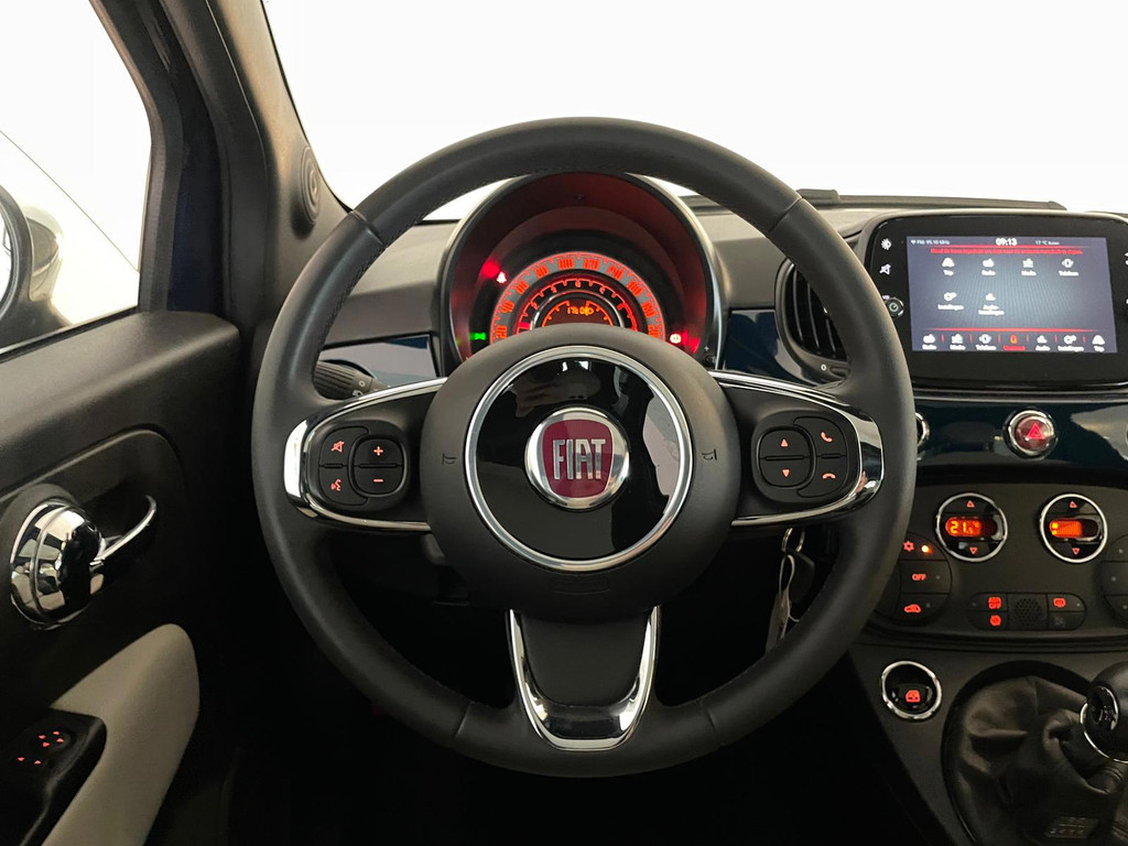 Fiat 500 1.0 Hybrid DolceVita. We hebben weer een leuke Fiat 500 binnen gekregen! De kleuren combinatie en de vele opties maken deze kleine Italiaan ook erg aantrekkelijk. Hij is donkerblauw met chroom accenten, spaakvelgen, een dashboard dat ook donkerblauw hoogglans is en dan een speciaal leder interieur en een luxe stuurwiel.... wat een prachtige uitstraling heeft hij zo! Airco clima, panorama-dak, radiobediening op het stuur, U-Connect, Bluetooth carkit en media-speler en een diamondgrill zijn een aantal van de vele opties. Deze heeft een heerlijke 1.0 Hybrid motor onder de motorkap. Dat geeft deze compacte Italiaan een pittig rijkarakter en toch is hij door het hybride systeem heel erg zuinig! De kilometerstand is ook erg interessant, er staat nog maar 50.000 kilometer op de teller. De vorige eigenaresse is er altijd erg zuinig op geweest, van binnen en buiten ziet de Fiat 500 er nog als nieuw uit! Nieuwsgierig geworden? Zin in een proefrit? Maak snel een afspraak en kom langs in de showroom voor deze speciale Fiat 500!