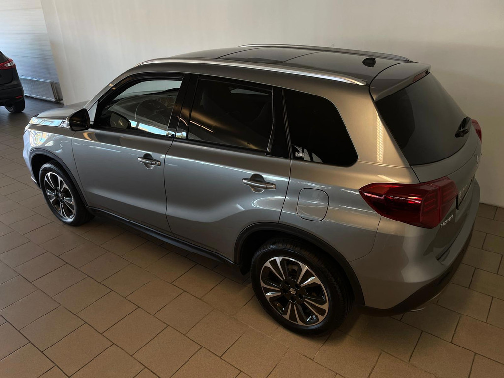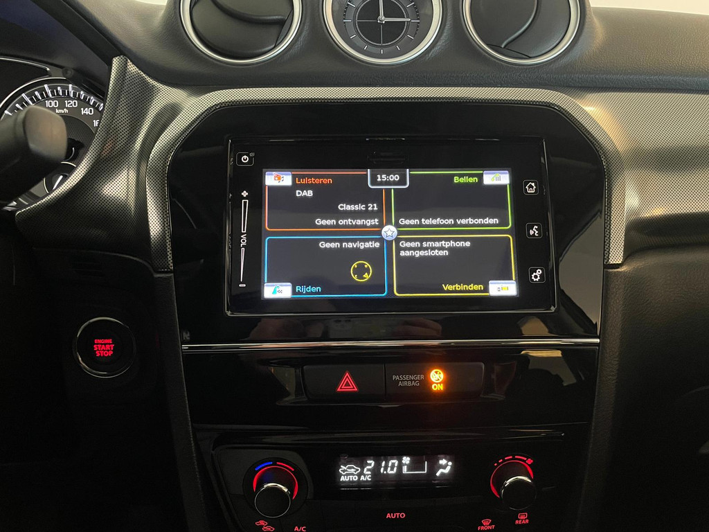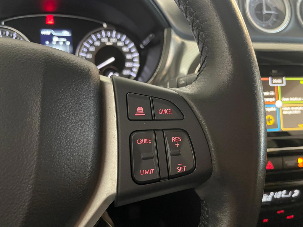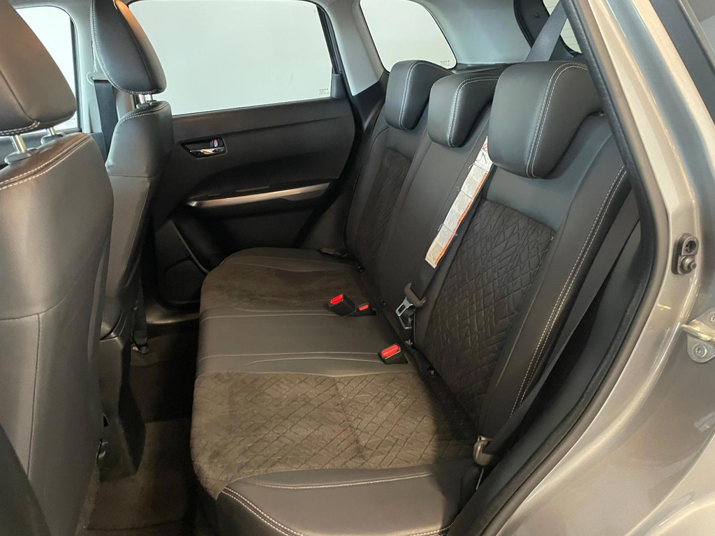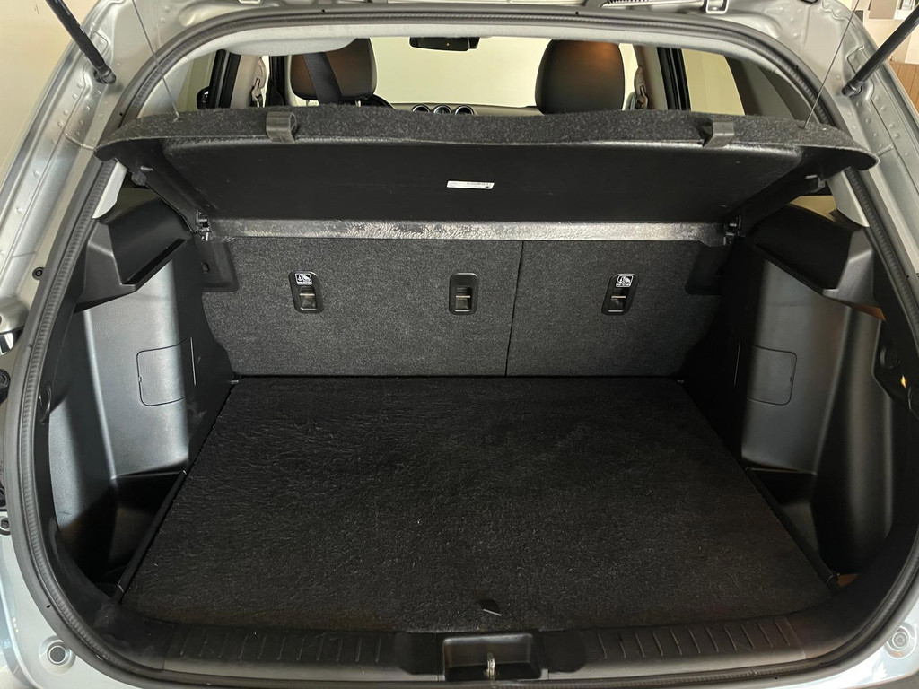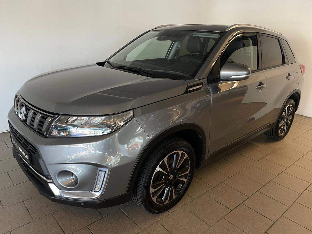 Suzuki Vitara 1.4 Boosterjet Select. We hebben weer zo'n fijne hoogzitter binnen gekregen. Ben jij opzoek naar een hoogzitter maar wil jij niet de hoge vast lasten van een hoogzitter? Zoek jij een auto met veel leuke opties? Zoek dan niet verder! Je hebt hem nu gevonden! Airco, Bluetooth, multifunctioneel stuur, stoelverwarming, cruise control, lichtmetalen velgen en zo gaat het nog wel even door met het aantal opties die je zult vinden op deze Vitara. De grijze lak in combinatie met de chroom accenten, het panorama dak, lichtmetalen velgen en privacy glas geven hem een luxe uitstraling. De dakreling en de moderne belijning van de carrosserie maken het helemaal af! Onder de motorkap vind je de turbo benzine motor, deze maakt het rijden in deze Suzuki Vitara tot een waar genot! Ruim voldoende pit en je kan er ook nog eens erg zuinig mee rijden! De vorige eigenaren zijn er altijd erg zuinig op geweest. En dat is te zien. Van binnen en buiten ziet hij er nog als nieuw uit! Nieuwsgierig geworden naar deze Suzuki Vitara? Wacht dan niet te lang en kom langs in onze showroom voor deze Suzuki Vitara!