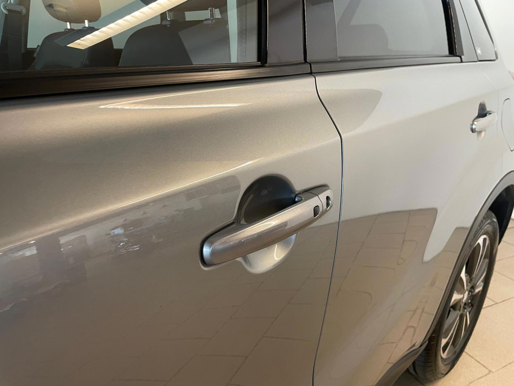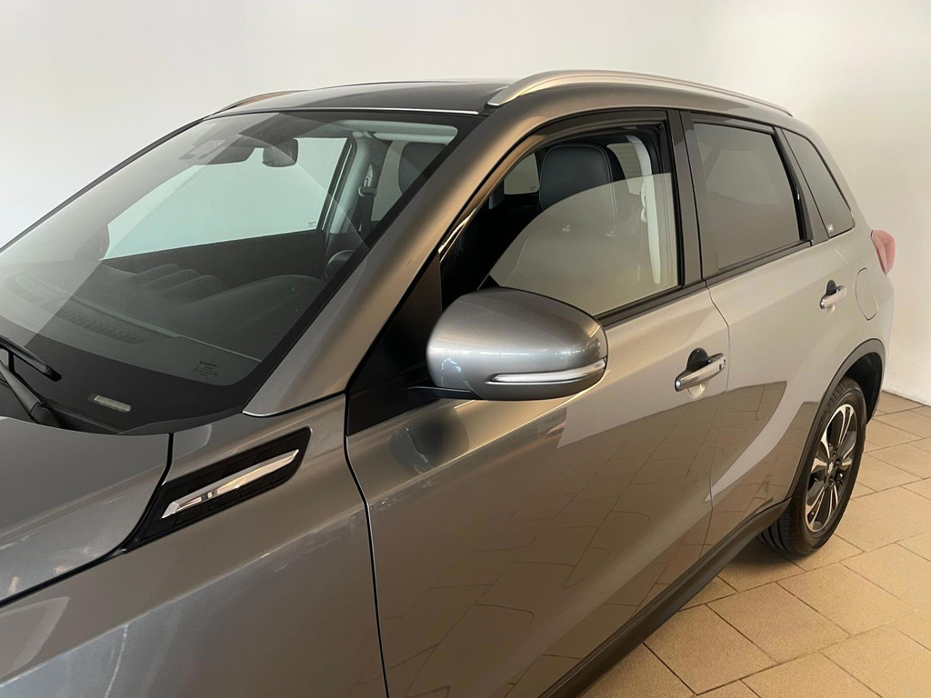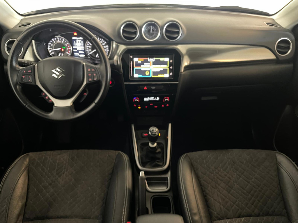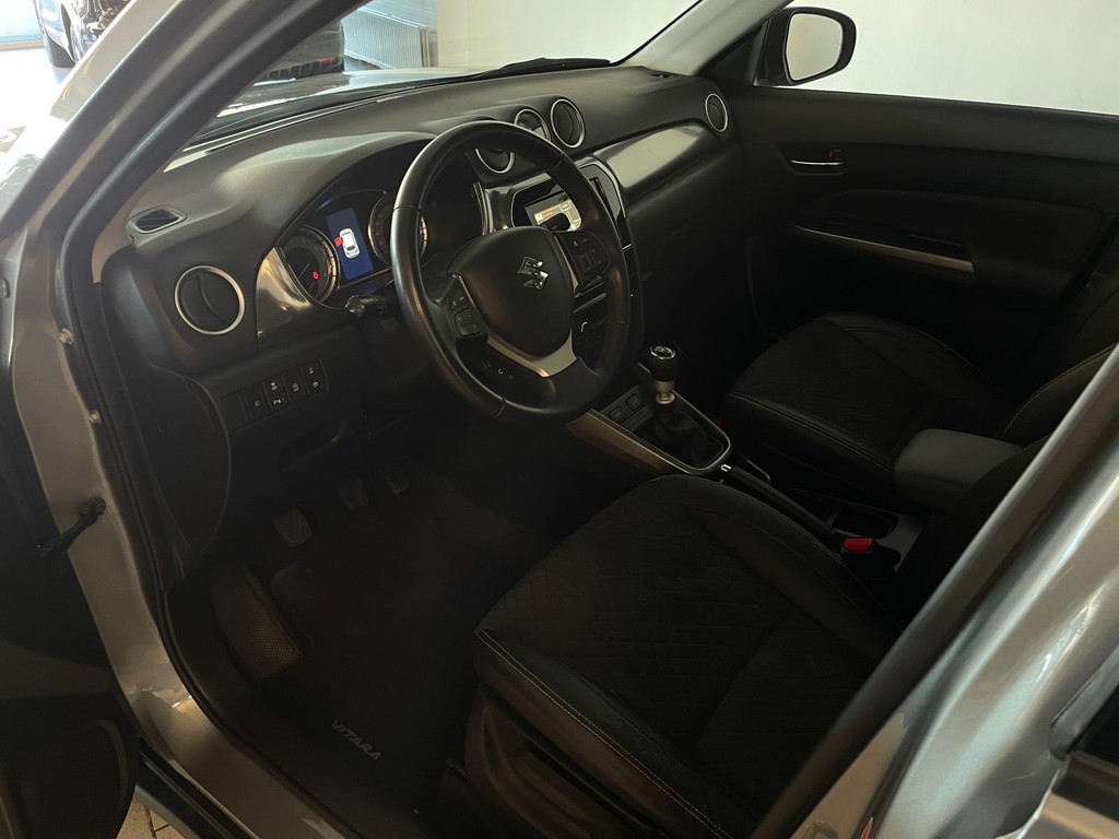Suzuki Vitara 1.4 Boosterjet Select. We hebben weer zo'n fijne hoogzitter binnen gekregen. Ben jij opzoek naar een hoogzitter maar wil jij niet de hoge vast lasten van een hoogzitter? Zoek jij een auto met veel leuke opties? Zoek dan niet verder! Je hebt hem nu gevonden! Airco, Bluetooth, multifunctioneel stuur, stoelverwarming, cruise control, lichtmetalen velgen en zo gaat het nog wel even door met het aantal opties die je zult vinden op deze Vitara. De grijze lak in combinatie met de chroom accenten, het panorama dak, lichtmetalen velgen en privacy glas geven hem een luxe uitstraling. De dakreling en de moderne belijning van de carrosserie maken het helemaal af! Onder de motorkap vind je de turbo benzine motor, deze maakt het rijden in deze Suzuki Vitara tot een waar genot! Ruim voldoende pit en je kan er ook nog eens erg zuinig mee rijden! De vorige eigenaren zijn er altijd erg zuinig op geweest. En dat is te zien. Van binnen en buiten ziet hij er nog als nieuw uit! Nieuwsgierig geworden naar deze Suzuki Vitara? Wacht dan niet te lang en kom langs in onze showroom voor deze Suzuki Vitara!